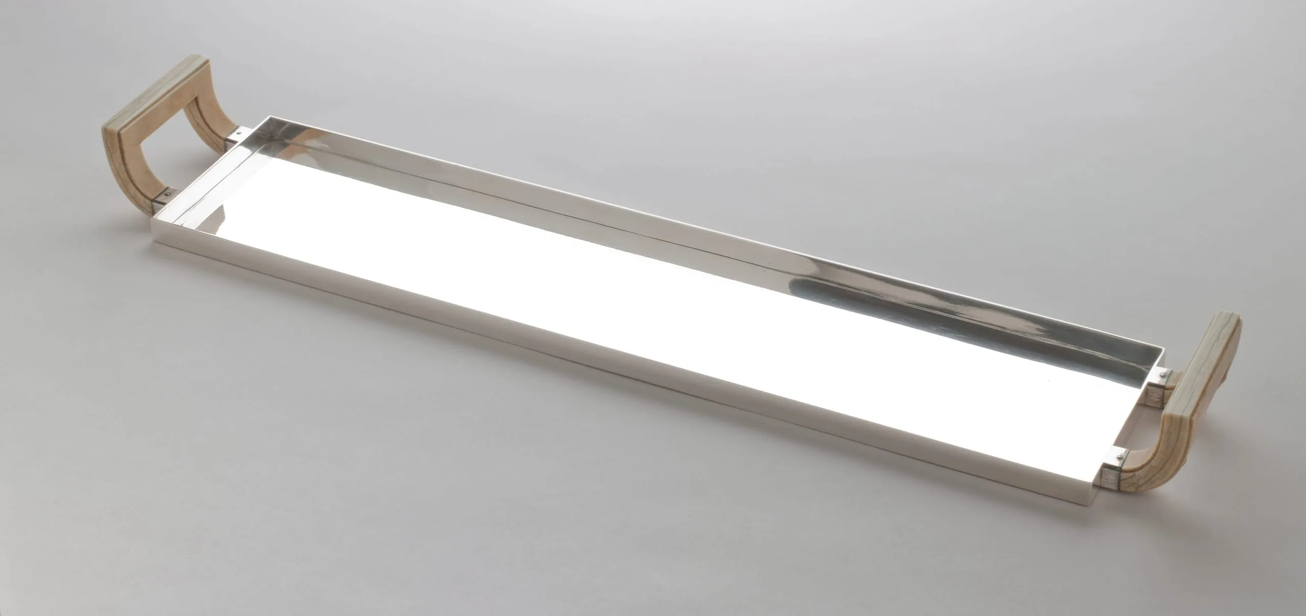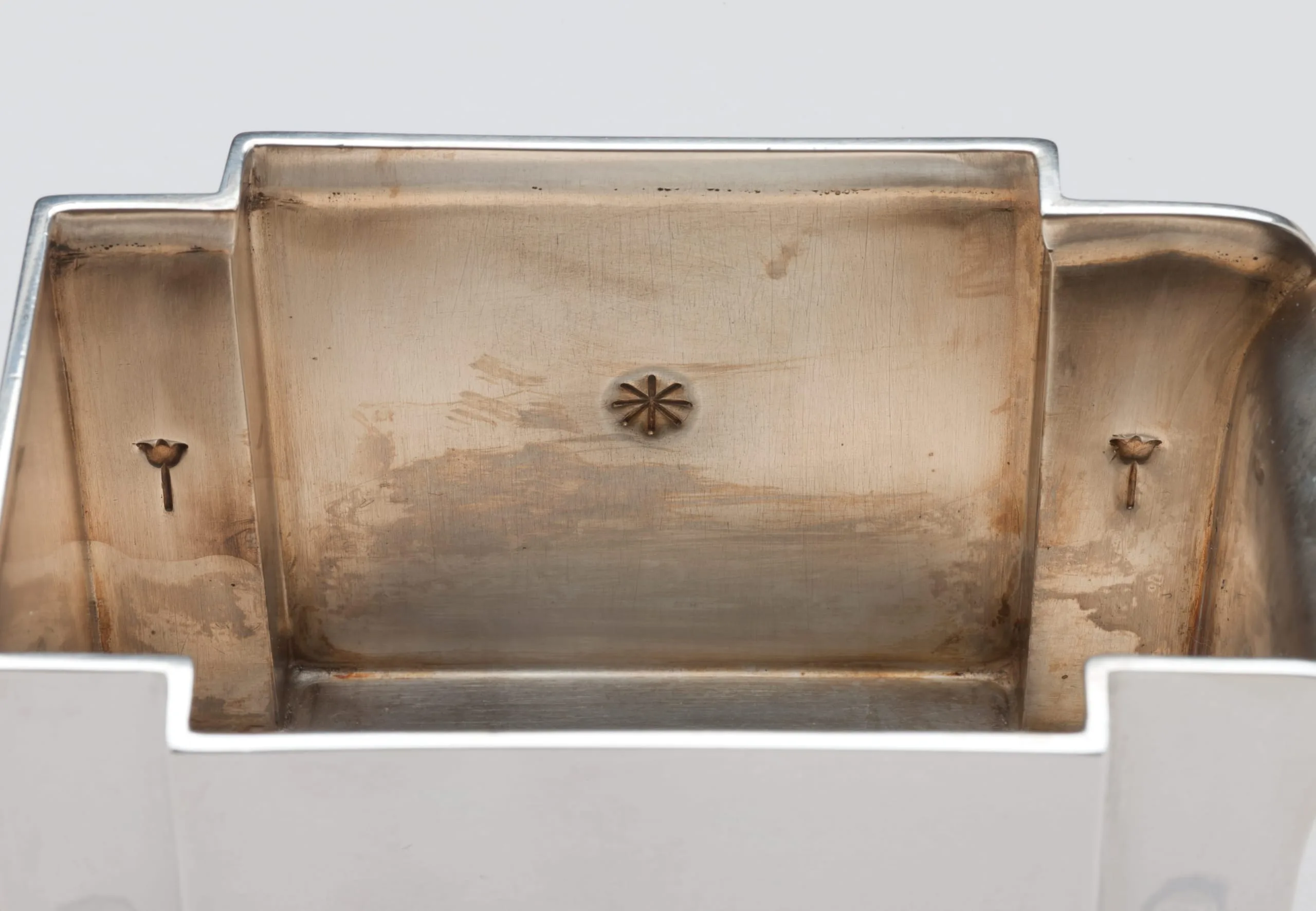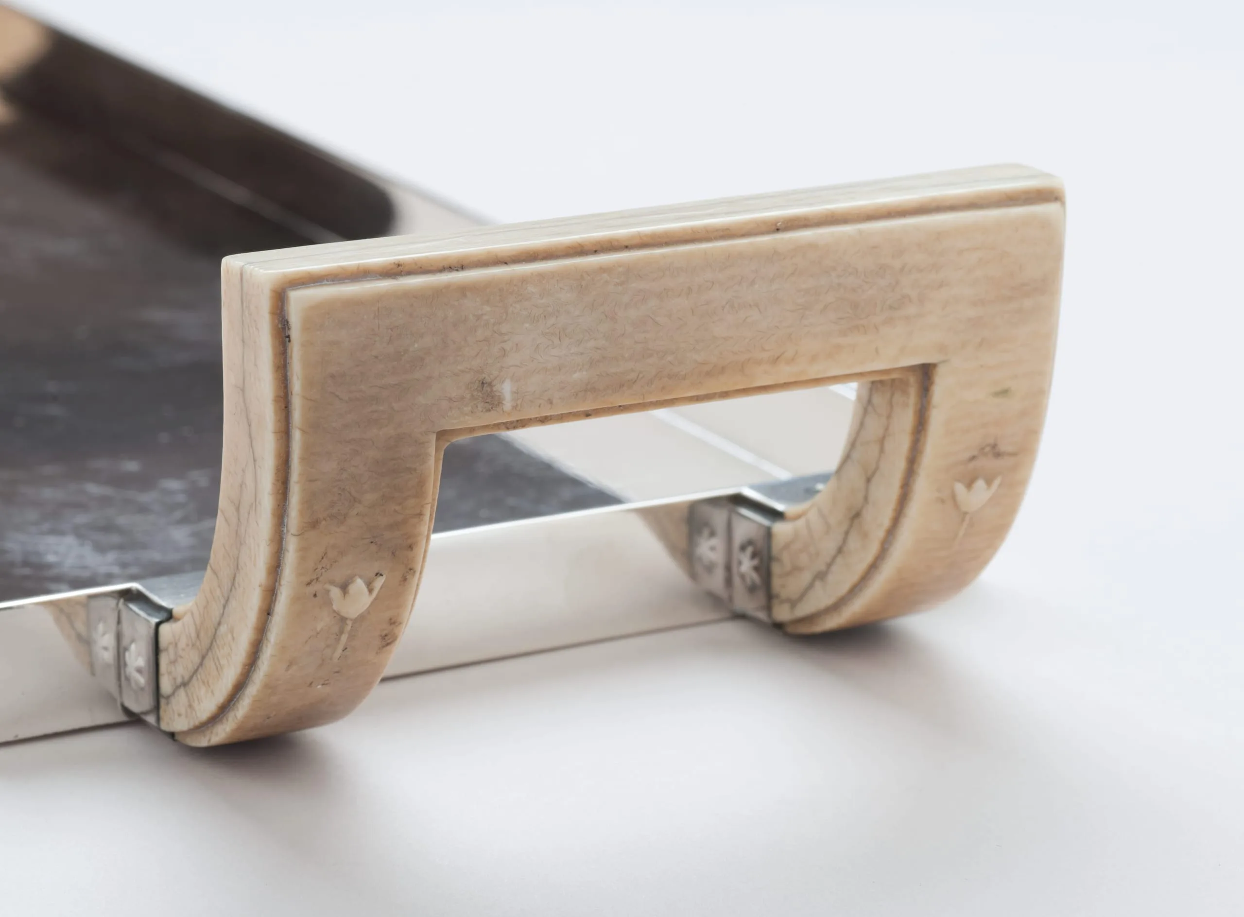 This four-piece tea service—one of only three in existence—is a masterpiece of Hoffmann's mature style. With its sleek surfaces, subtle repoussé ornament, and delicately carved tulips on ivory handles, the service combines luxury with modernity, a hallmark of Hoffmann's work for decades. In 1903, he established the cooperative workshop in Vienna, the Wiener Werkstätte. He and Koloman Moser (who left the firm in 1907) created departments for metalwork, bookbinding, leatherwork, cabinetmaking, glass, and ceramics, as well as an architectural office. A few years later, departments for printing, fashion, and textiles were added. Ambitiously, they aimed to cover all the crafts necessary to create a Gesamtkunstwerk—a total work of art that integrated every aspect of the design. In June of 1922, Hoffmann's friend, the émigré designer Joseph Urban, opened a branch of the company on Fifth Avenue in New York, where the silver tea service was sold. Trained as an architect, Urban immigrated to the United States in 1912, where he became the chief set designer for the Metropolitan Opera and for the Ziegfeld Follies in New York, and continued practicing as an architect. Urban had gone back to his native Vienna after World War I and was deeply affected by the serious depression that came after Austria's defeat in the war. When he returned to the U.S., he launched the "Artists Fund" to send aid to destitute artists. As another way to help his practically starving countrymen, he raised the money to open a salesroom for the Wiener Werkstätte in New York. This silver tea service of consummate craftsmanship was illustrated in the company brochure and priced at $650, a staggering figure for the time. We can date the set very precisely, since the Wiener Werkstätte kept detailed records, and the company archives are at the National Museum of Applied Art (the MAK) in Vienna. According to the records, the head of production, Philipp Häusler, signed off on the drawings for the tea set in March of 1922, authorizing it to be made. Three sets were produced, and the work was finished in March, 1923. (Another example is at the Richmond Museum of Art; the location of the third is unknown.) The Wiener Werkstätte of America closed in December 1923 after only eighteen months, however, as only a small minority of adventurous New Yorkers were patrons of proto–art deco. (The style was popularized at the Paris Exposition of 1925.) Hoffmann himself considered this service of such importance that he included it in the sumptuous catalogue celebrating the company's twenty-fifth anniversary, The Wiener Werkstätte 1903-1928: Modern Decorative Art and its Path. The teaset was purchased from Joseph Urban by Frances Marion, a renowned screenwriter in Los Angeles, the first woman to win an Academy Award for the best original screenplay. Urban and Frances Marion knew each other well from their close association with William Randolph Hearst. Urban was Hearst's favorite art director and personal friend—during the 1920s, he designed dozens of films for Hearst's company. And since Frances Marion was one of Hearst's favorite writers, she and Joseph Urban worked together on several Hollywood films. In the 1921 feature Enchantment, Urban placed the first modern interior design in an American movie—a Wiener Werkstätte dining room.
