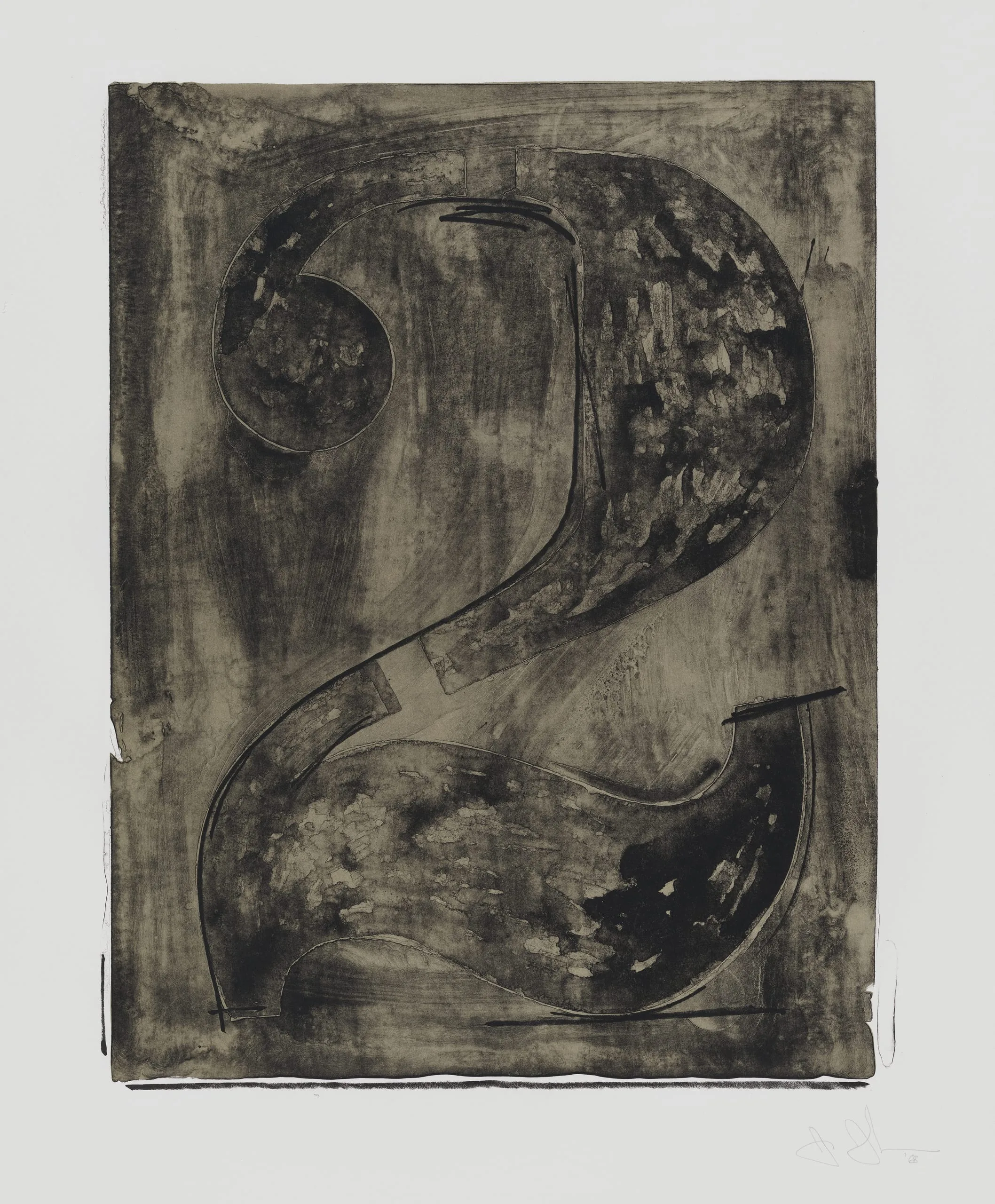 - Lithograph, printed from one stone in black and one aluminum plate in warm gray