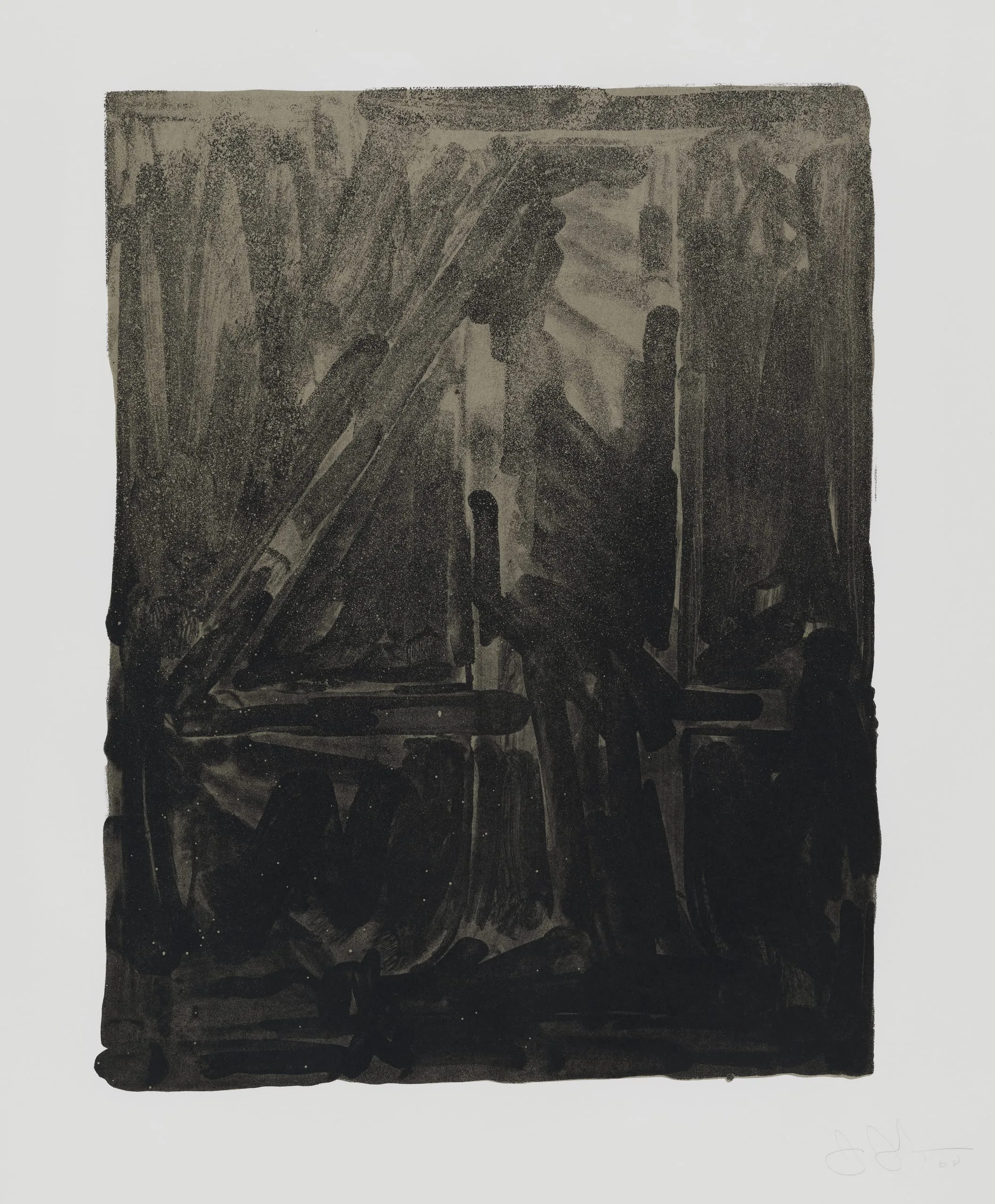 - Lithograph, printed from one stone in black and one aluminum plate in warm gray