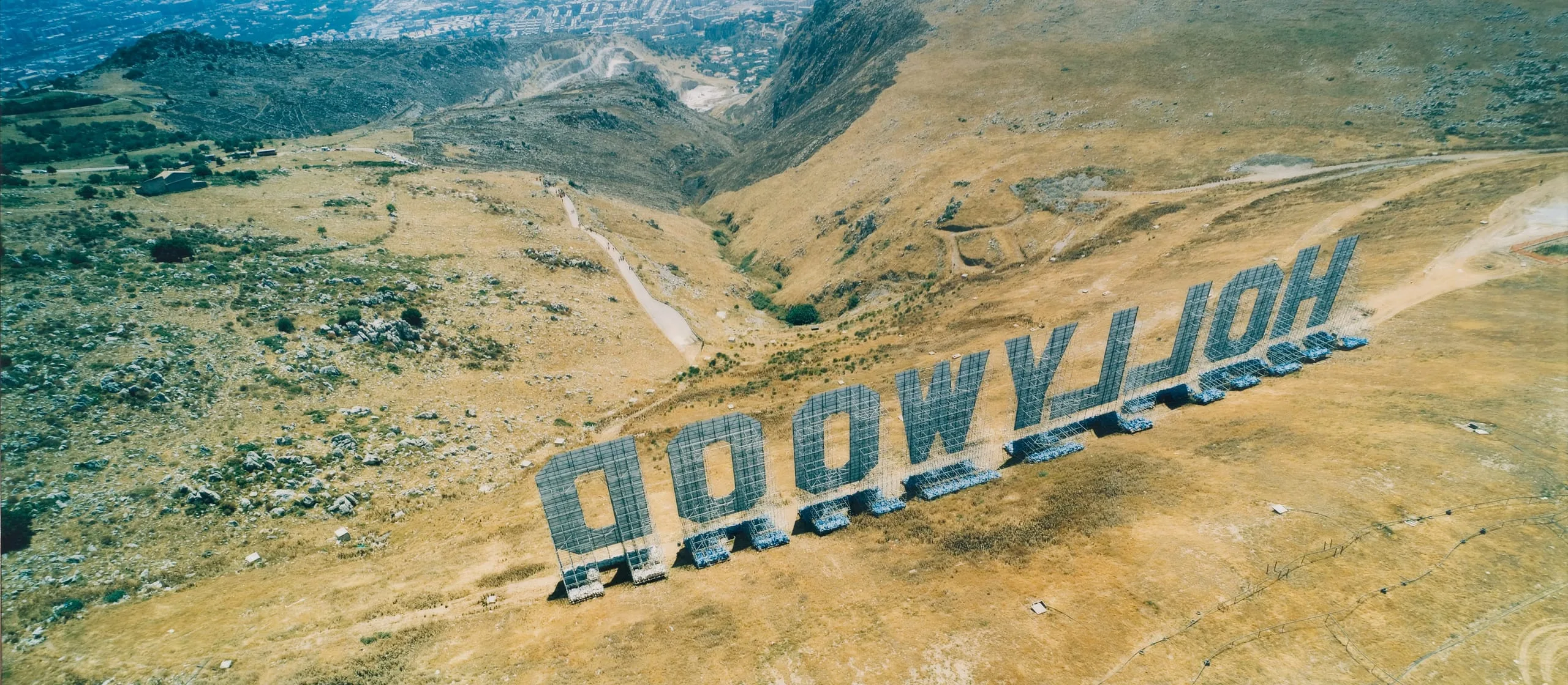 Italian artist Maurizio Cattelan combines elements of surrealism, performance, and satire in his oeuvre, and he is often referred to as a prankster or provocateur. For the 40th Venice Biennale in 2001, Cattelan erected a larger-than-life replica of the iconic Hollywood sign over the largest city dump in Palermo, Sicily; it was the first time in its history that the Biennale allowed a work to be presented outside Venice.Hollywood engaged the entire city by casting ordinary citizens in the role of film extras. Cattelan has said of this piece: "I tried to overlap two opposite realities, Sicily and Hollywood: after all, images are just projections of desire, and I wanted to shade their boundaries. It might be a parody, but it's also a tribute.... There is something hypnotic in Hollywood: it's a sign that immediately speaks about obsessions, failures, and ambitions." This photograph of Cattelan's installation joins another work by the artist, Untitled (2001), a semi-operational miniature replica of an elevator acquired by LACMA in 2003.