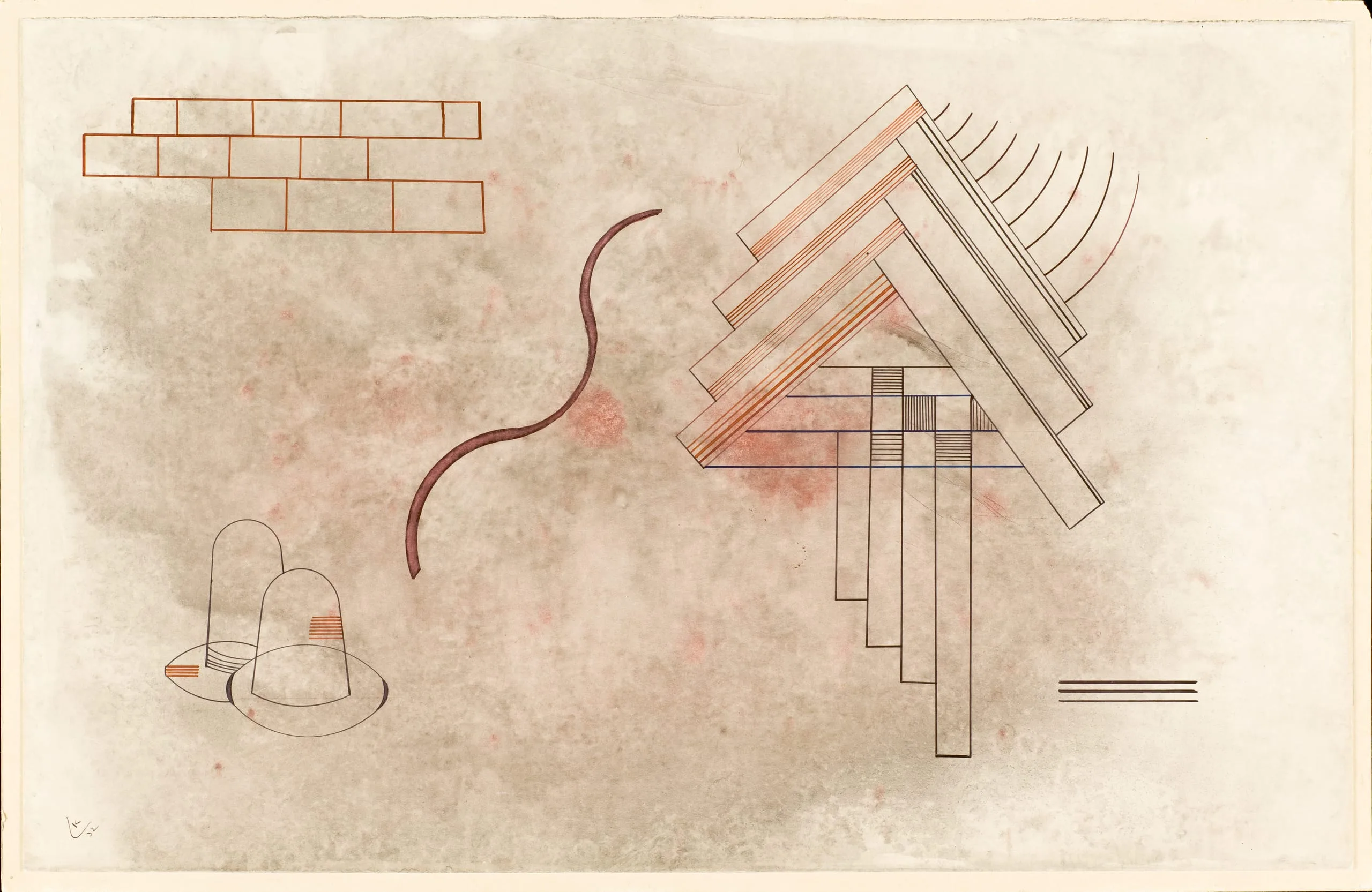 The artist (1866-1944). Galka Scheyer, Los Angeles, 1933–1945; Nina Kandinsky, Paris, late 1940s; [Galerie Maeght, Paris, Nov. 1974]; Fondation Maeght, Paris; [Sold at Sotheby's Parke-Bernet, London, 27 June 1984, lot 357]; [Saidenberg Gallery, New York]; sold in 1984 to Janice and Henri Lazarof, Los Angeles; given in 2005 to LACMA.