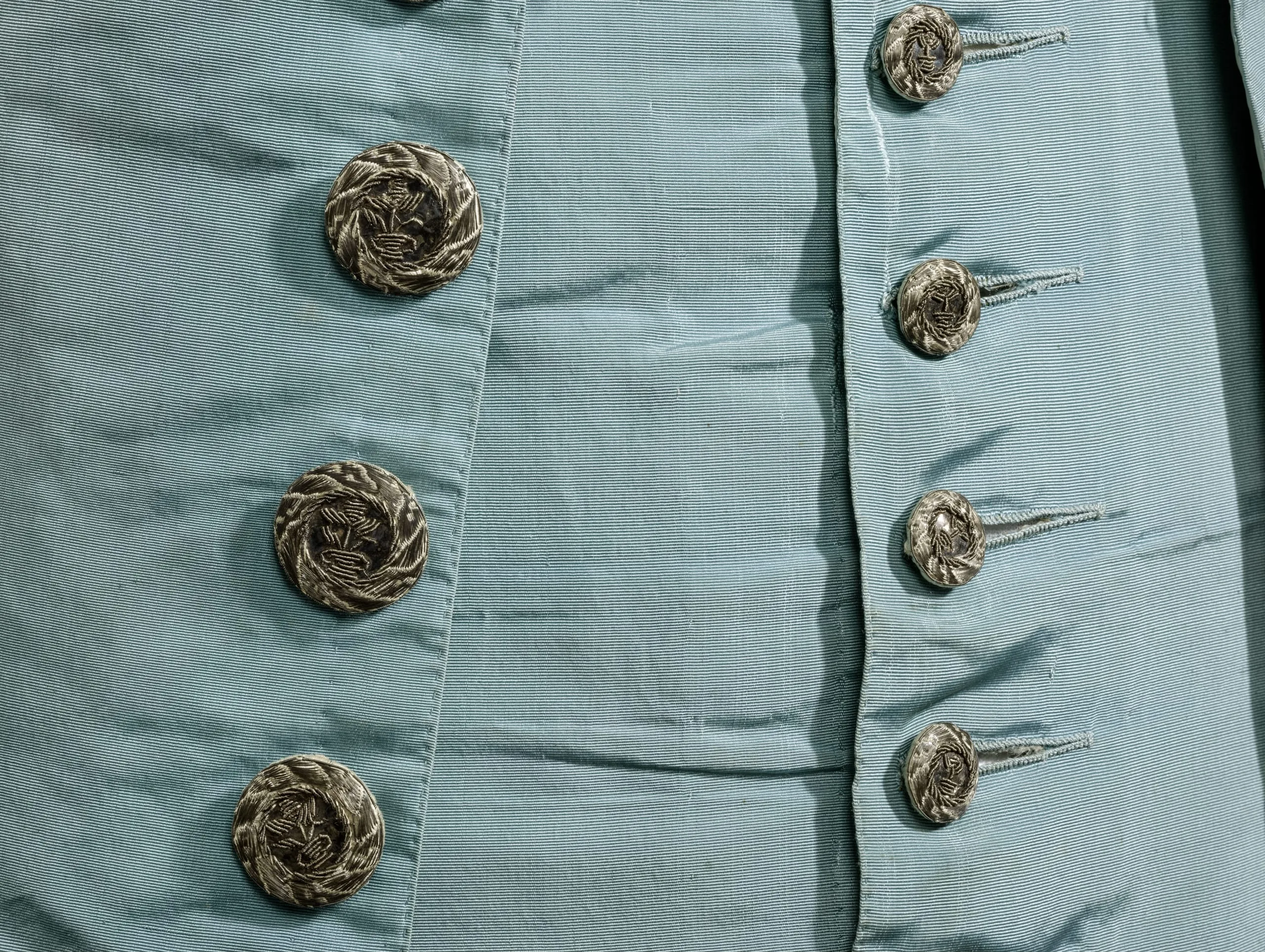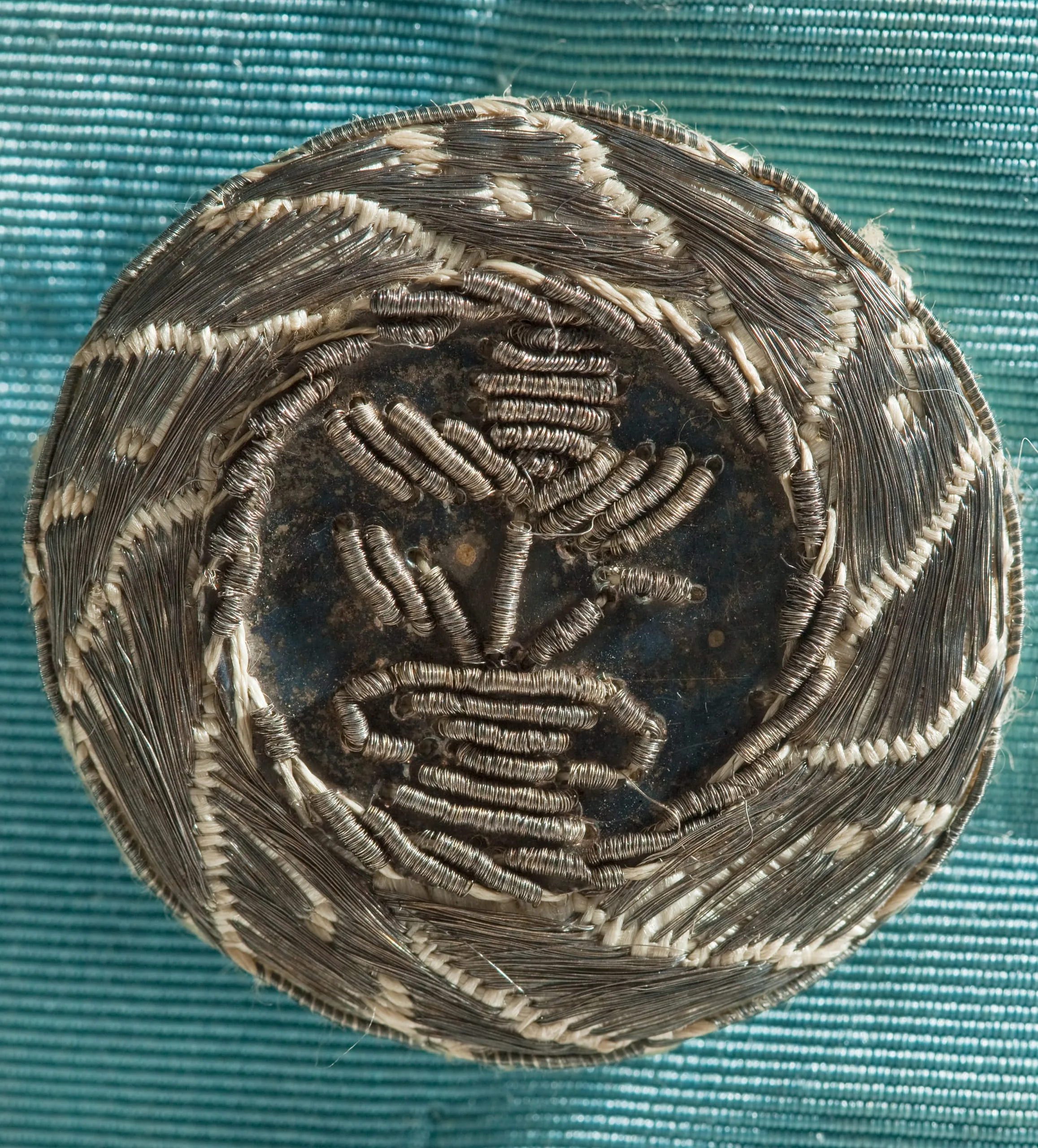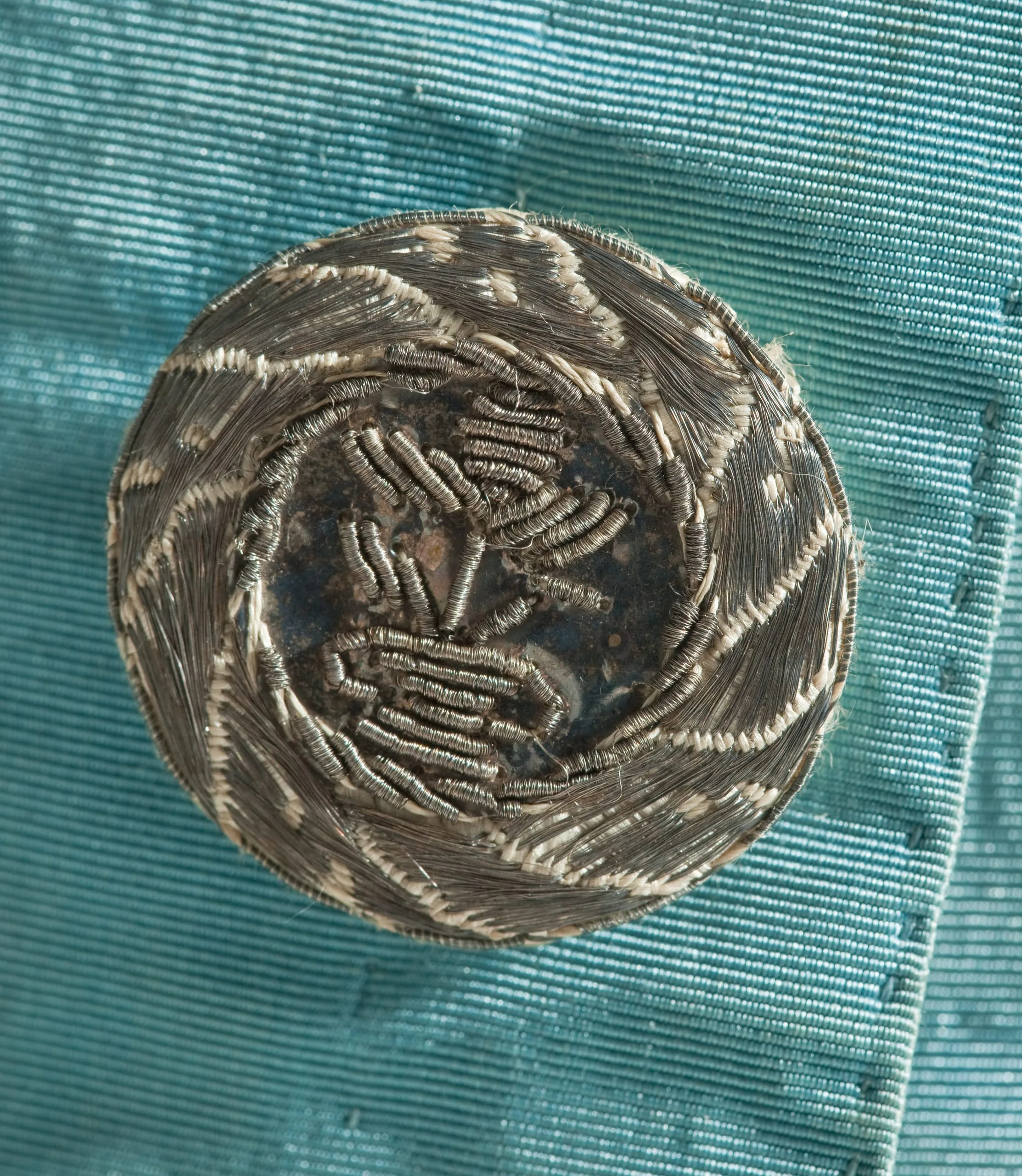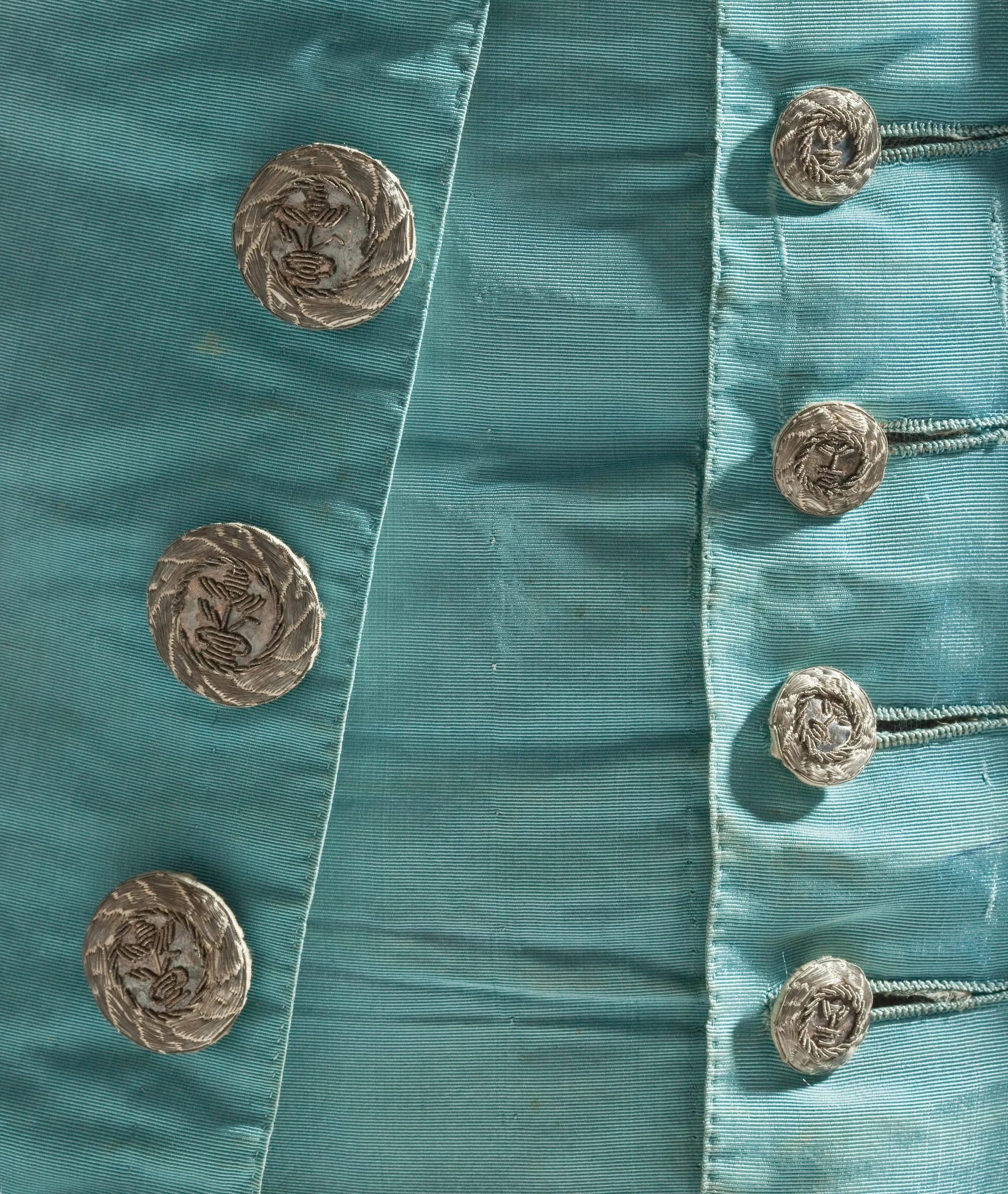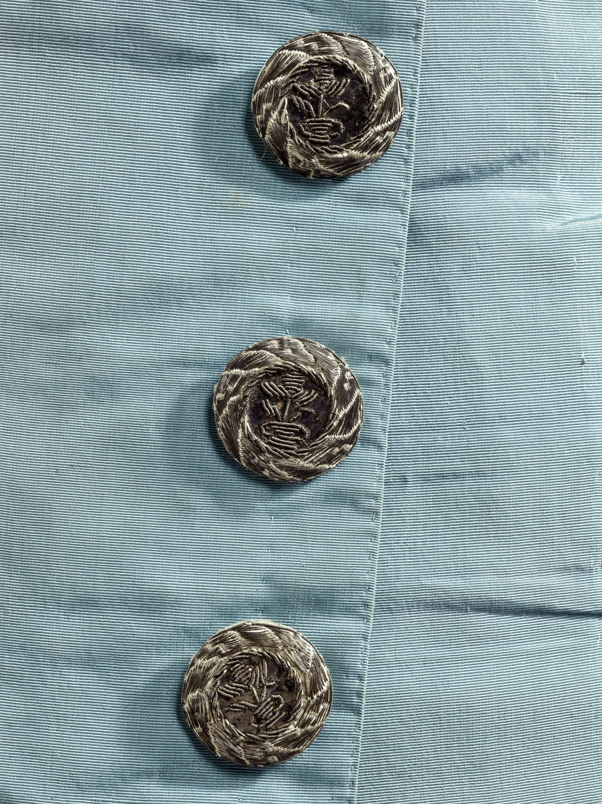 - Silk plain weave (faille) with metallic-thread passementerie