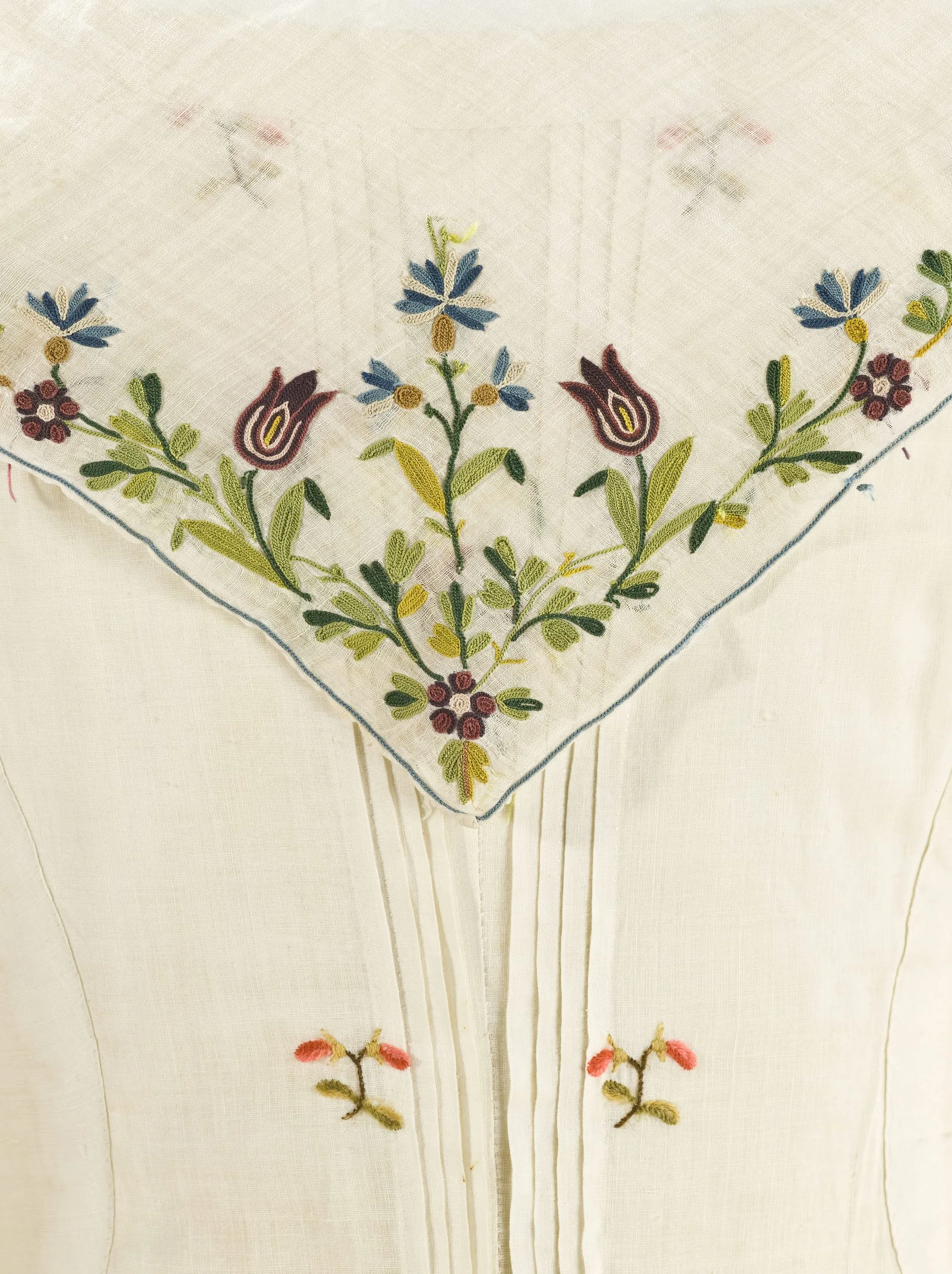 - Cotton plain weave (muslin) with silk embroidery