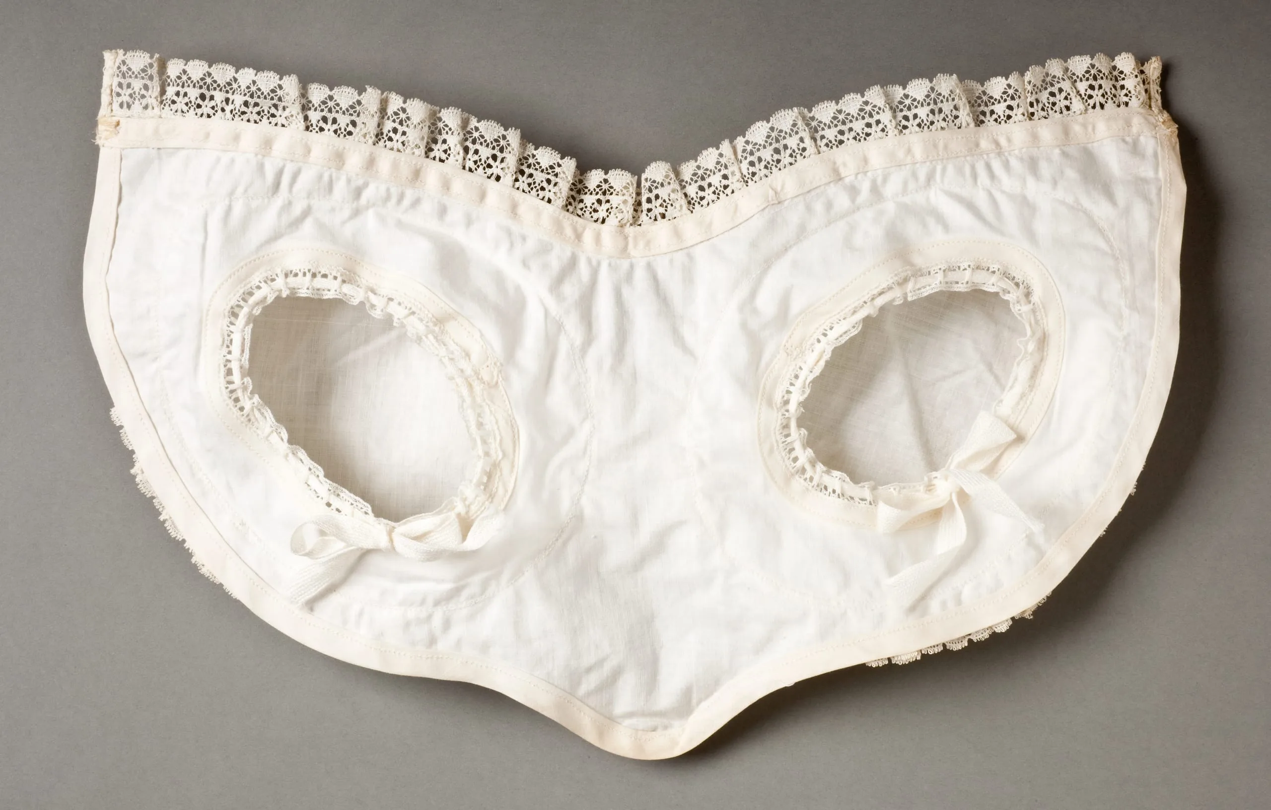 - Cotton plain weave with cotton lace and silk satin ribbon trim