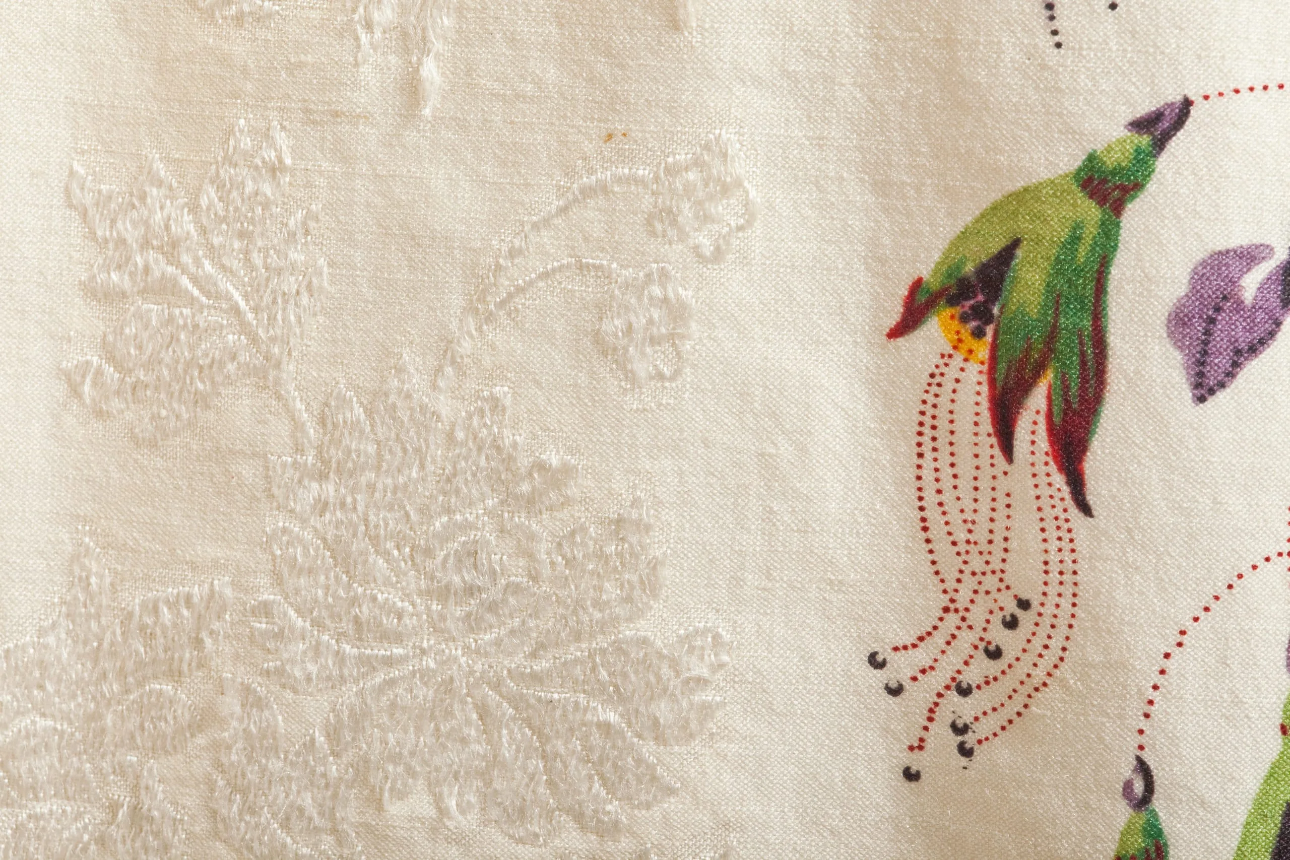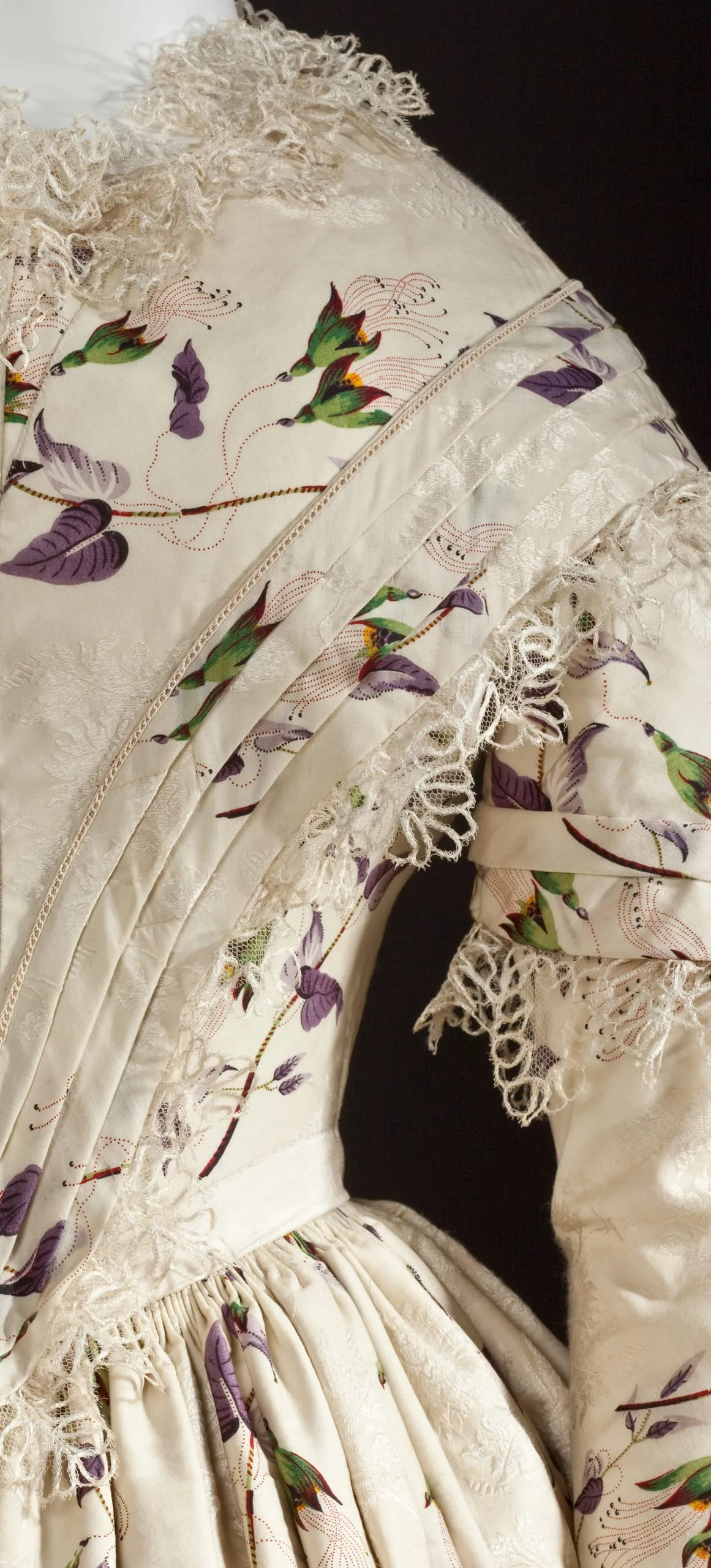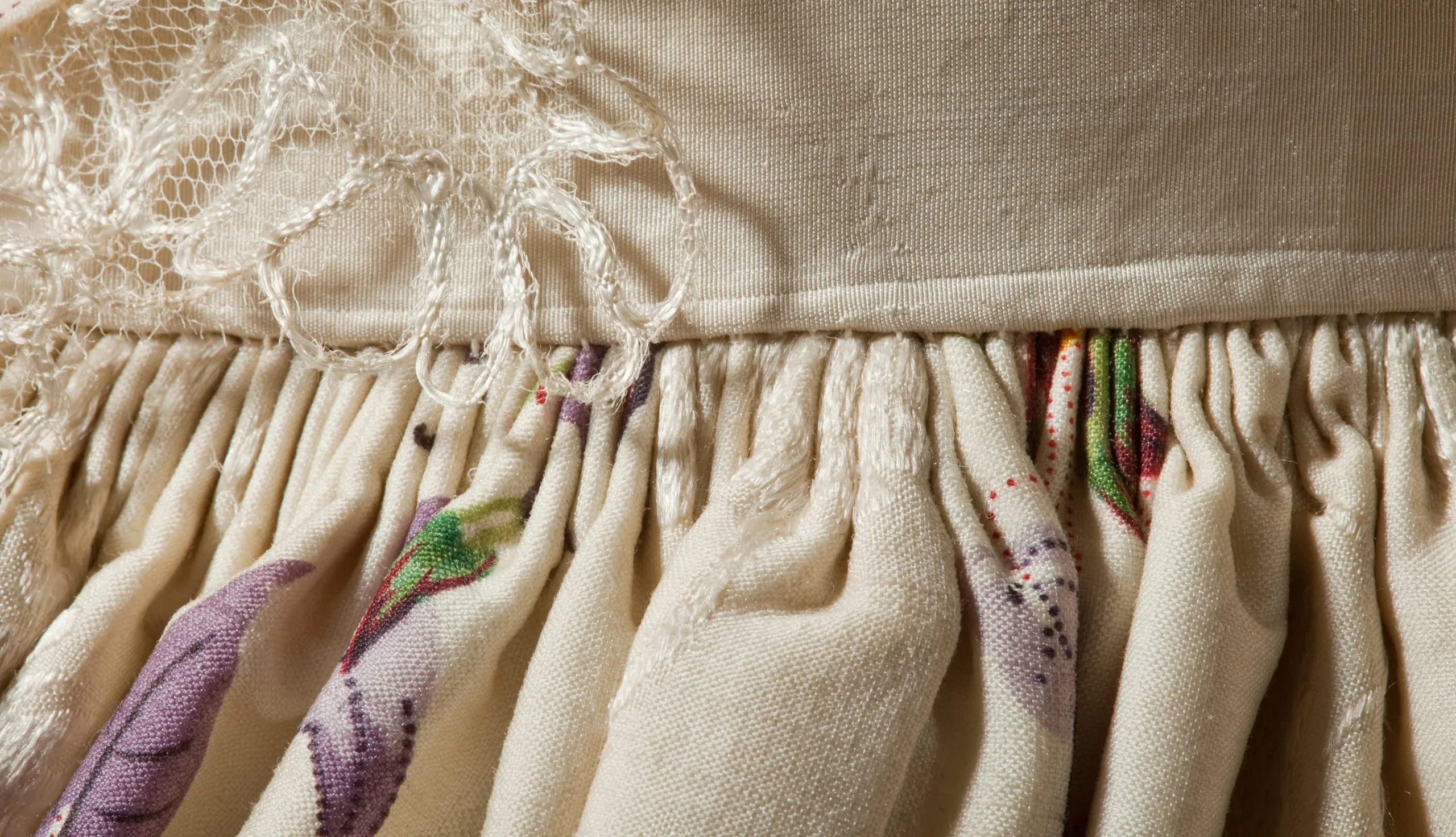 - Silk plain weave with warp-float patterning, printed, silk lace and silk passementerie