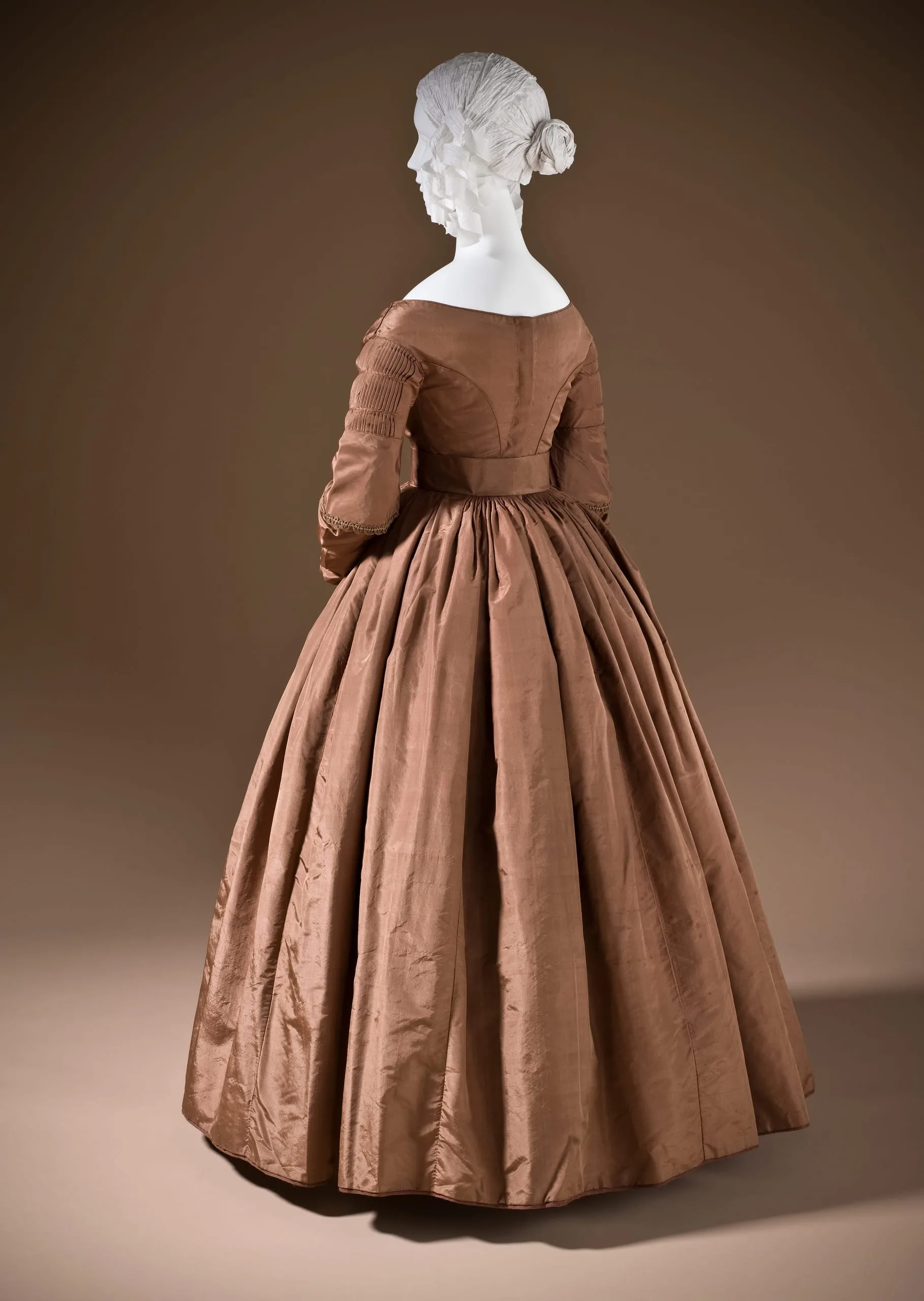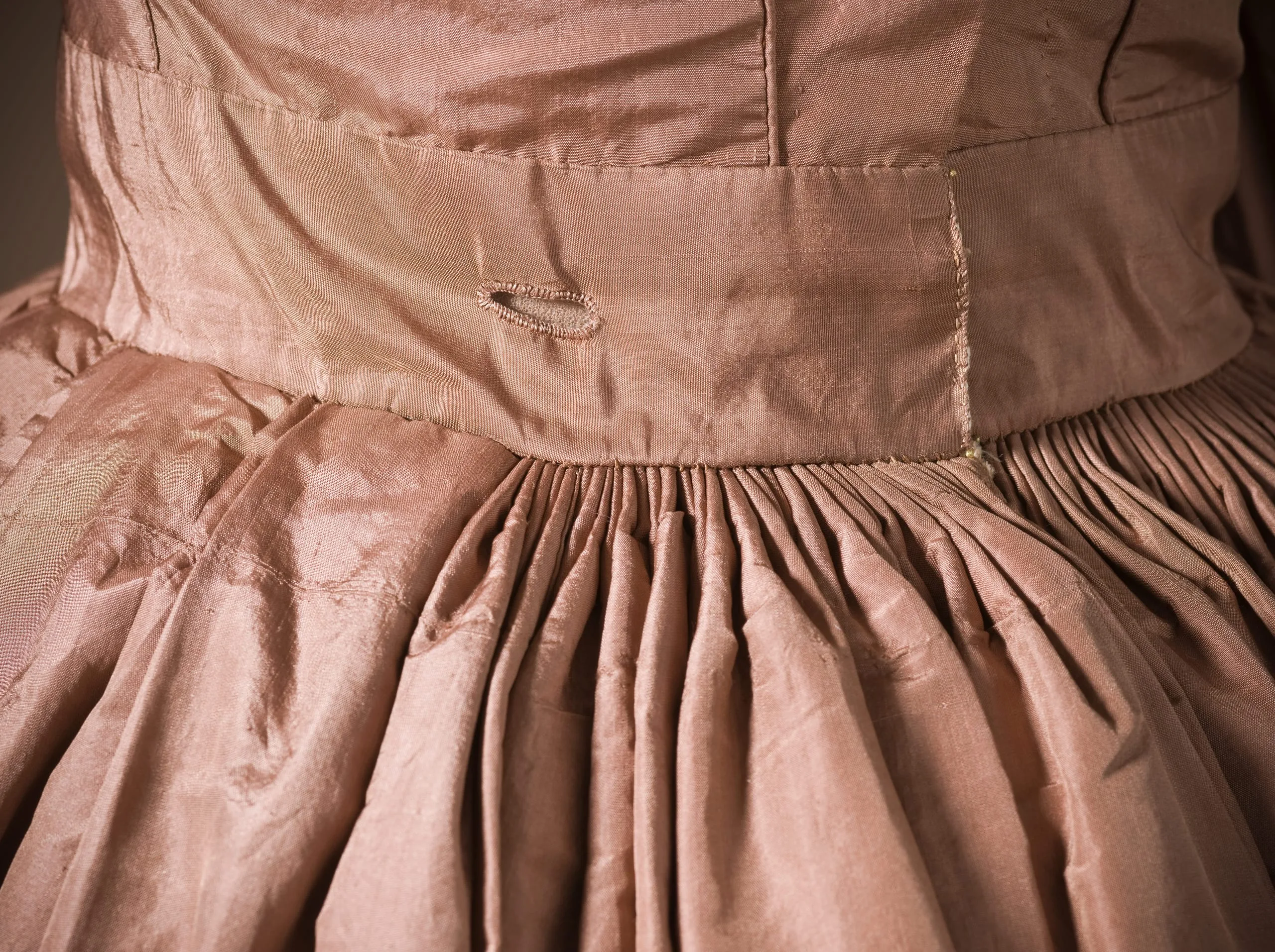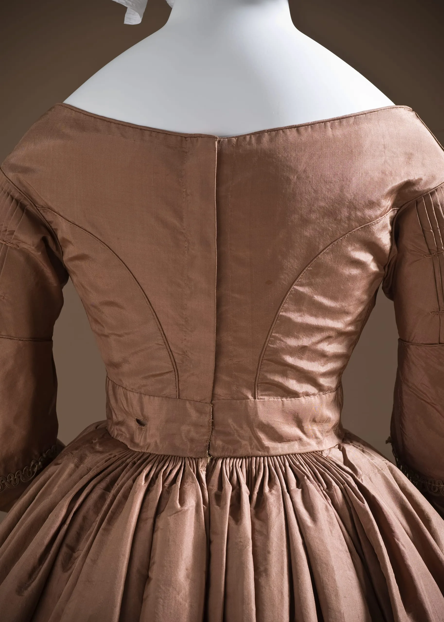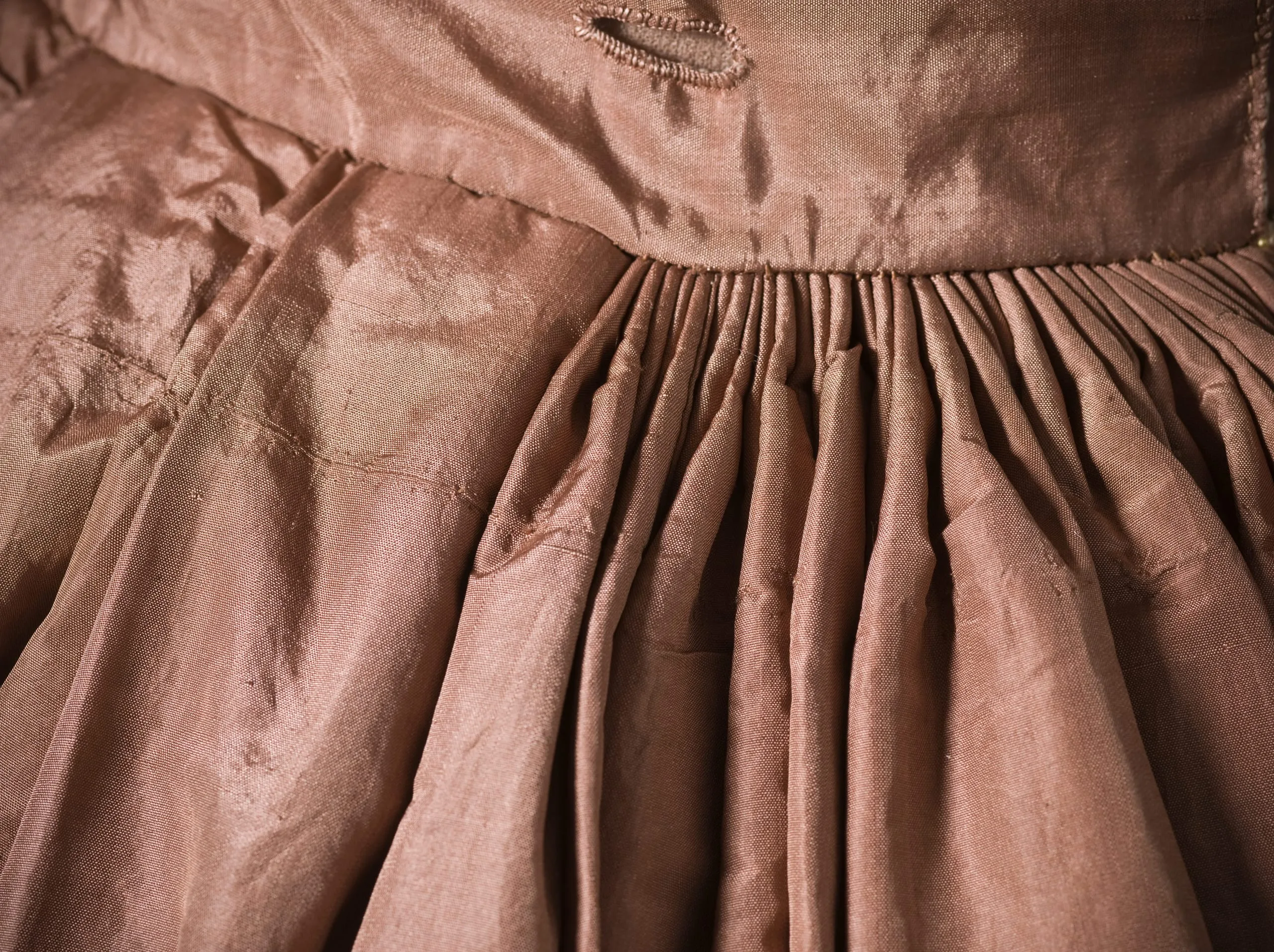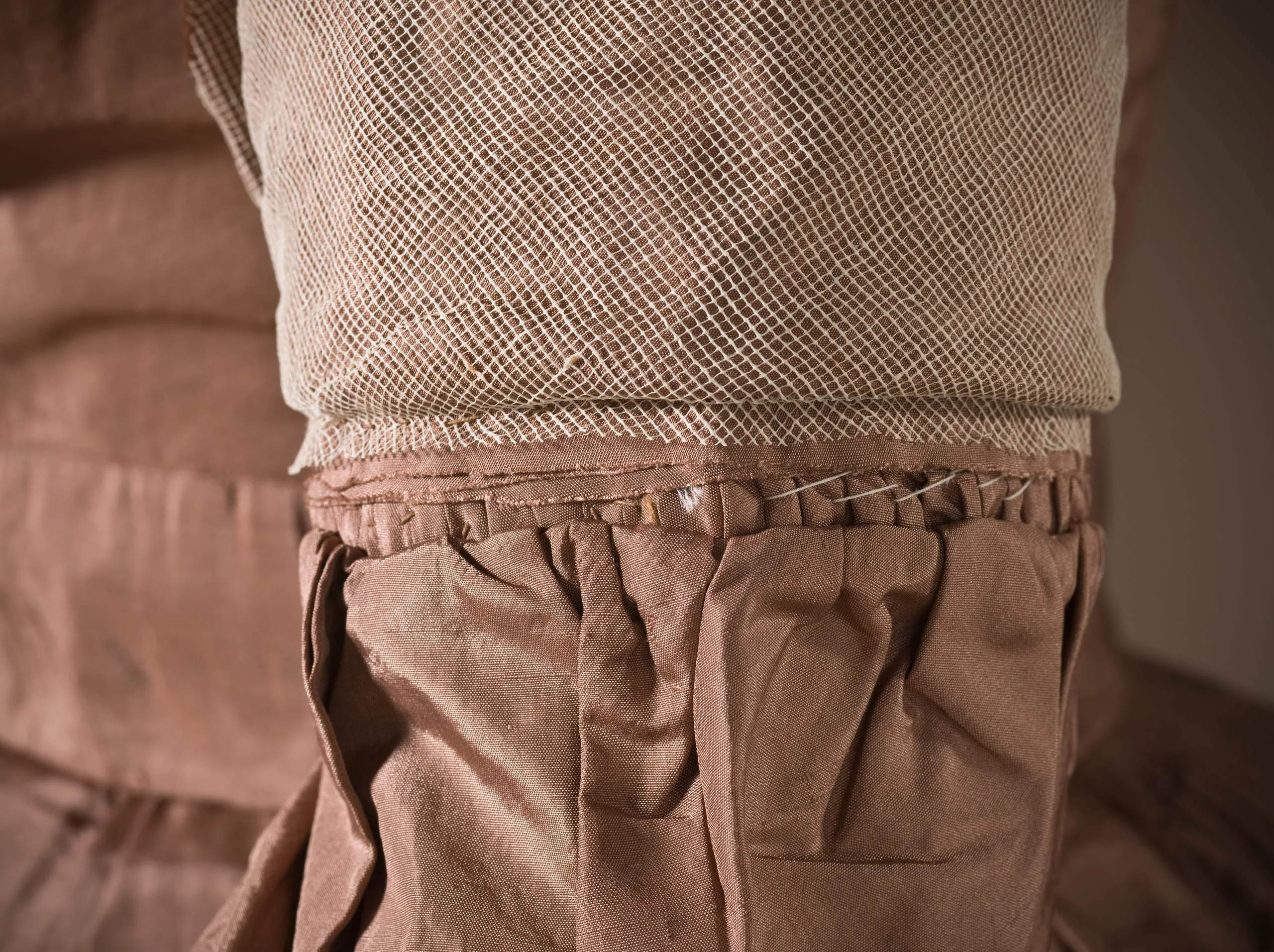 - Silk plain weave (taffeta) with silk cord embroidery and silk braid