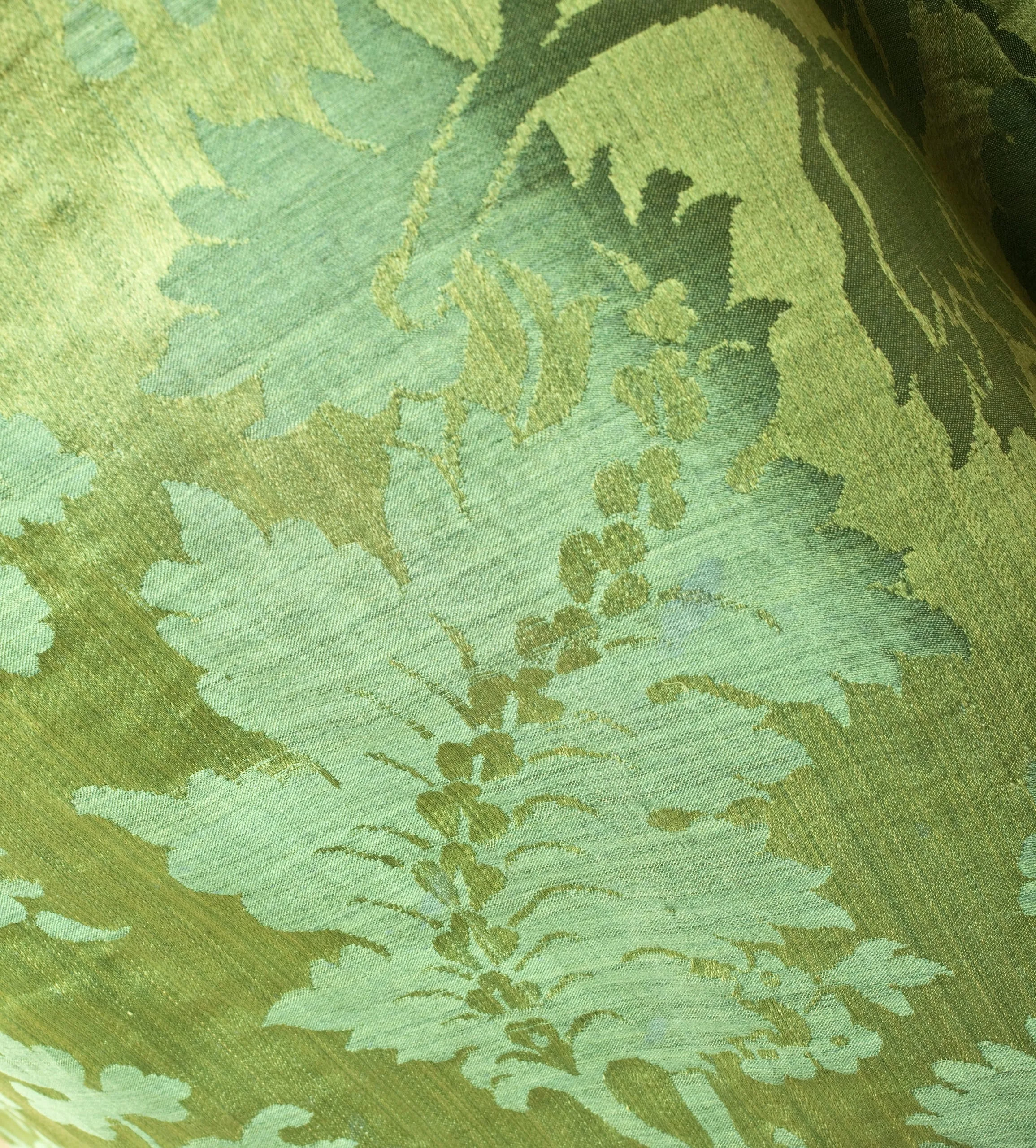 - Silk satin with silk plain weave patterning (damassé) with silk thread covered buttons