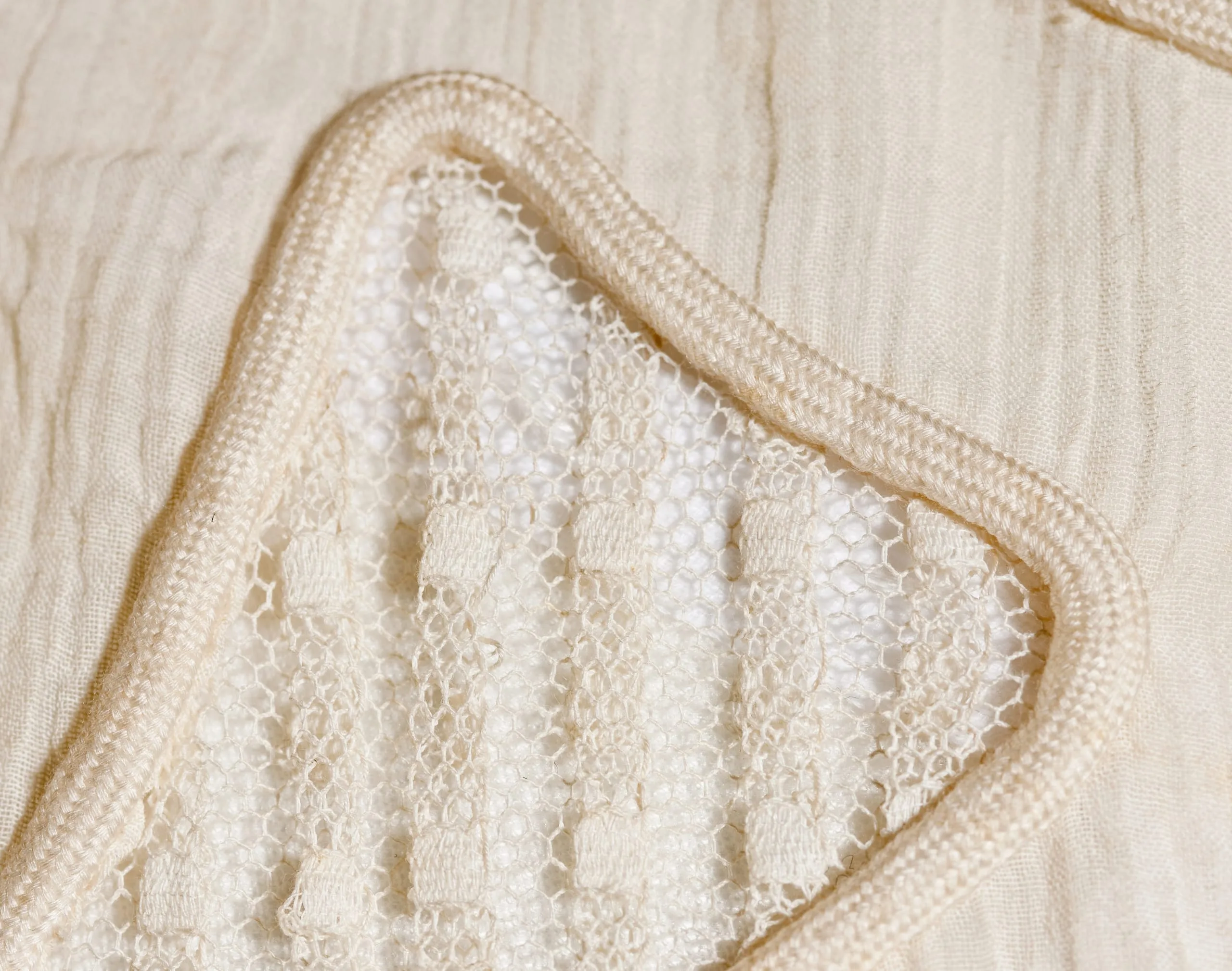 - Cotton plain weave (crepe) and cotton net with cotton cord
