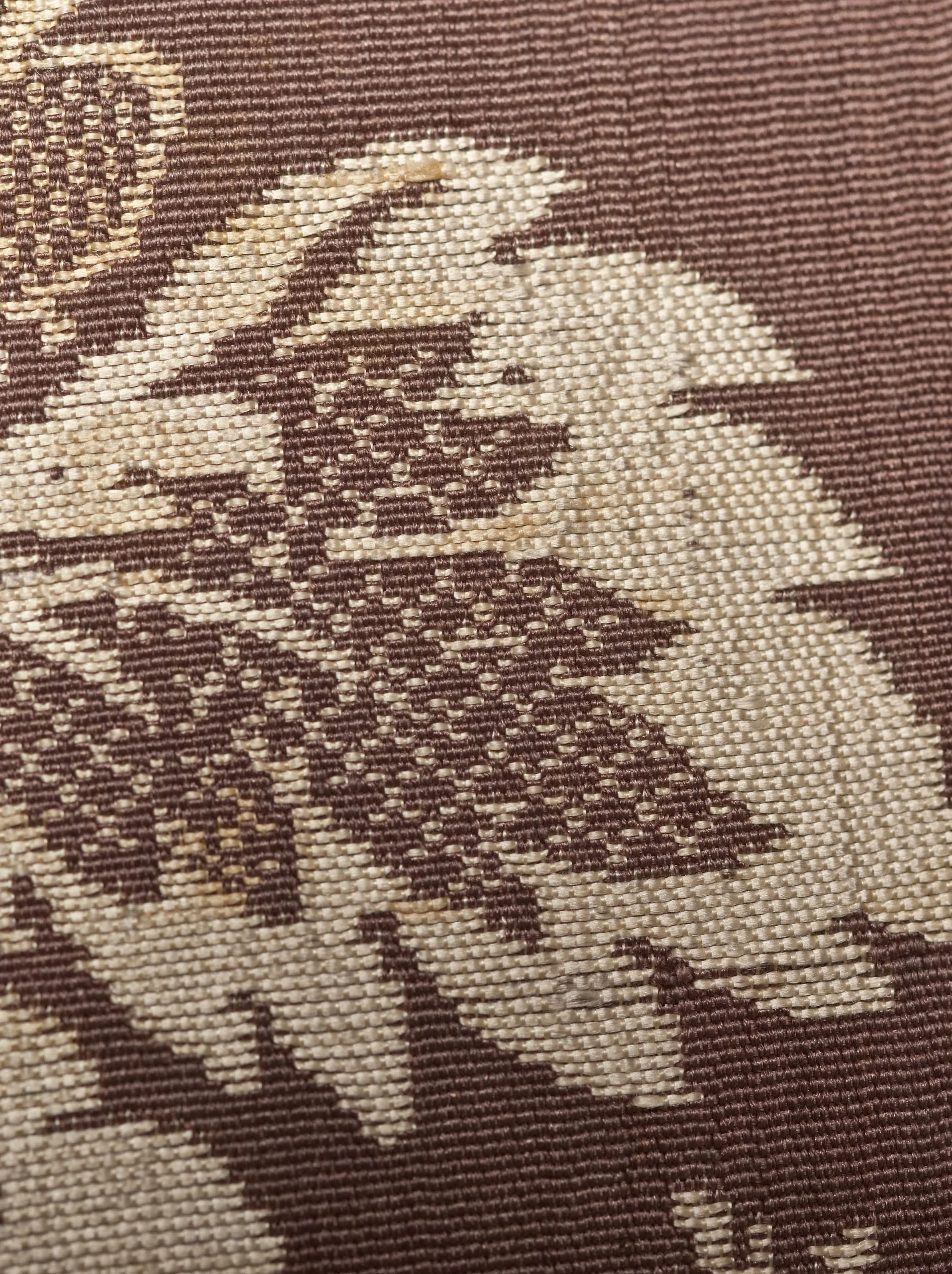 - Silk plain weave with supplementary weft patterning bound in plain weave (lampas)