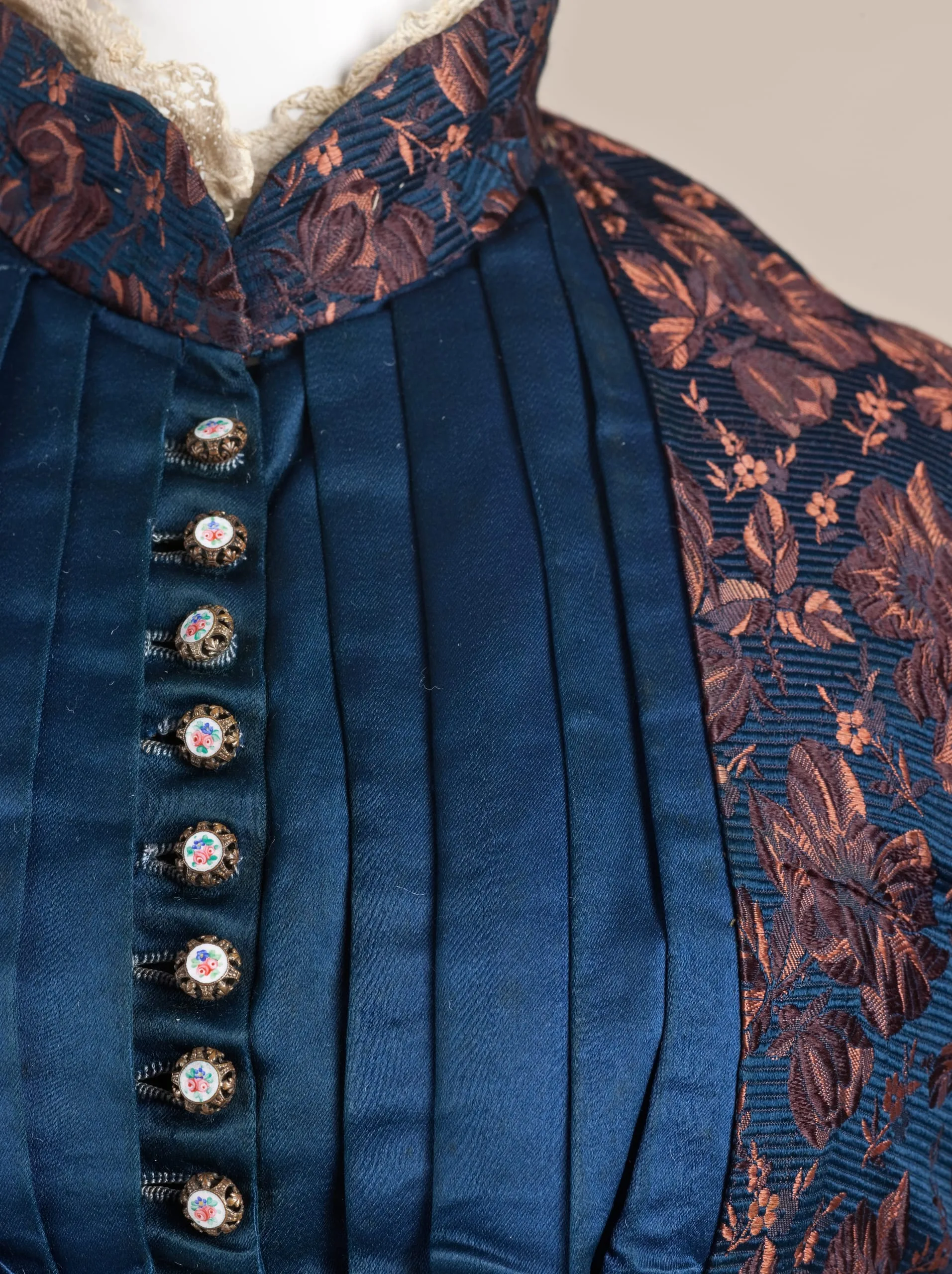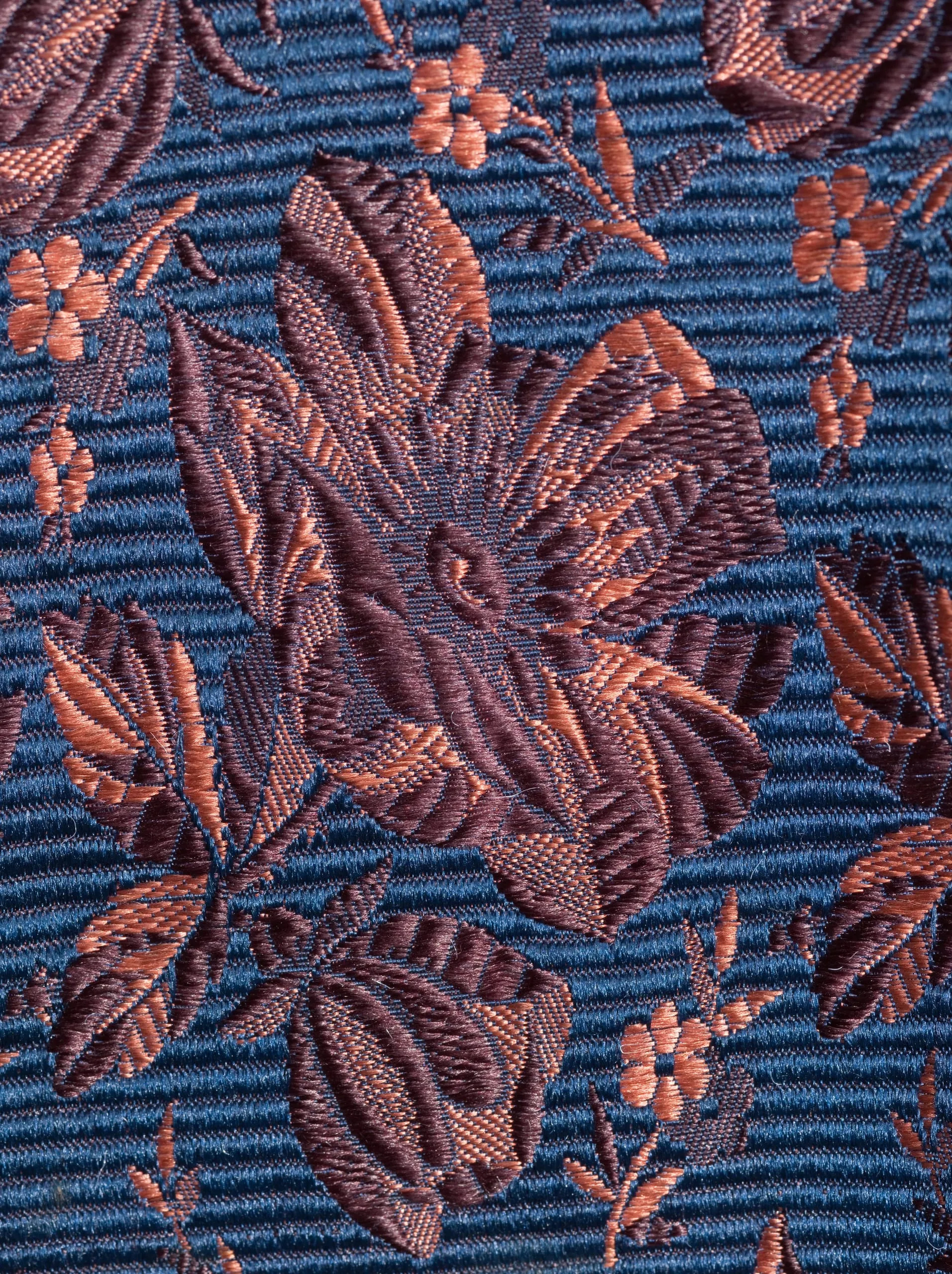- Silk plain weave with warp-float and supplementary weft patterning, and silk satin