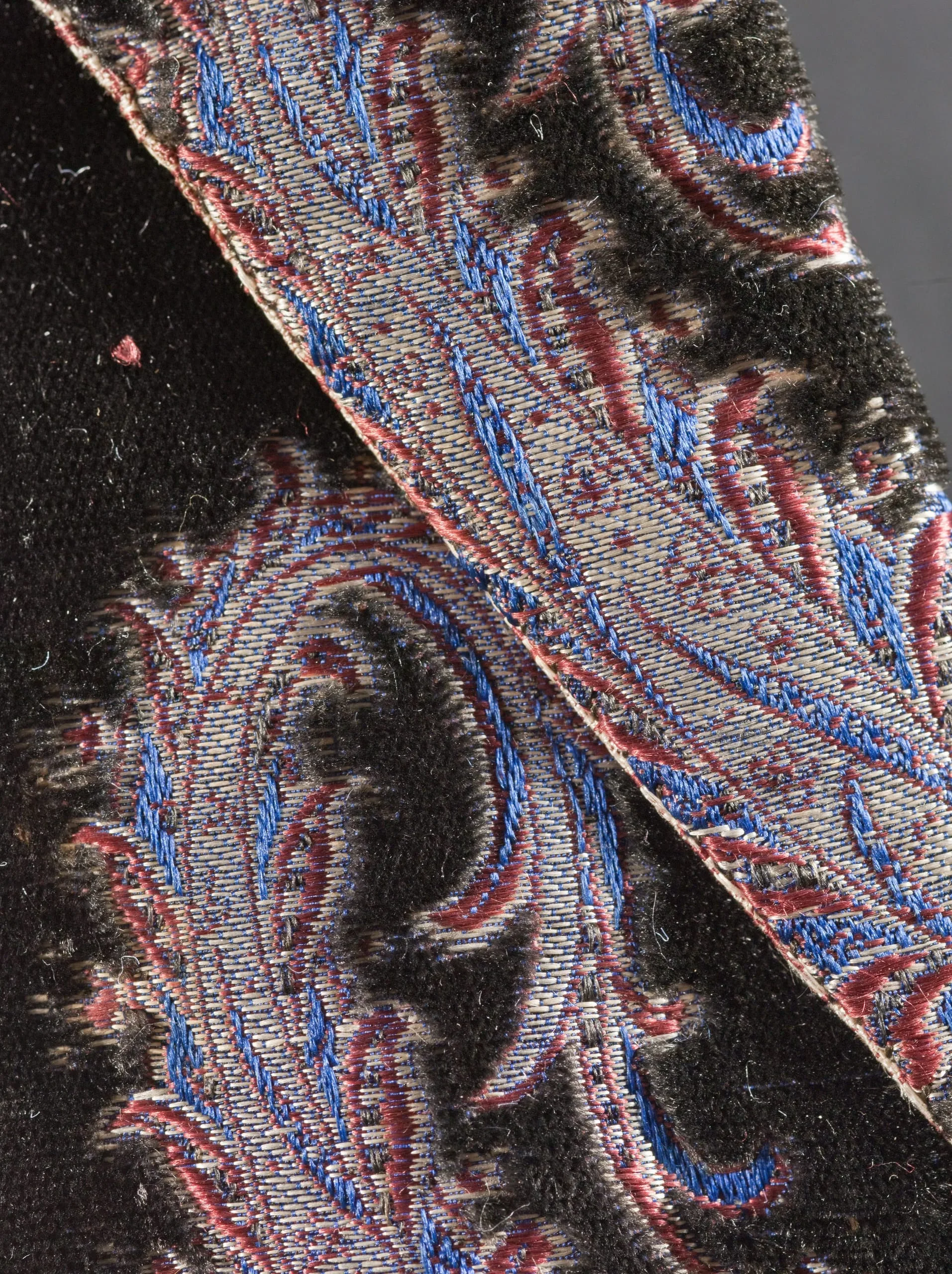 - Silk cut and voided velvet on satin foundation with supplementary weft-float patterning