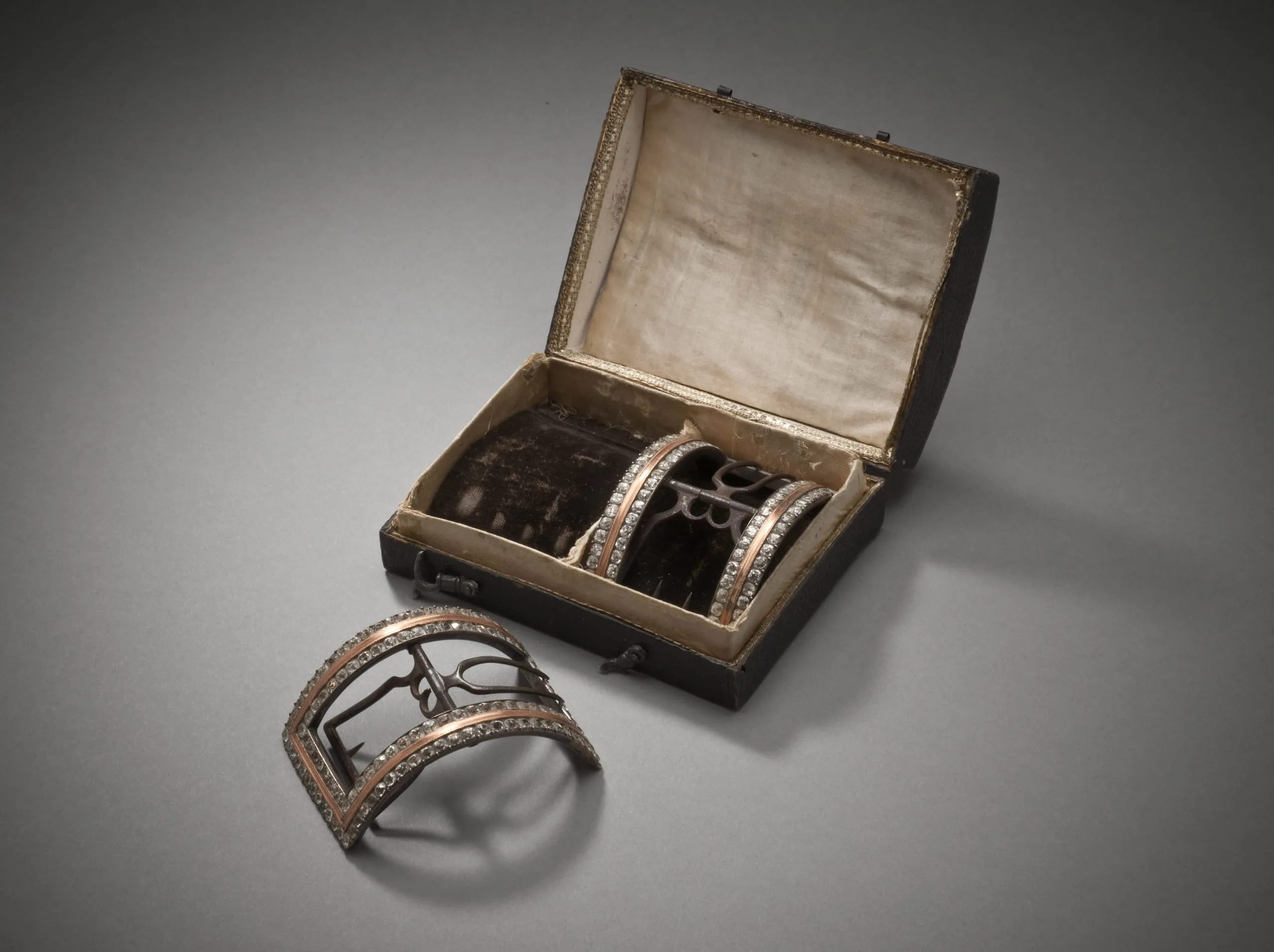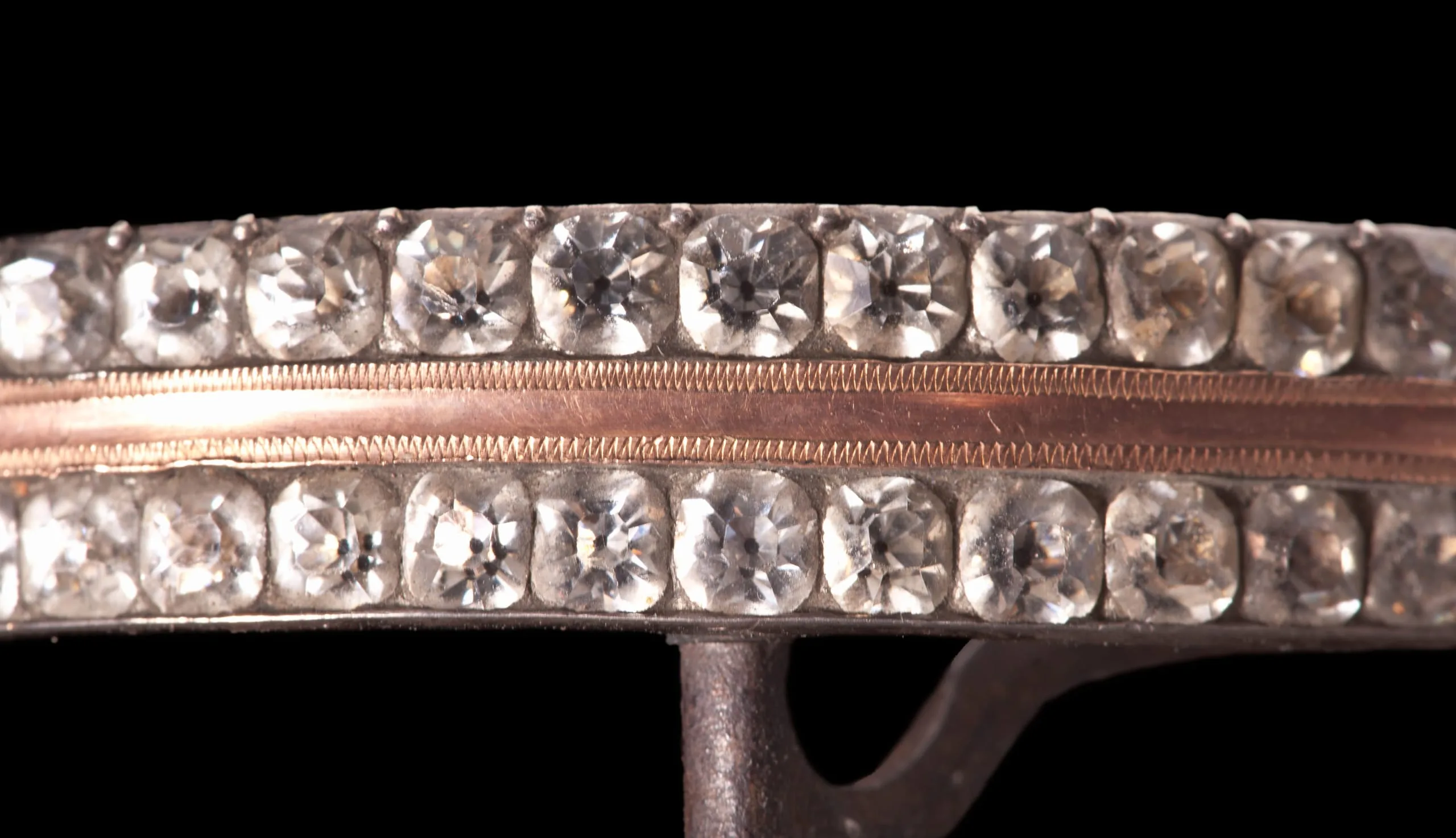 - Paste stones with gilded-copper-alloy trim on silver and steel