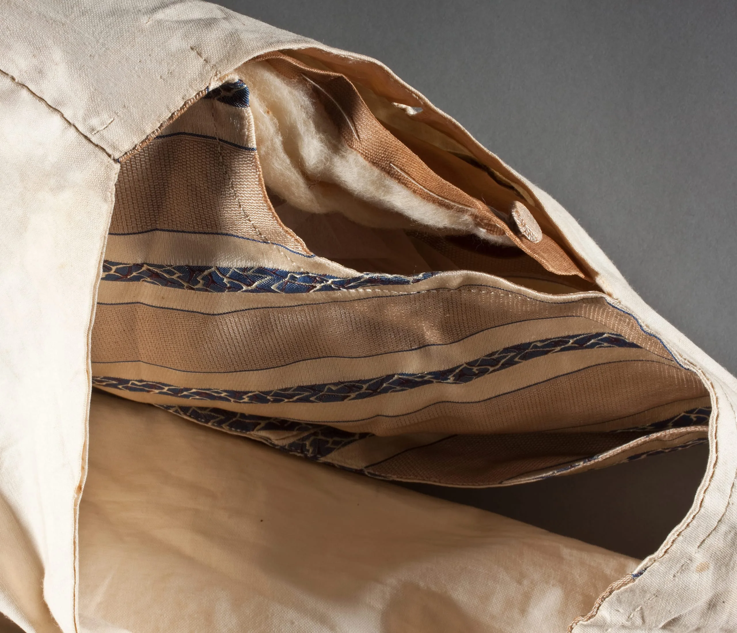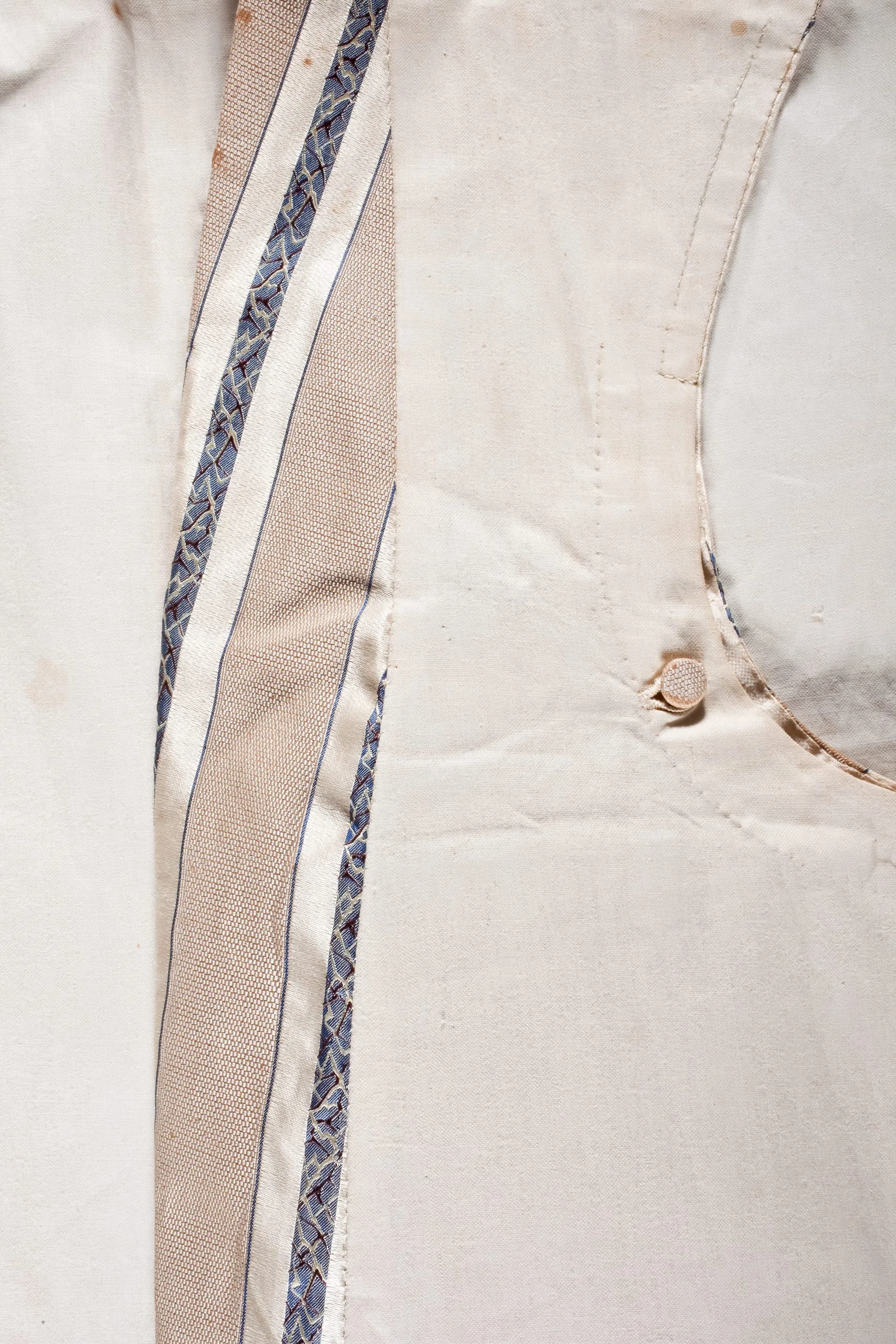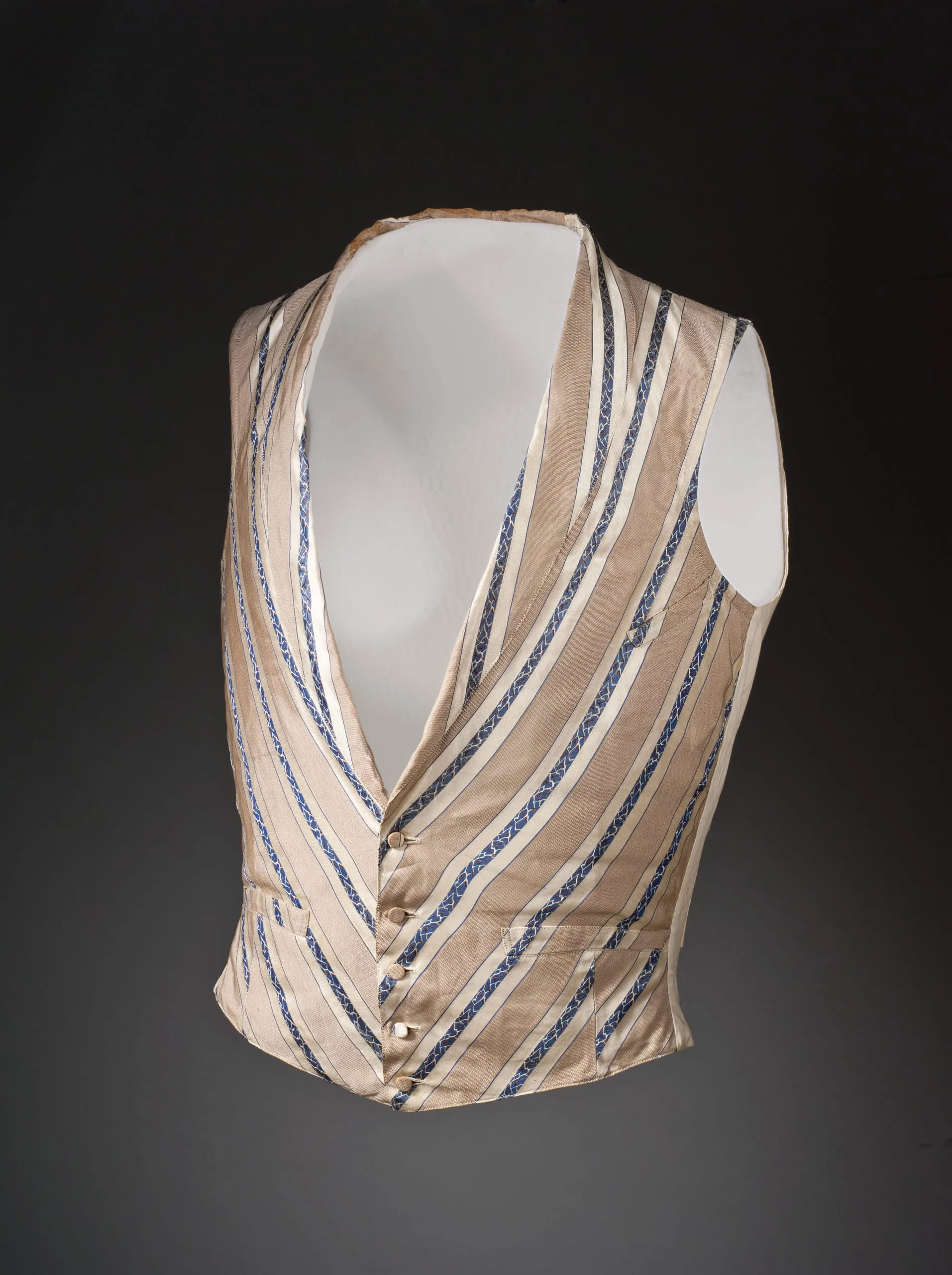 - Vest: silk satin with supplementary weft-float patterning; pads: cotton twill with cotton wadding