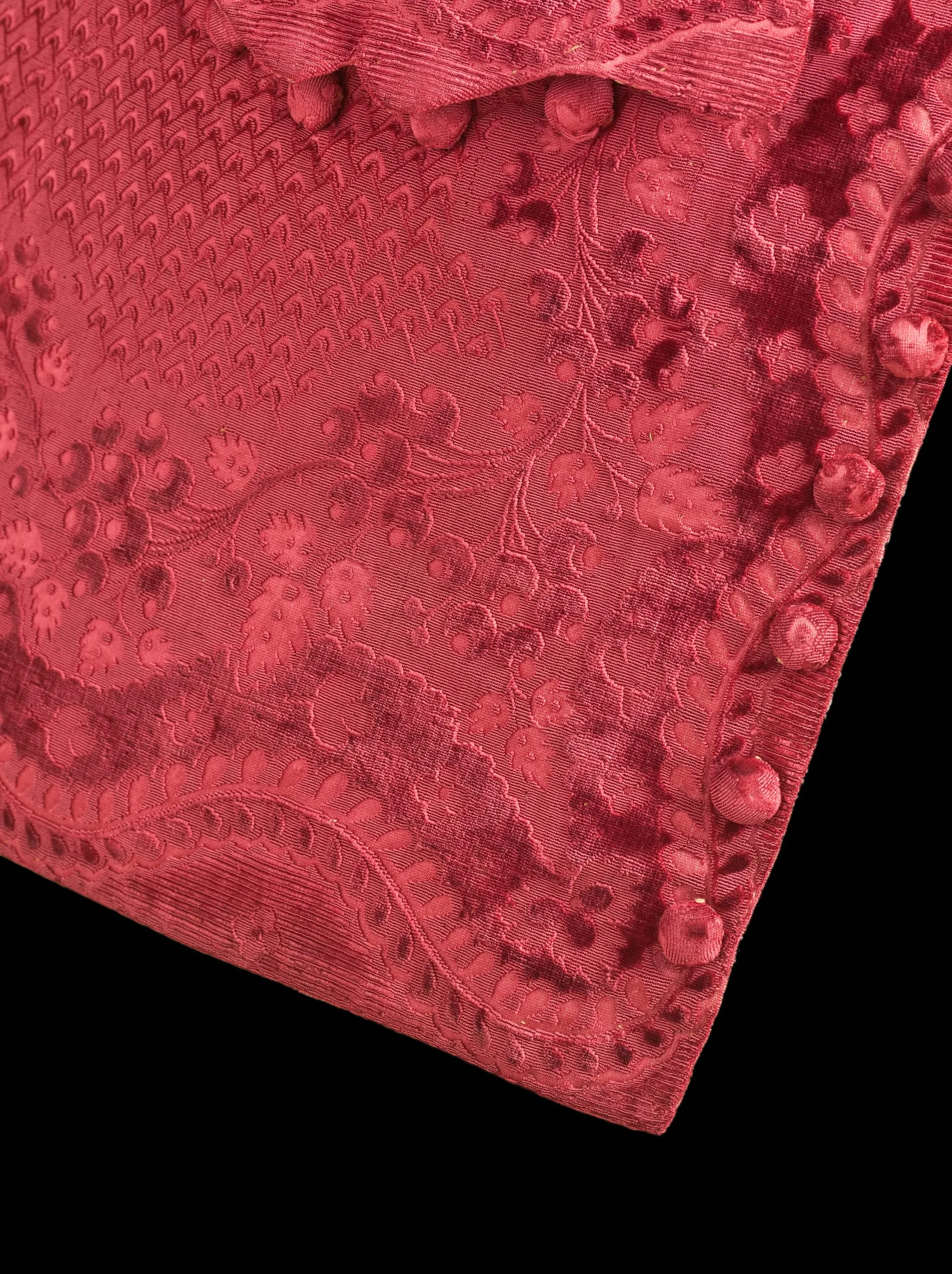 - Silk cut, uncut, and voided velvet (ciselé) on satin foundation