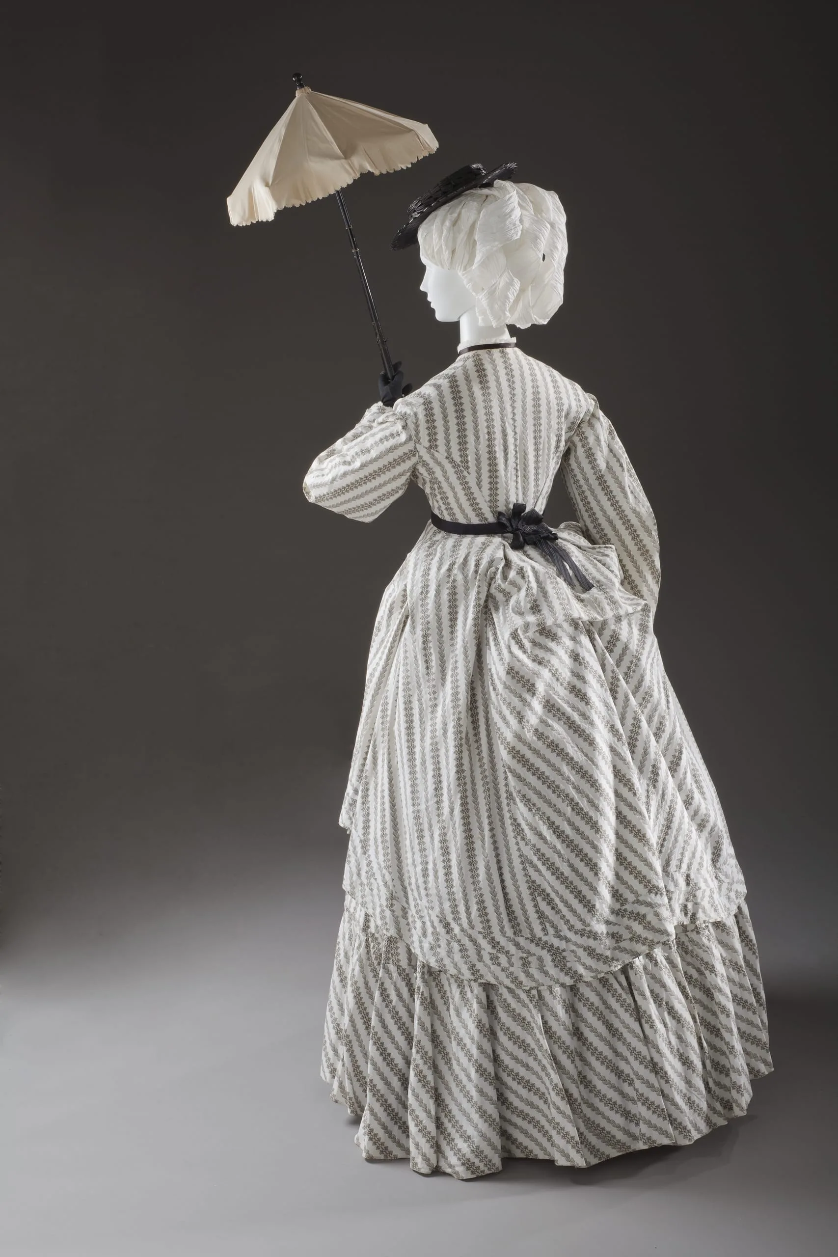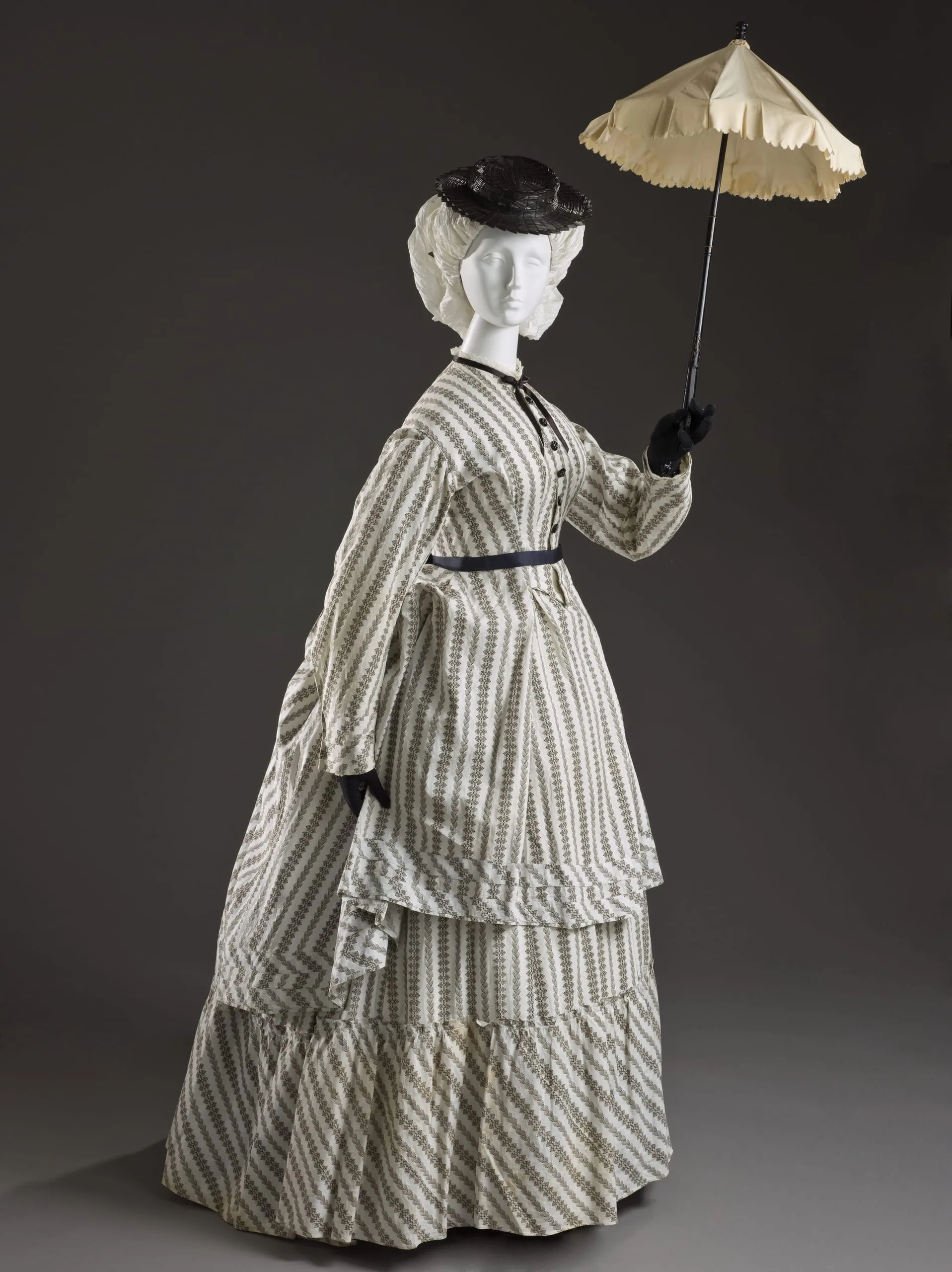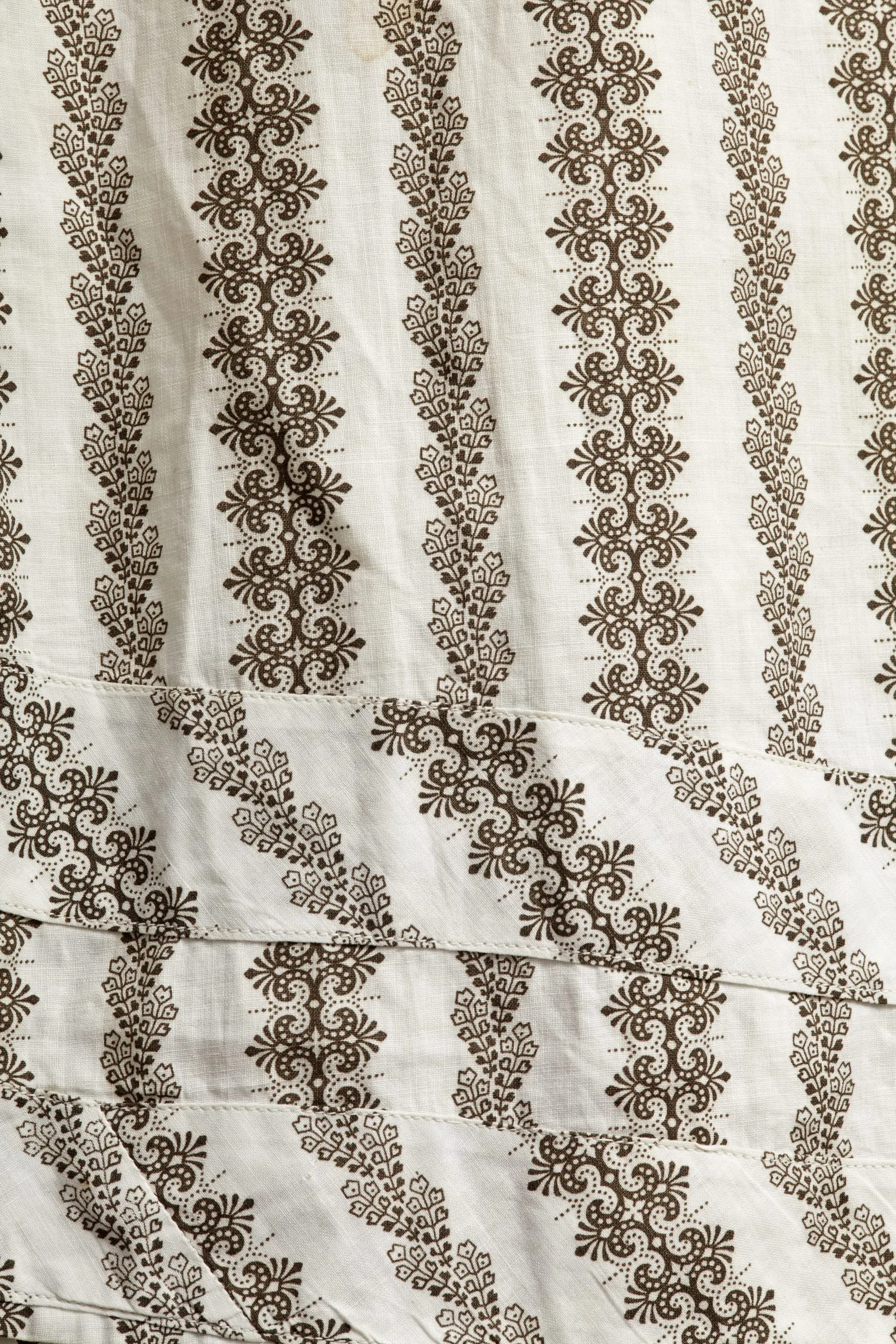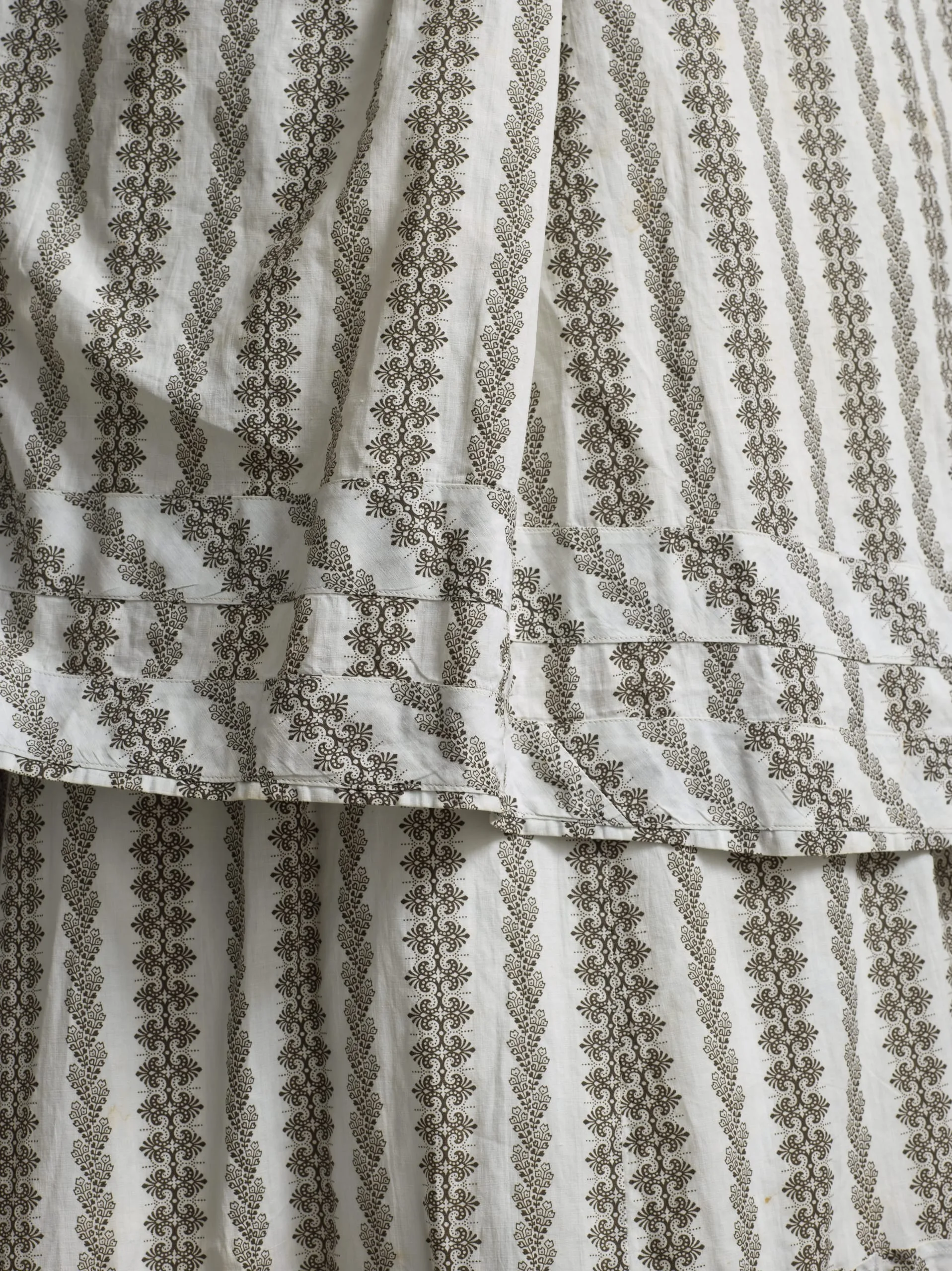 - Overdress: Cotton plain weave, printed, with glass buttons; Skirt: Cotton plain weave, printed