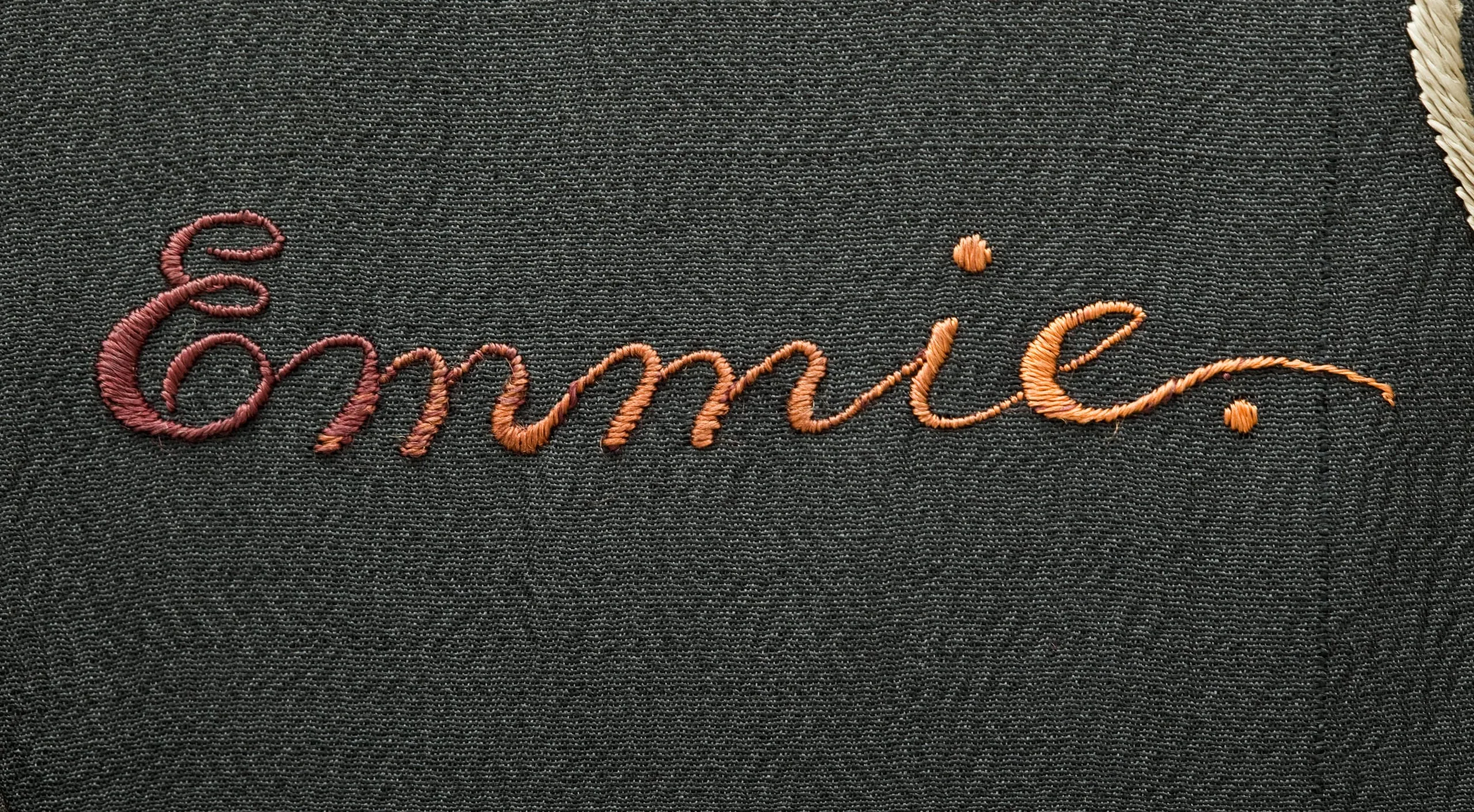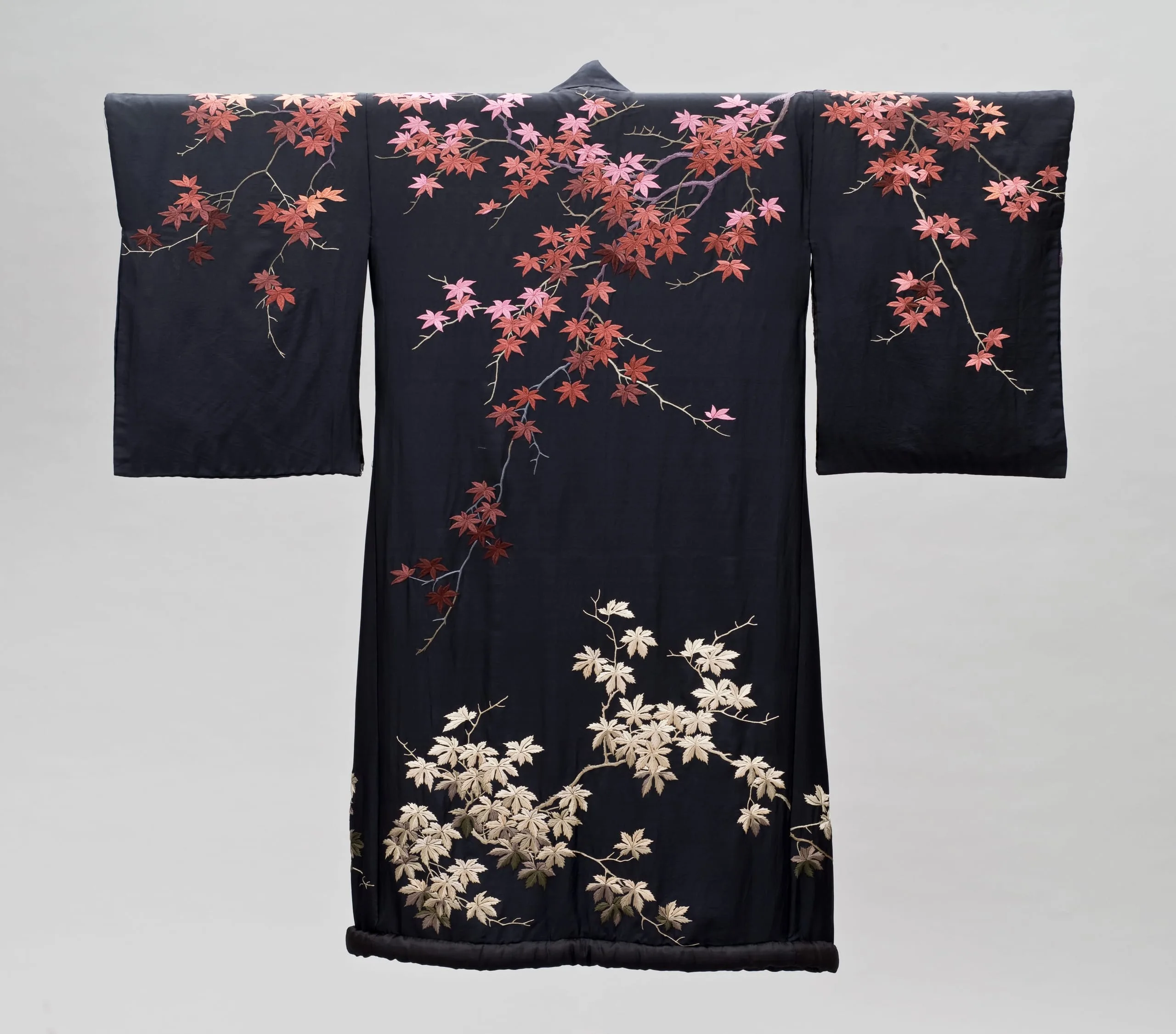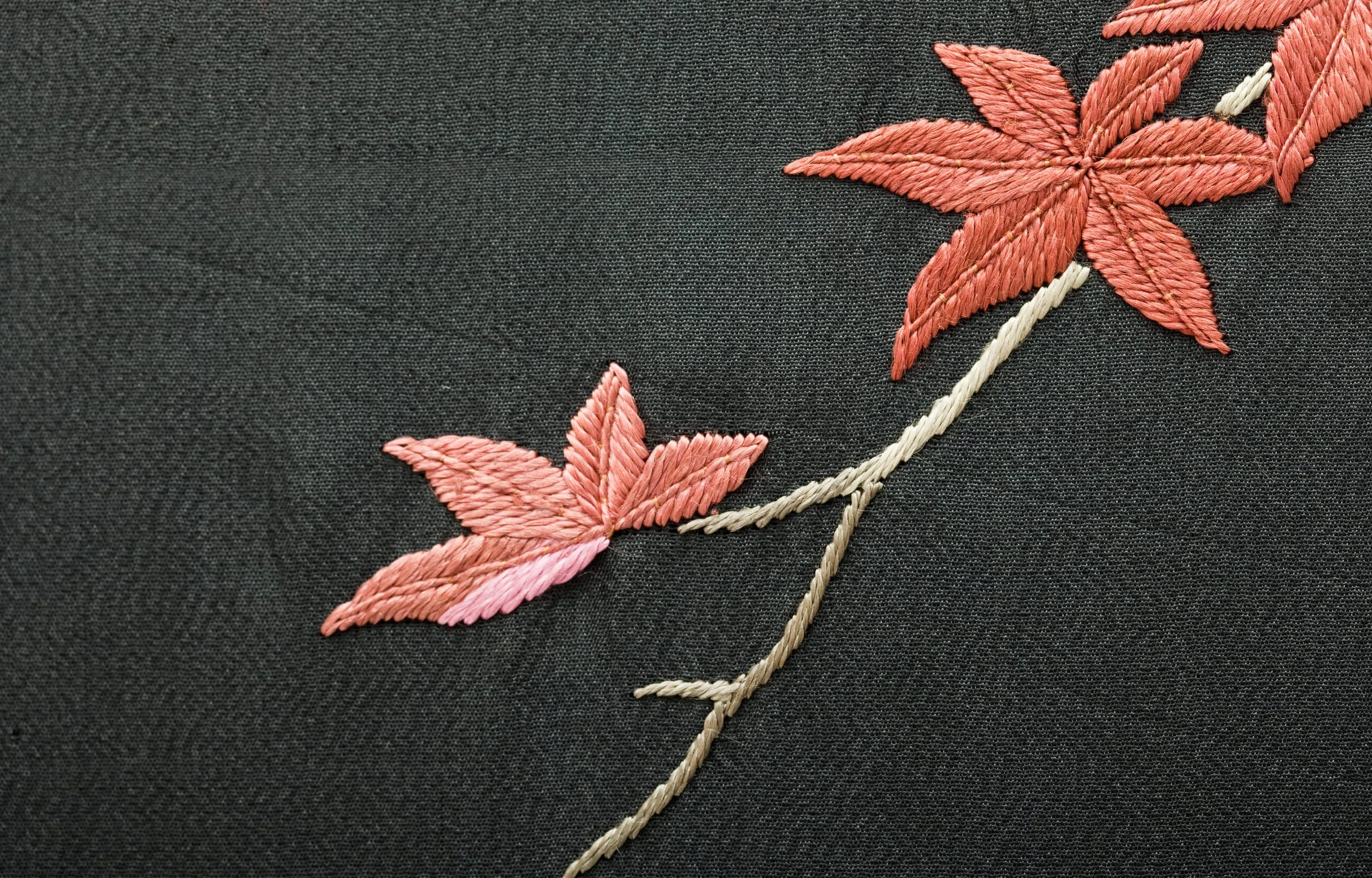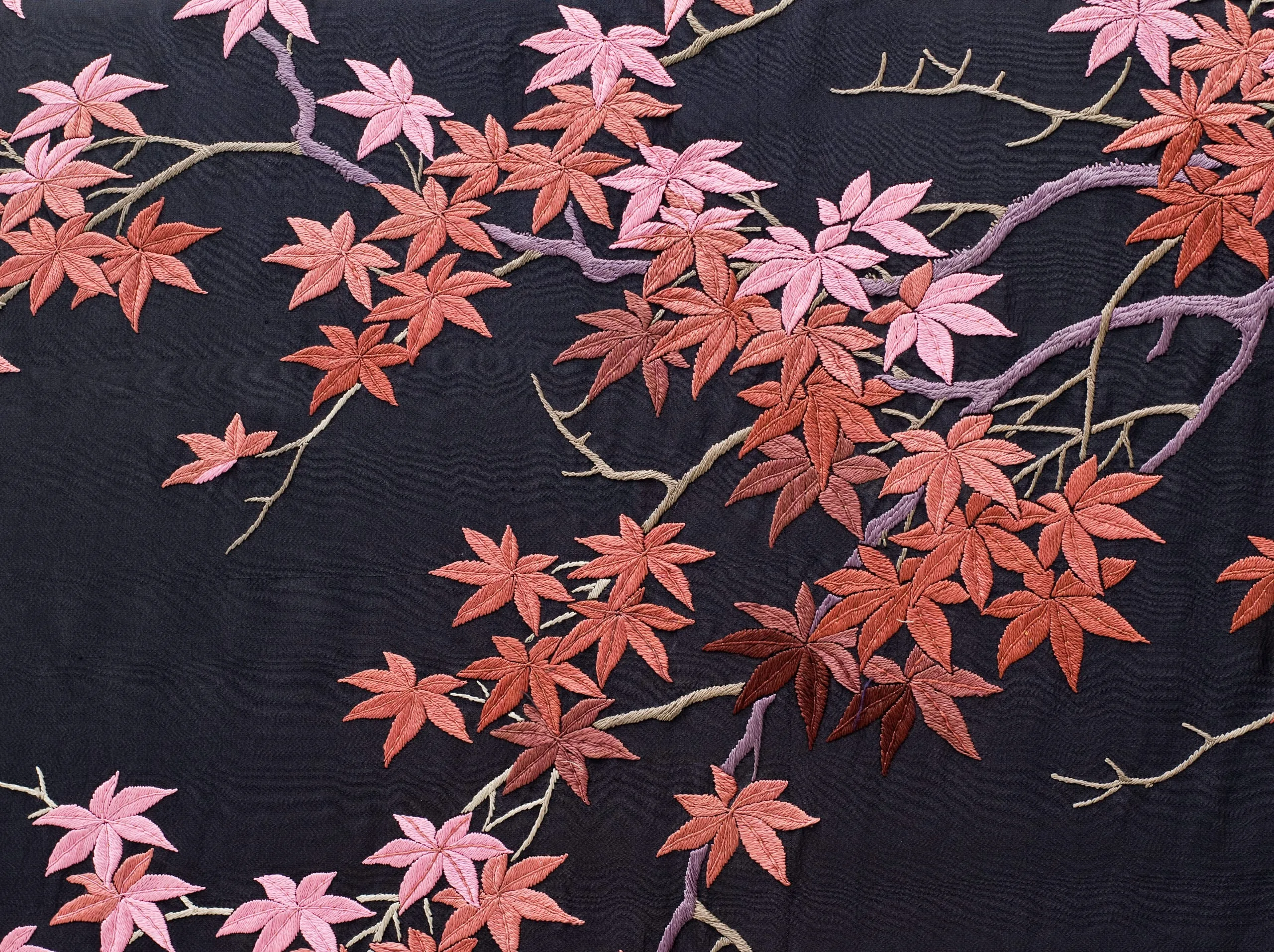 - Gown: silk crepe with silk embroidery; sash: silk plain weave with silk embroidery and silk knotted fringe