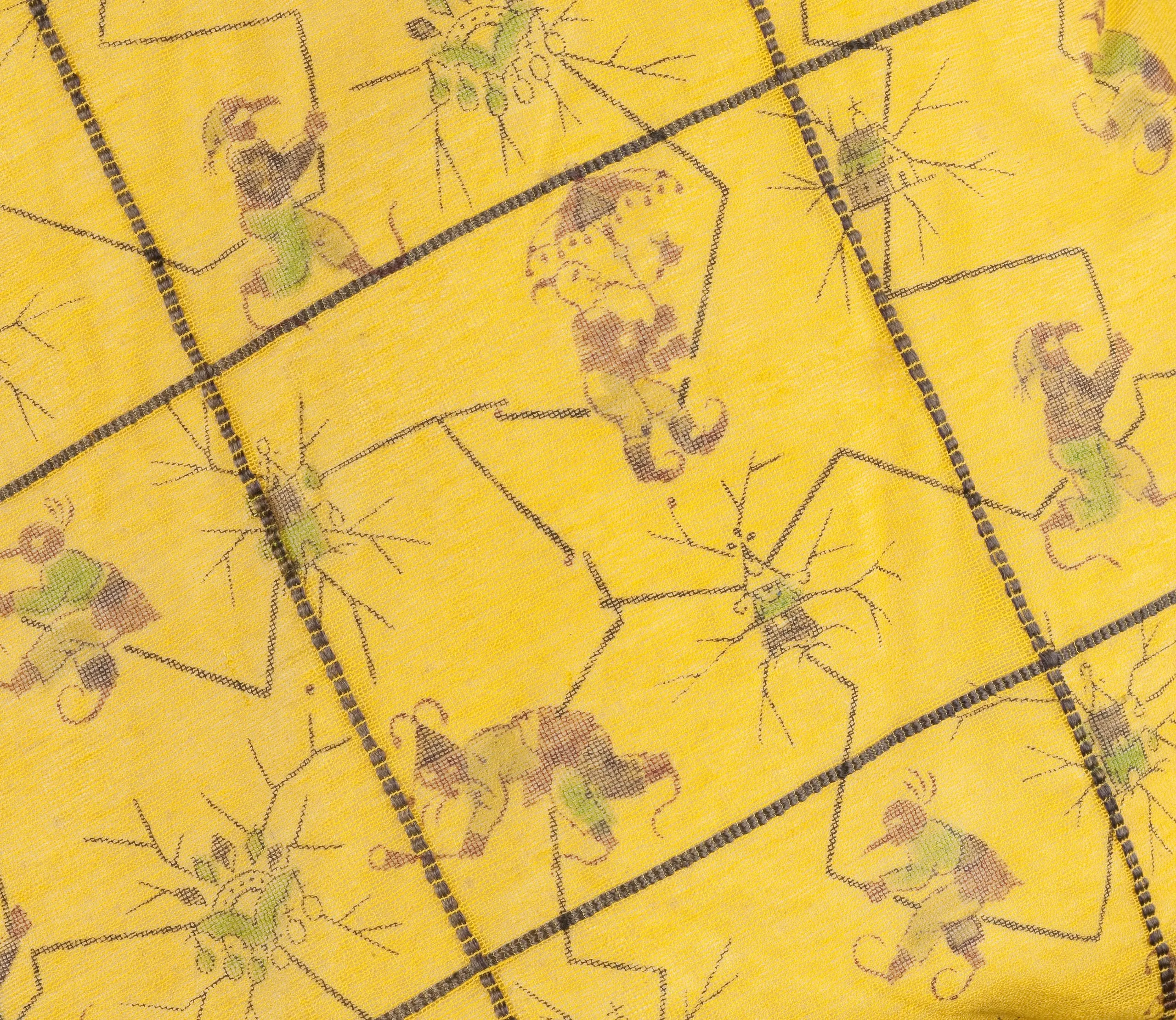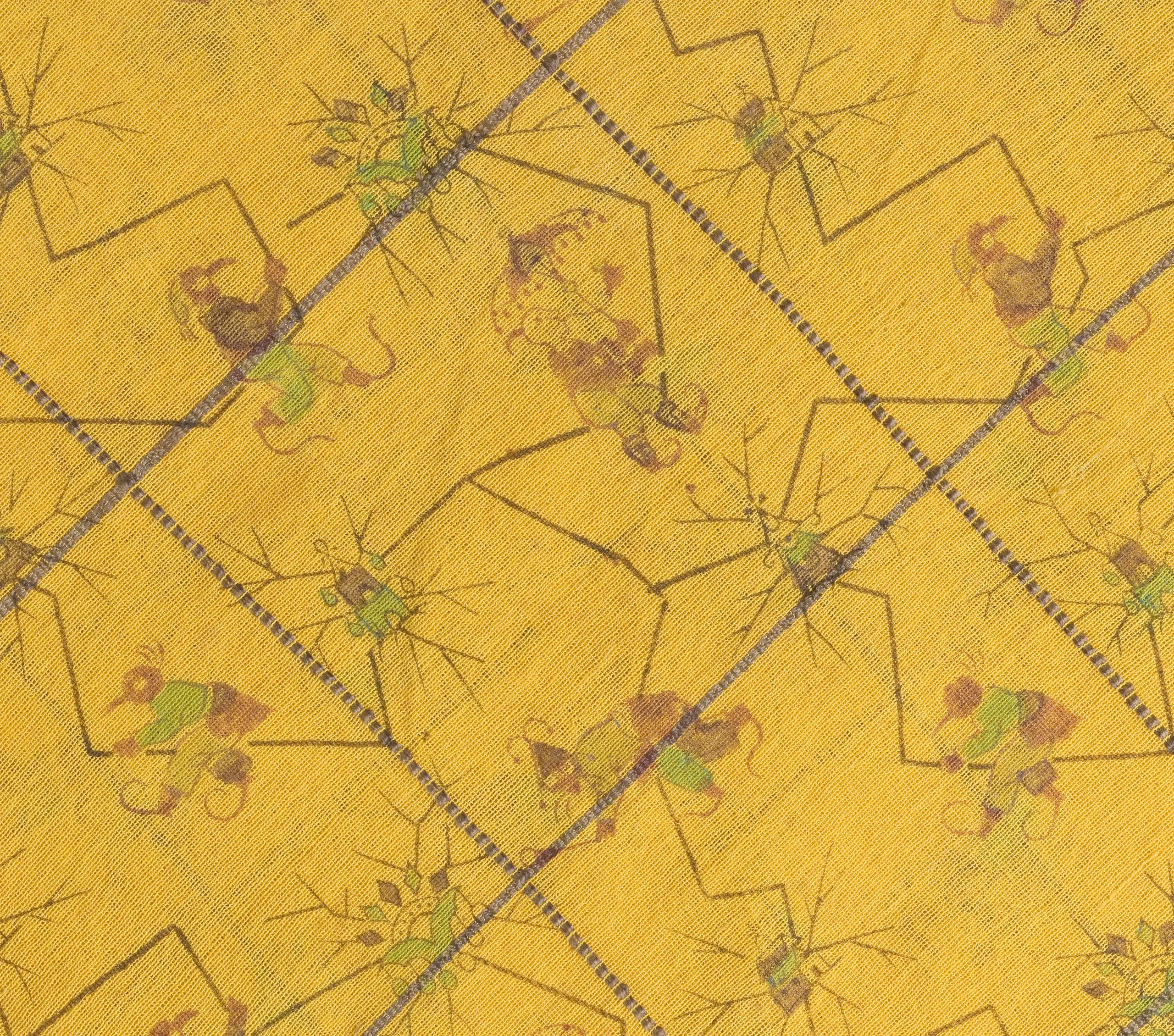 - Silk and cotton gauze with silk supplementary warp and weft patterning, block-printed