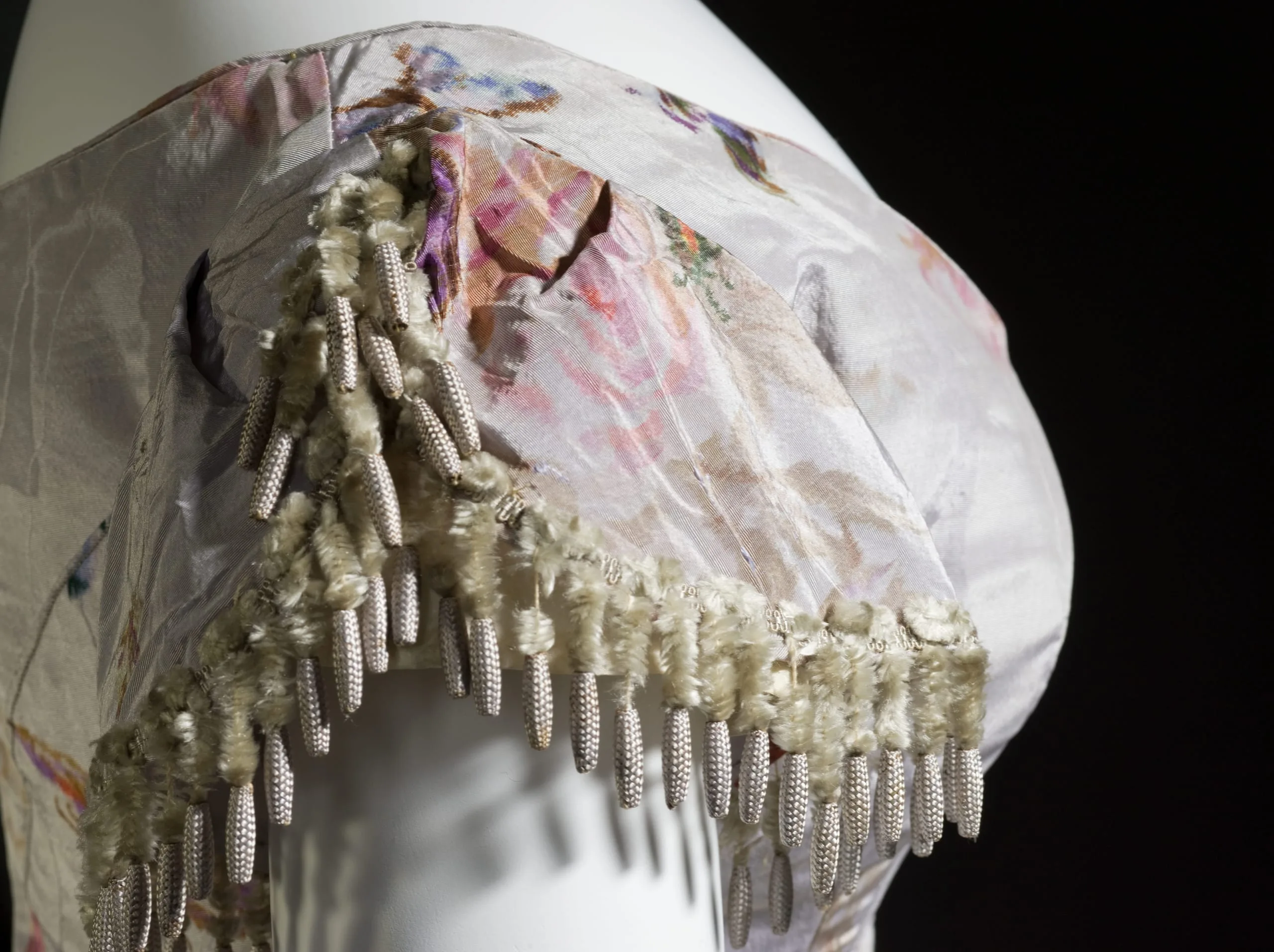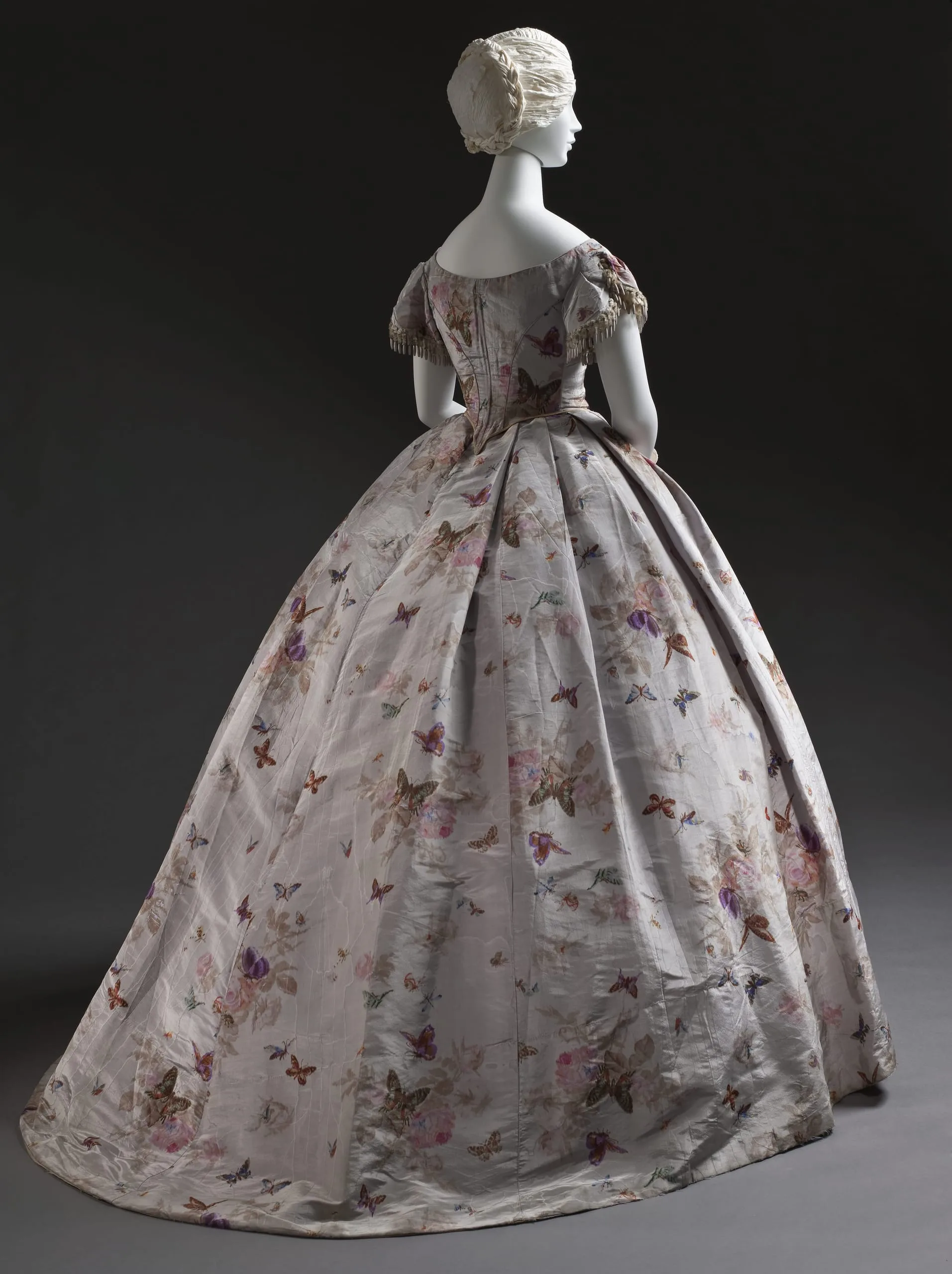 - a) Jacket center back length: 17 3/4 in. (45.09 cm); b) Bodice center back length: 11 3/4 in. (29.85 cm); c) Skirt center back length: 46 1/2 in. (118.11 cm)