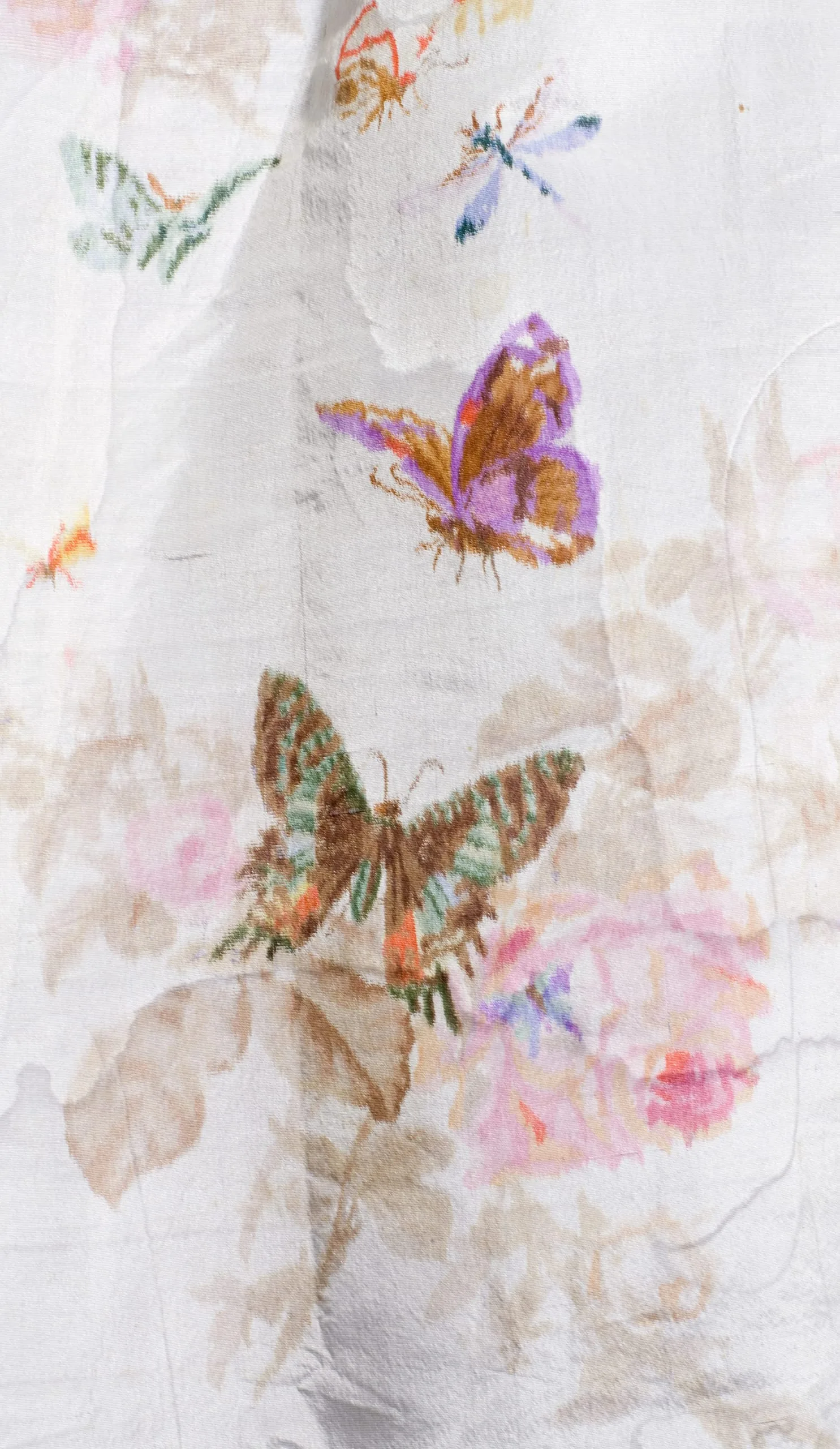 - Silk plain weave (taffeta) with printed warp, moiré finish