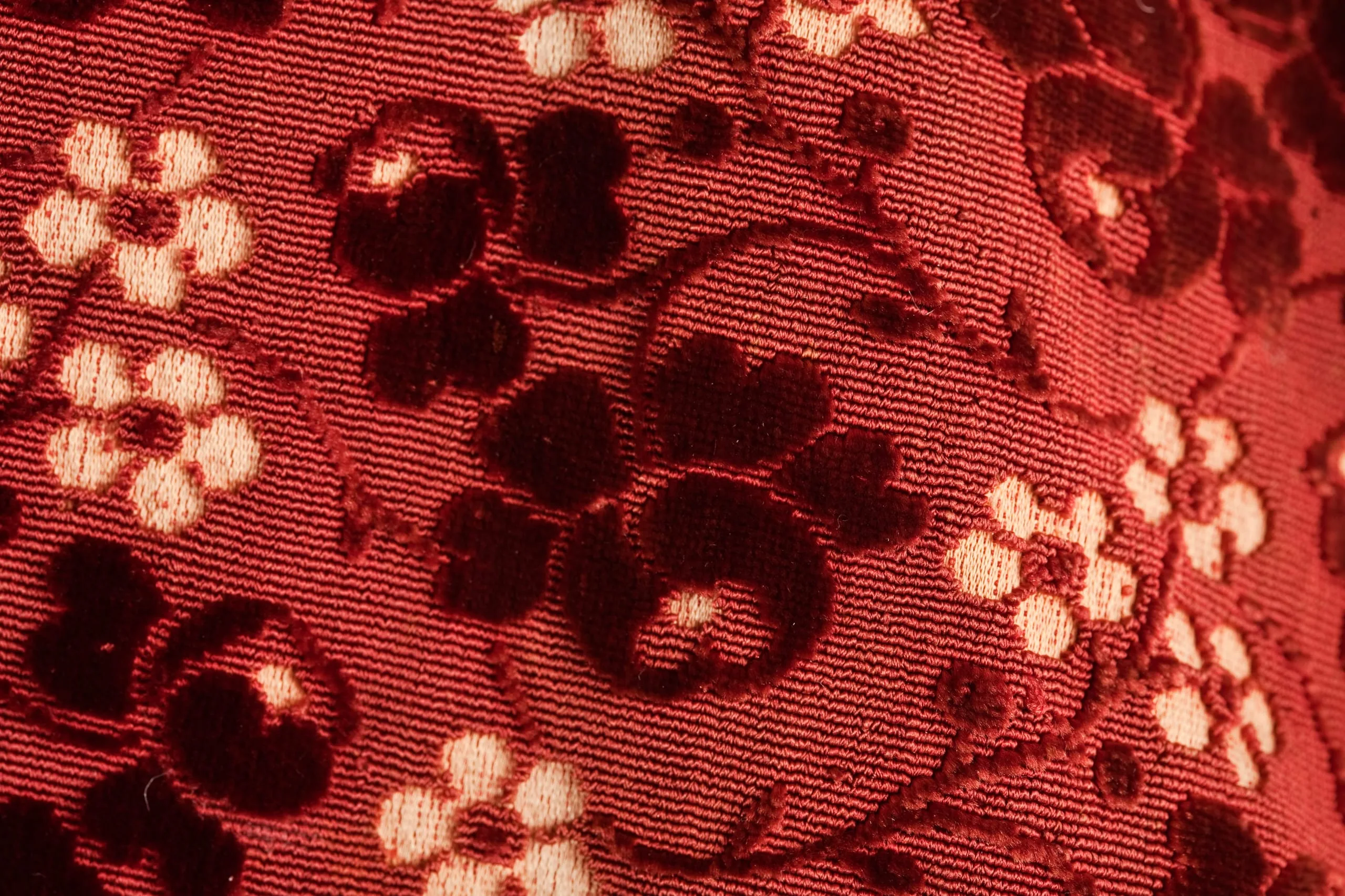 - Silk cut, uncut, and voided velvet (ciselé) on satin foundation