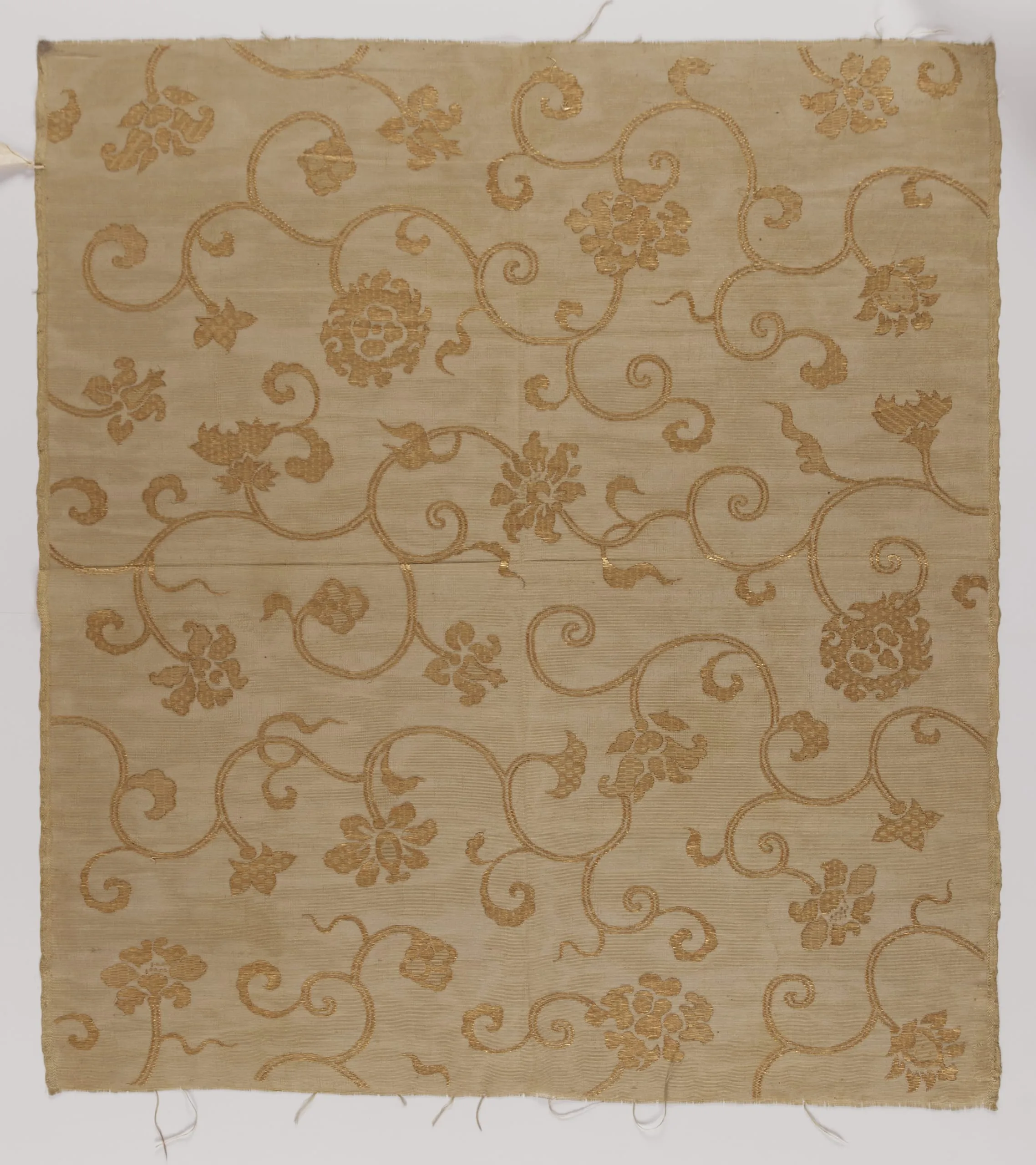 - Silk gauze with gilt paper discontinuous supplementary-weft patterning (brocade)