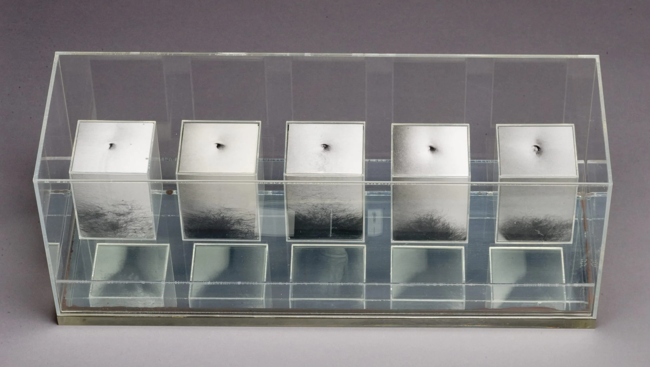 - Gelatin-silver print, plexi-glass boxes, mirror base