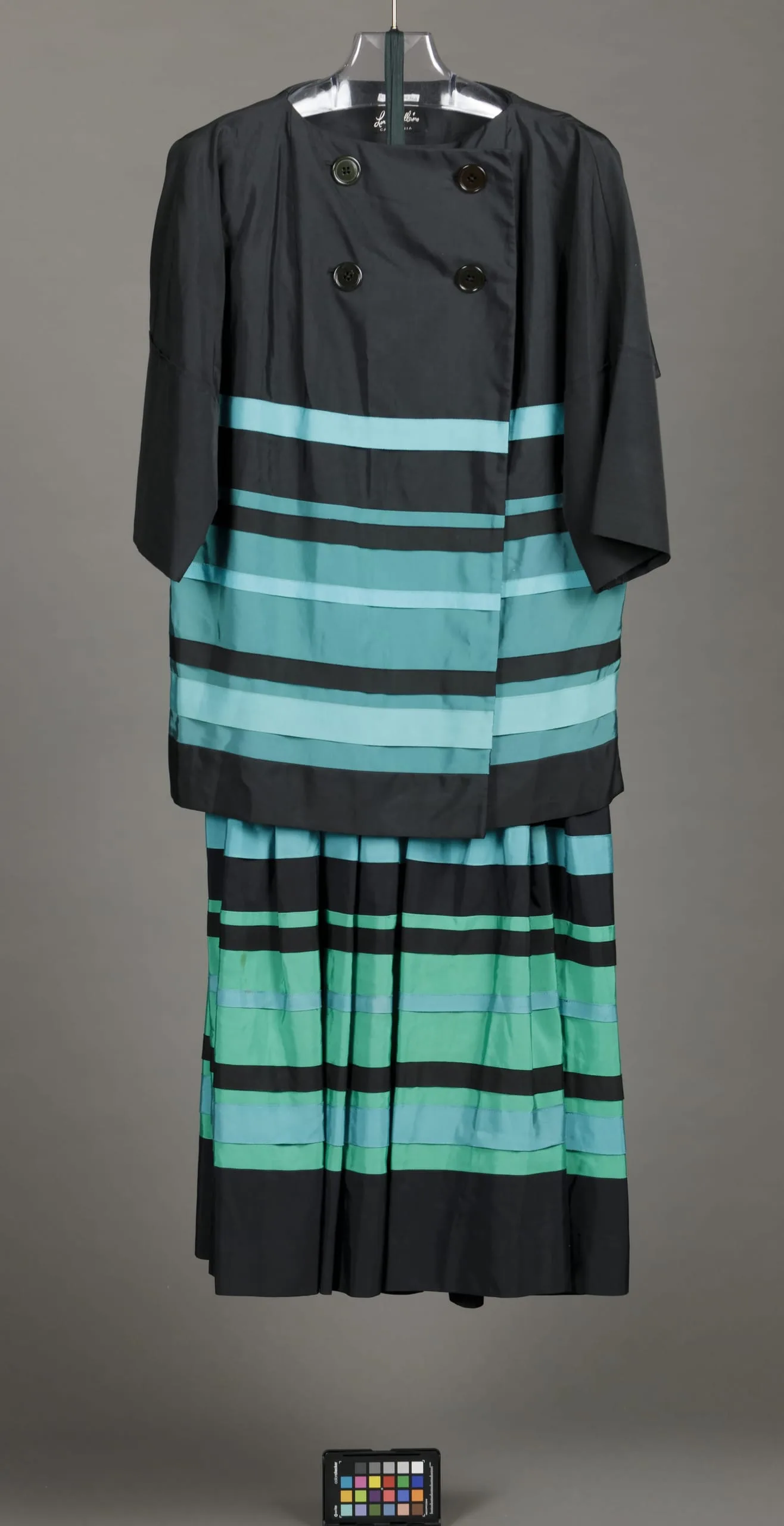 - Skirt: rayon faille with grosgrain ribbon trim; Jacket: rayon faille with grosgrain ribbon trim and plastic buttons.