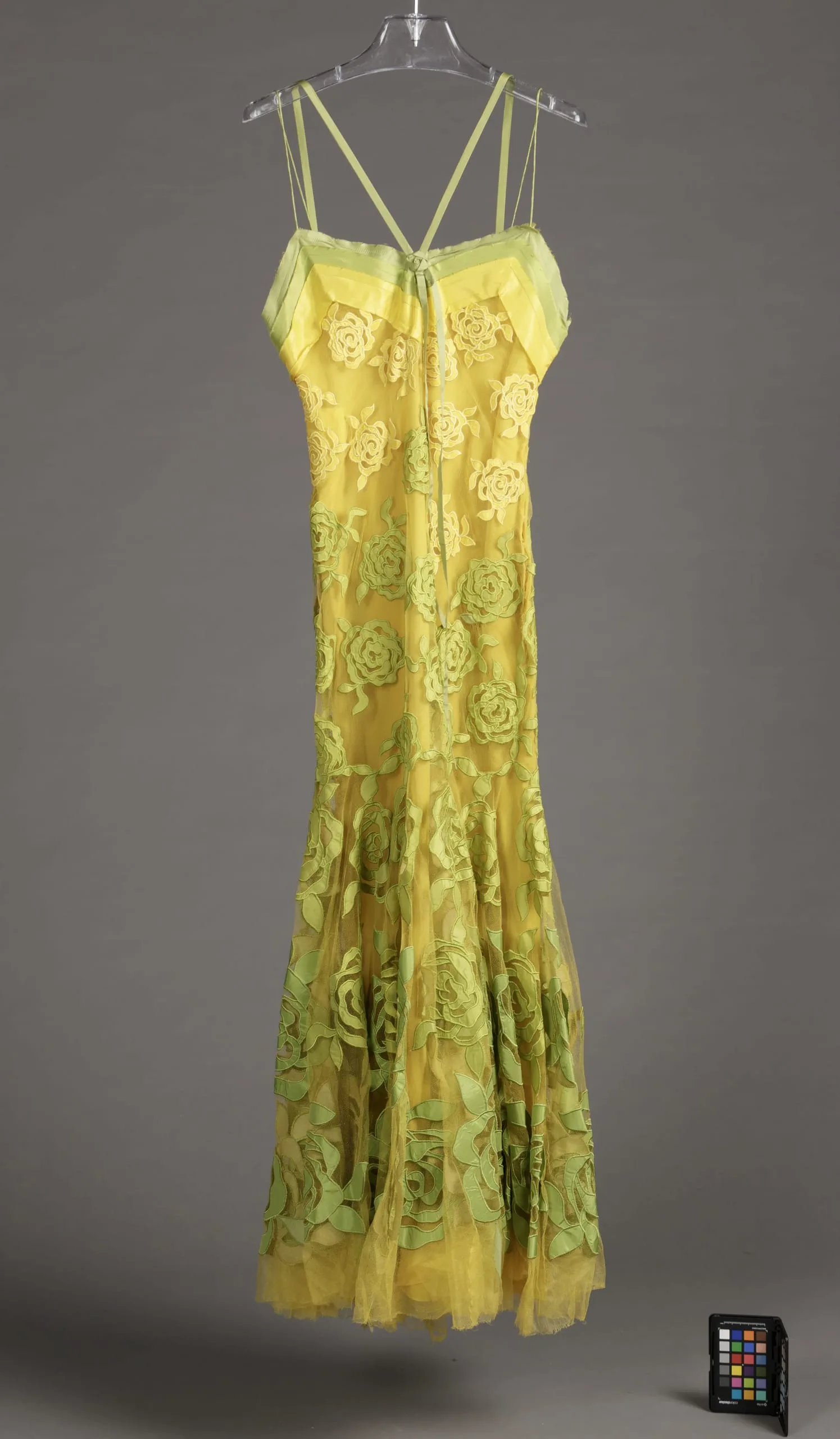 - Silk net, silk plain weave appliqué, silk plain weave (crepe)