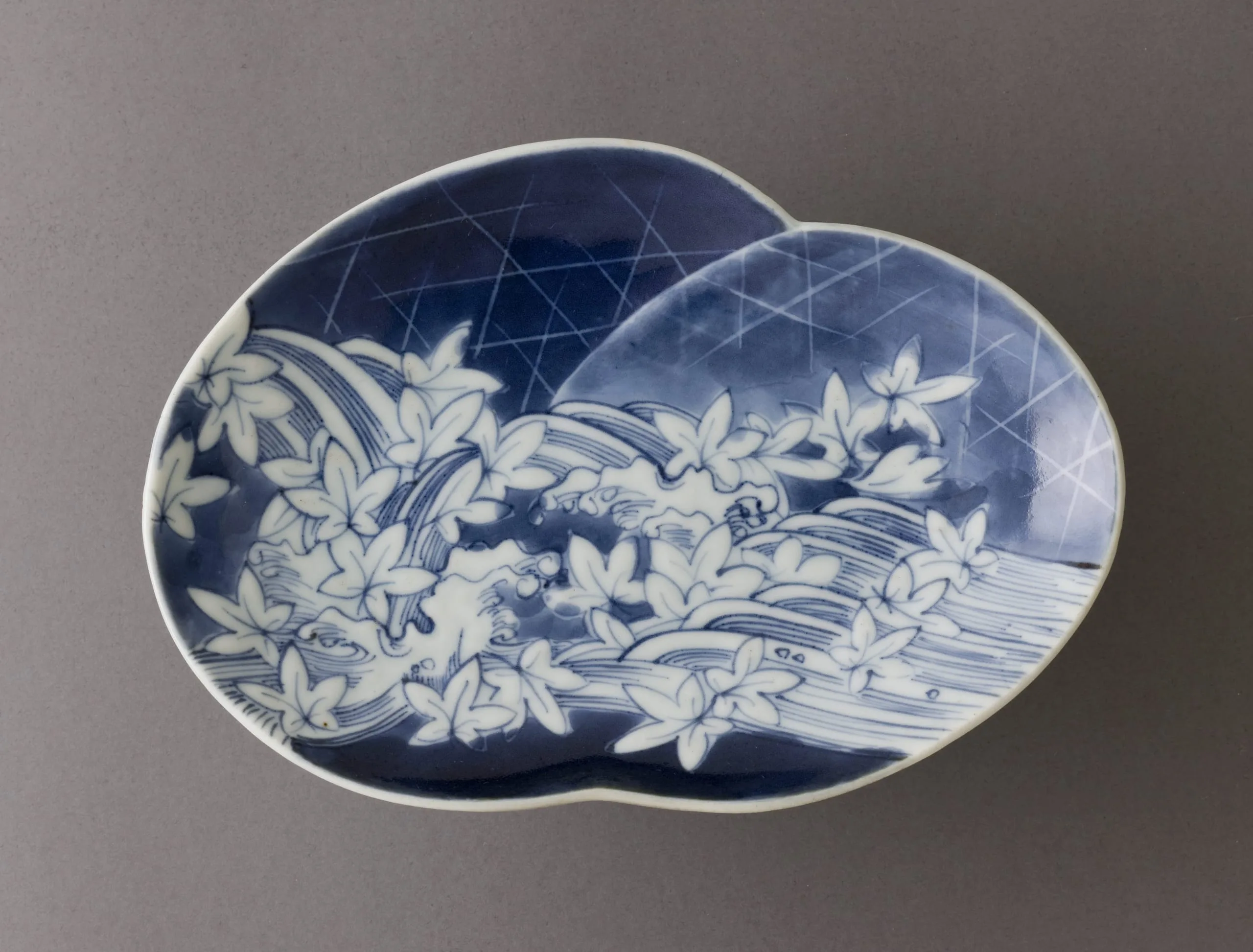 - Dish with Design of Tatsuta River with Maple Leaves