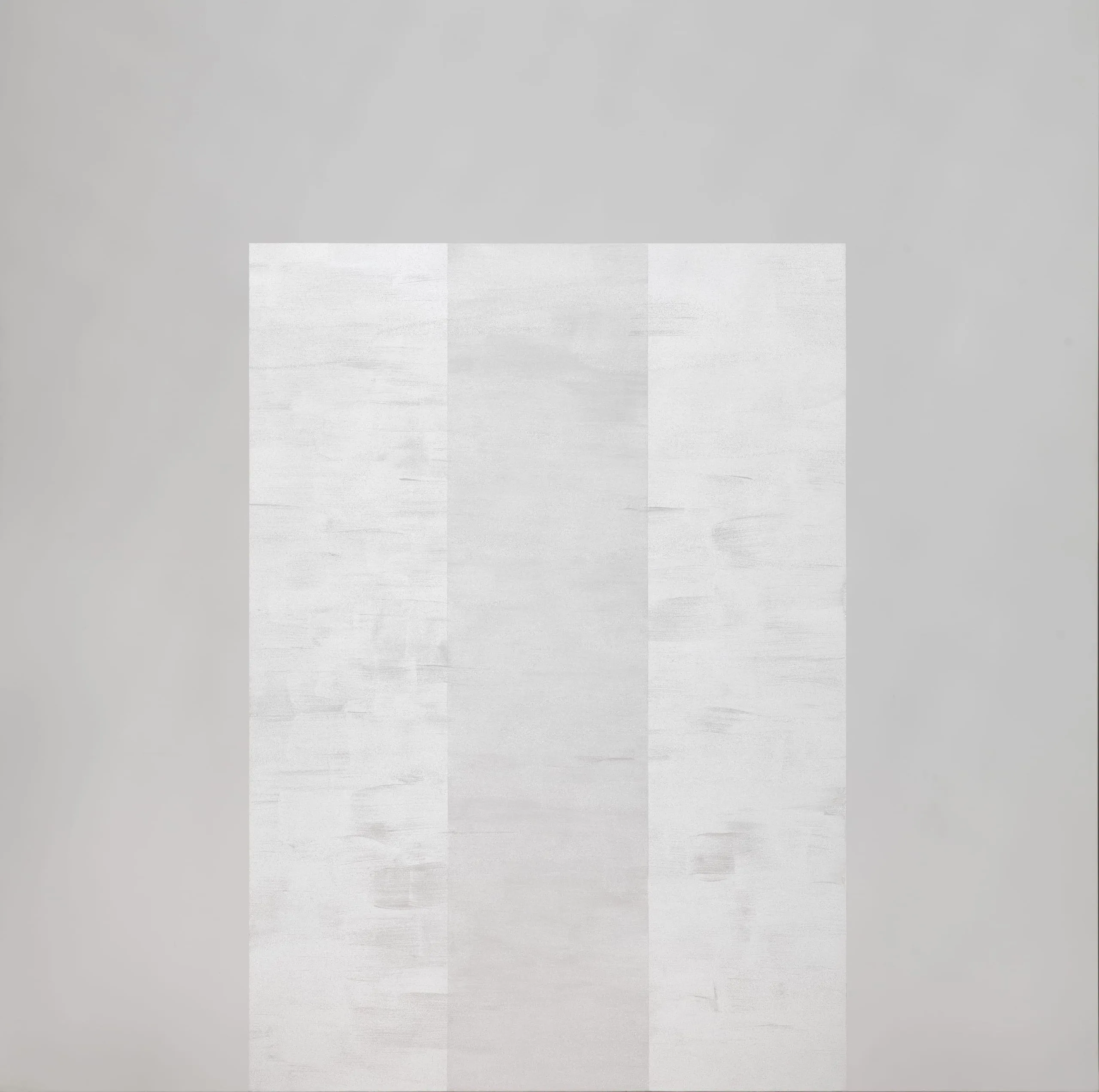 In these monochromatic compositions, forms are defined by subtle distinctions of the reflectivity and refractivity of Corse's media. Corse generally creates works in a series, exploring particular issues of form and perception. Untitled(1996) is from Corse's White Arch Inner Band series, in which a rectilinear arch frames a banded interior. The differences among the three bands and the arch itself are extremely nuanced and can be detected only as the viewer moves in relation to the painting.There is no "steady state" or optimal view for Untitled; rather, it exists as an ever-changing perceptual experience in which the viewer is an active participant.