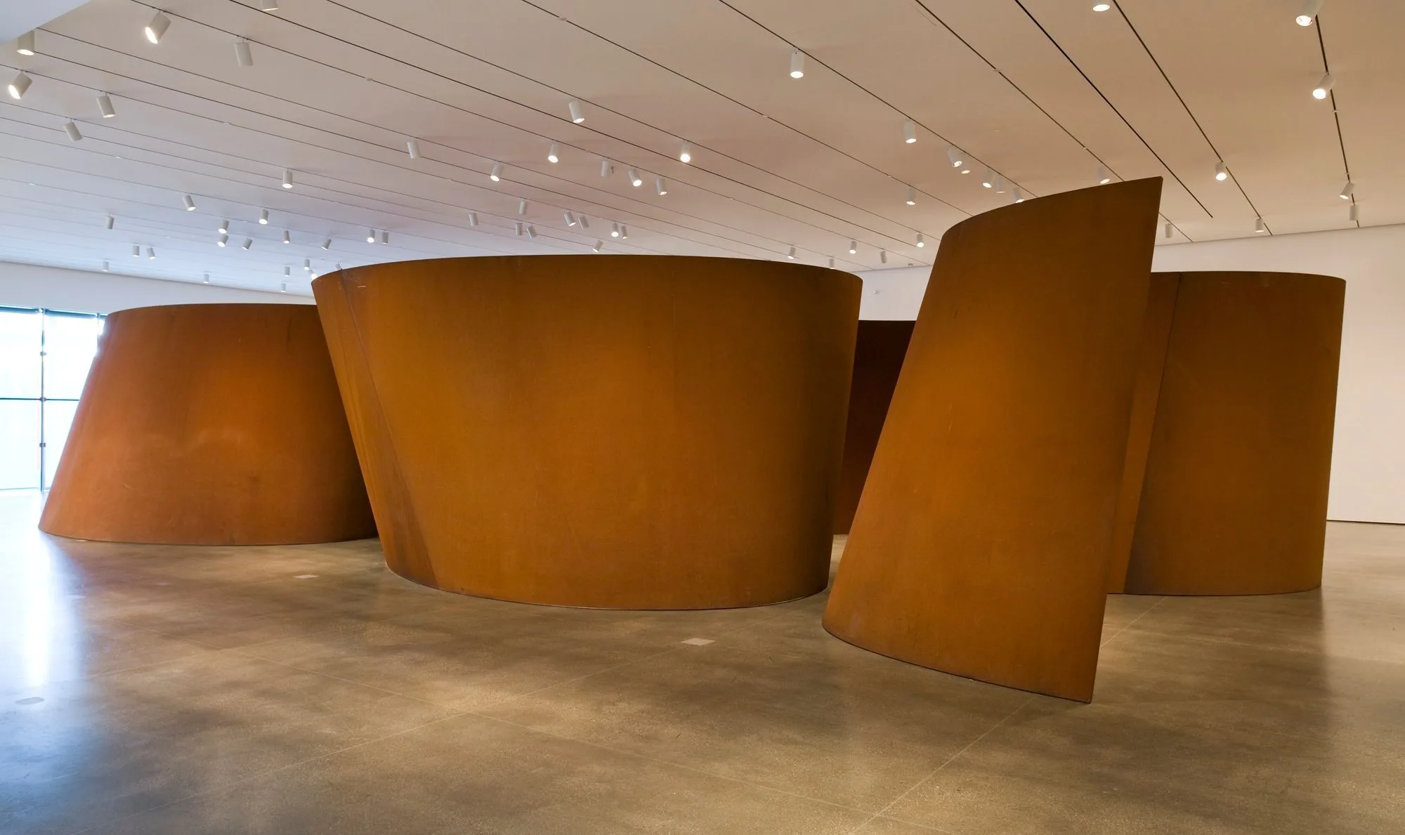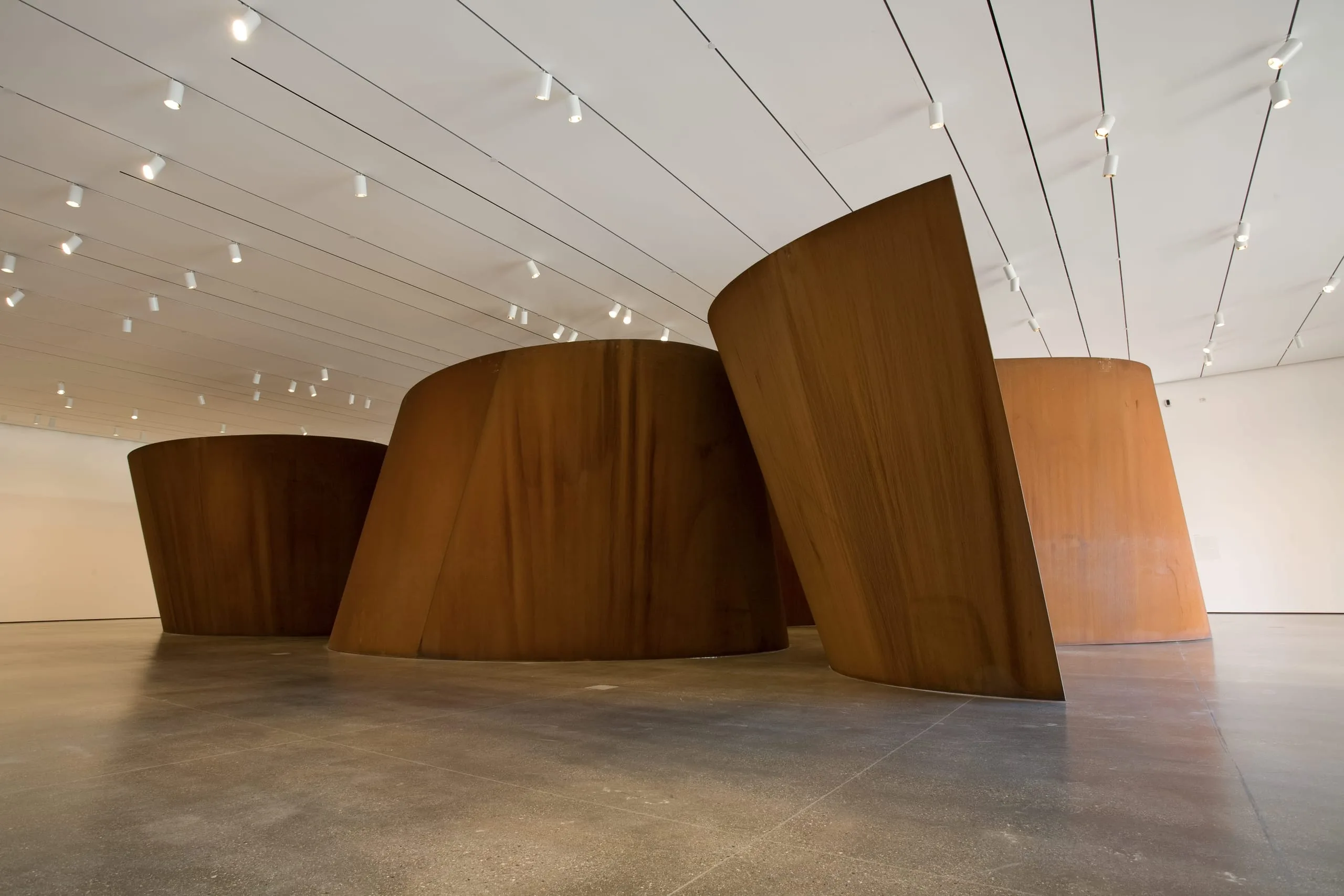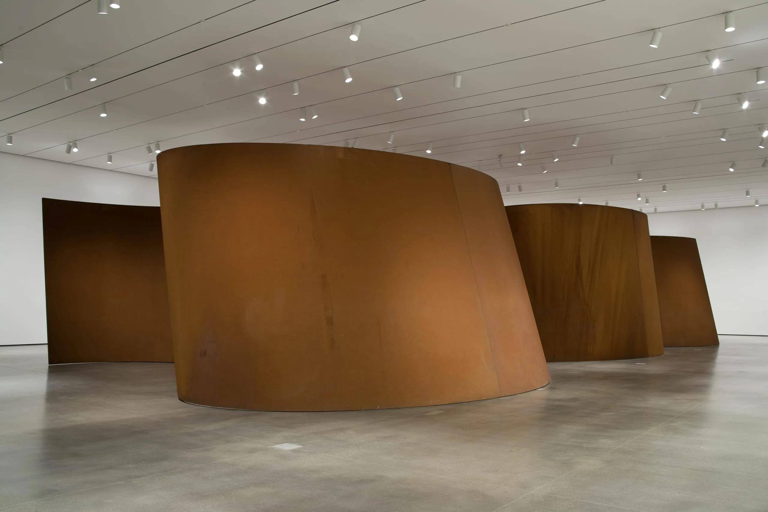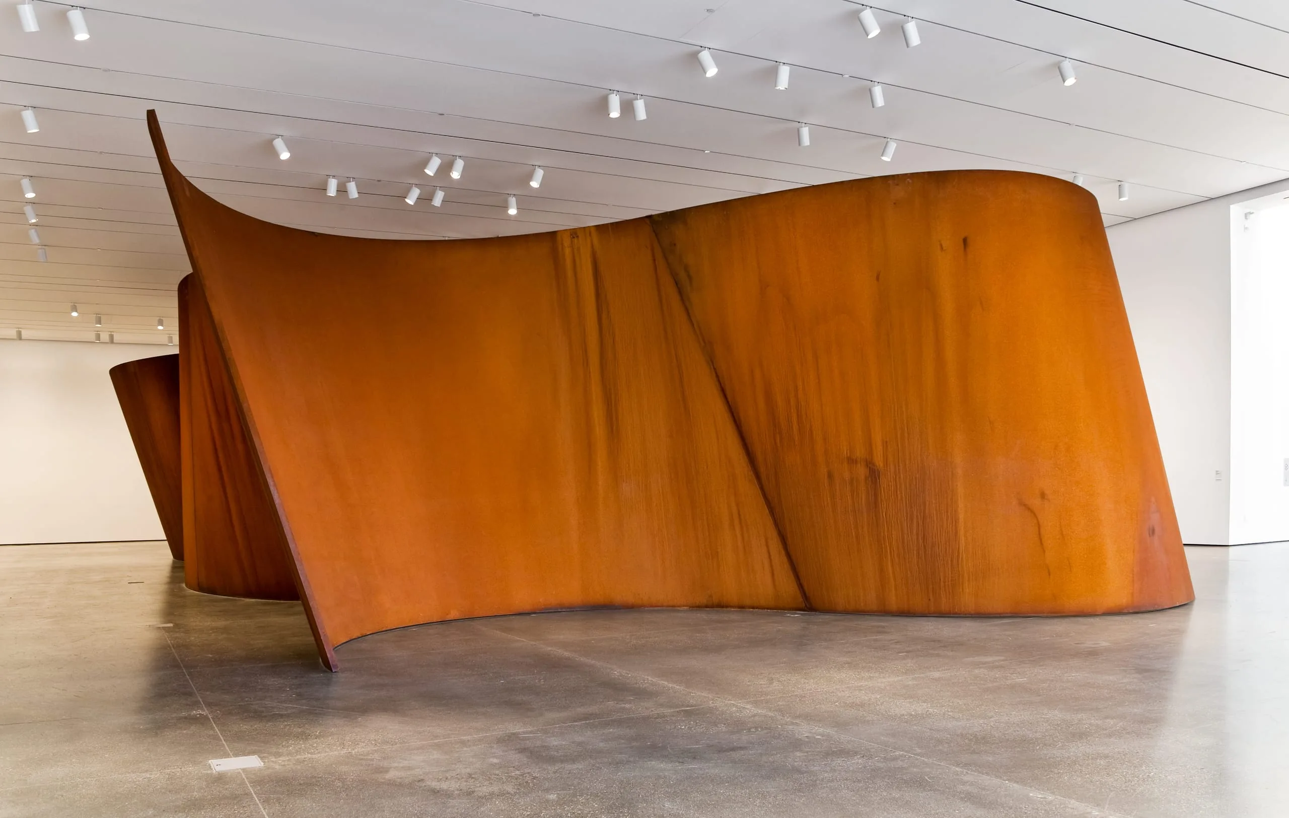 Serra's art has always forcefully asserted its materiality and evinced the process of its fabrication. Band is no exception. It is a daunting display of its own immensity, evoking the incomprehensible mechanics of handling some two-hundred tons of hot steel and the precision engineering that goes into shaping it, as well as the placing of its component parts, which requires tolerances down to a single millimeter. At twelve feet high and more than seventy feet long, the work is vast even by Serra's monumental standard. Careening aesthetically between bravado and elegance, Band bespeaks the ambitiousness of Serra's artistic vision and his commitment to its physical realization.