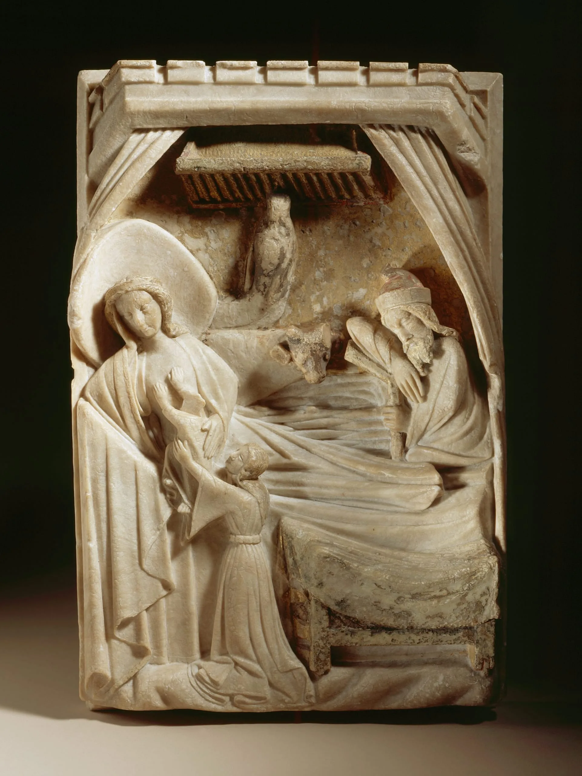 - Alabaster with traces of polychromy and gilding