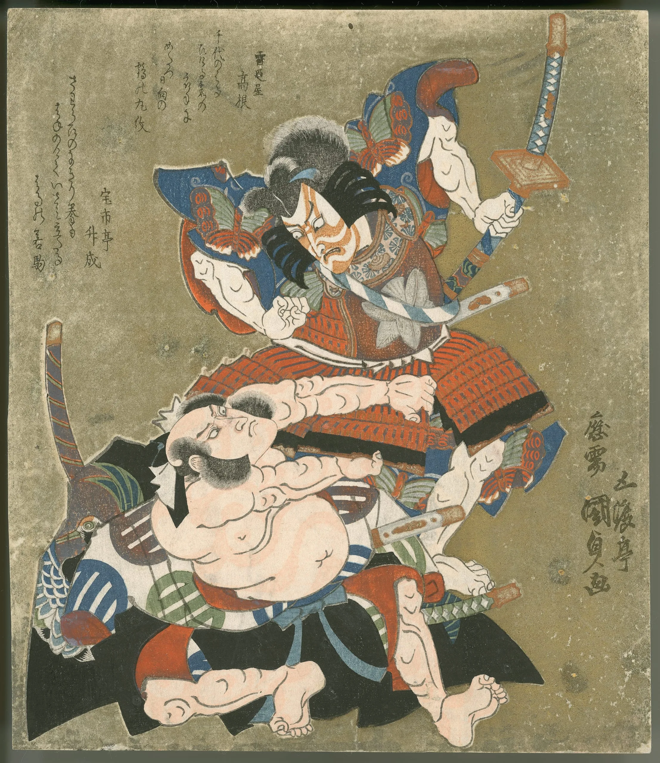 - Ichikawa Danjūrō VII as Soga no Gorō and Bandō Mitsugorō III as Kobayashi no Asahina in a Soga Play
