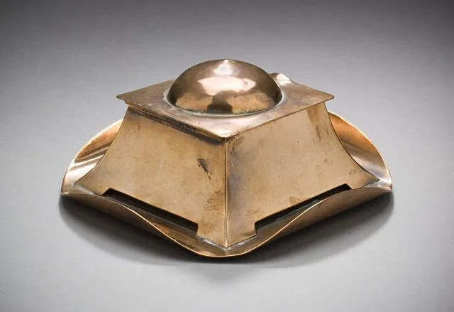 - a) Inkwell: 2 1/4 x 4 7/8 x 4 7/8 in. (5.72 x 12.38 x 12.38 cm); b) Glass insert: 1 1/4 x 1 3/4 in. (3.18 x 4.45 cm)