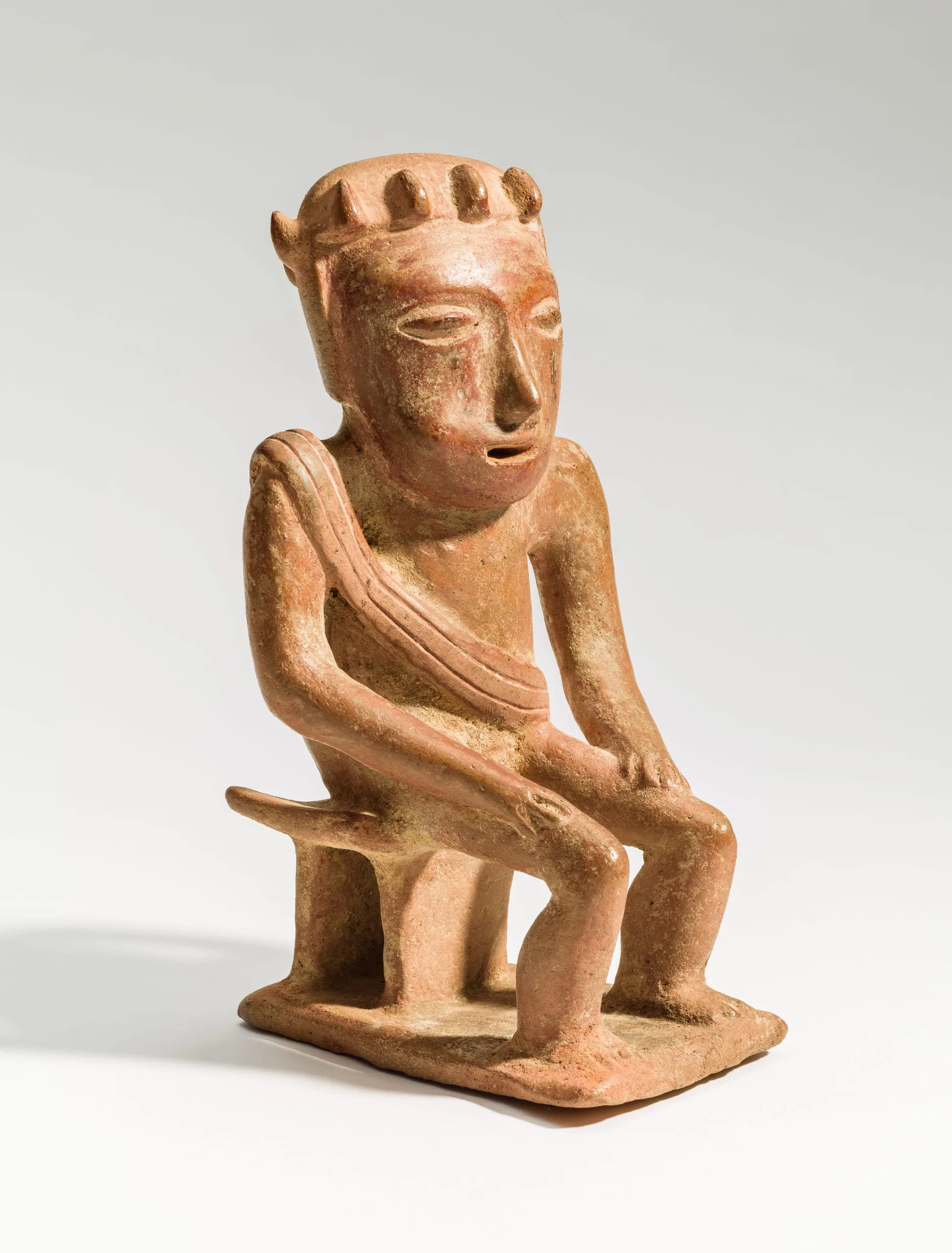 Seated coquero (coca-chewing man) with headdress