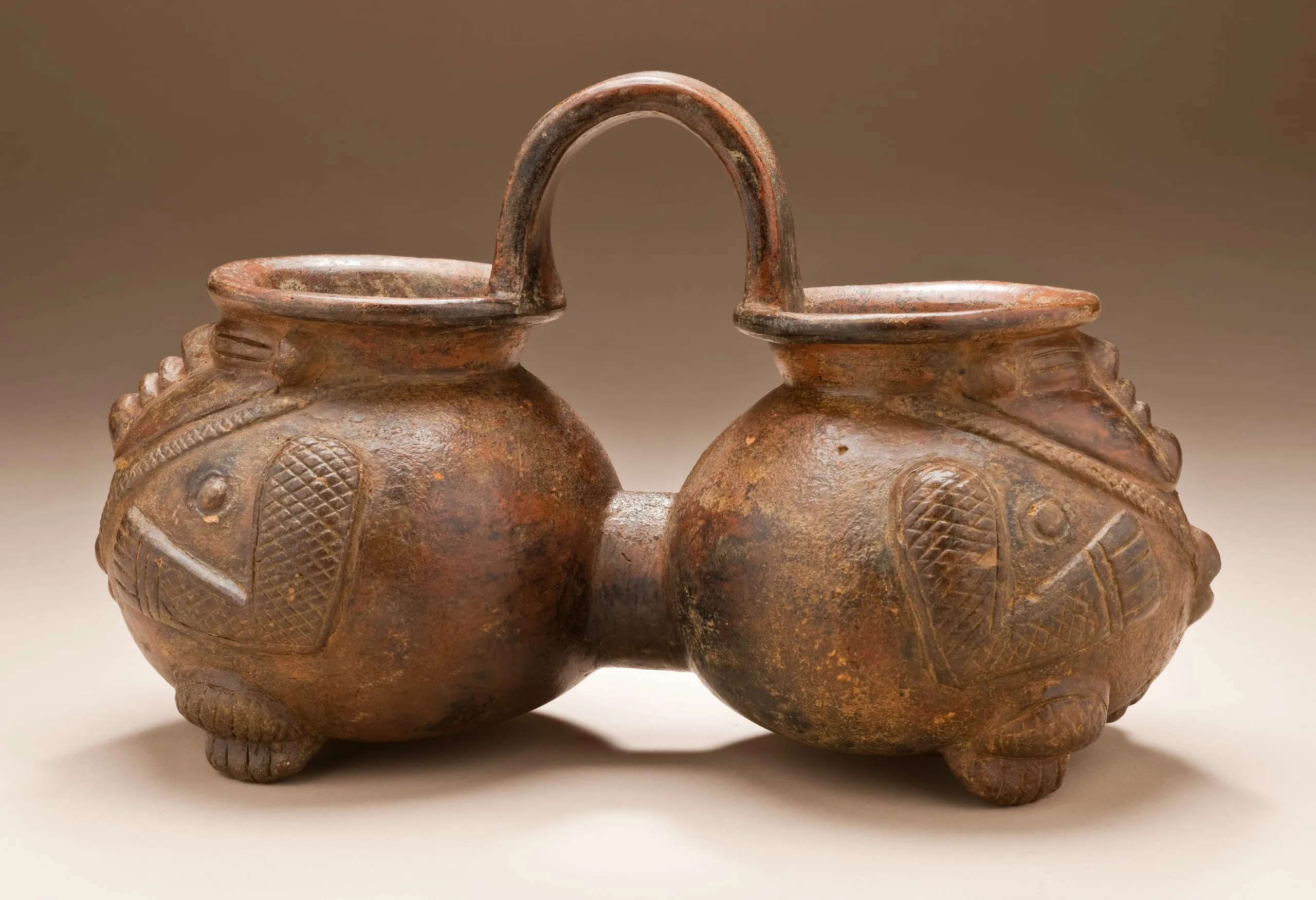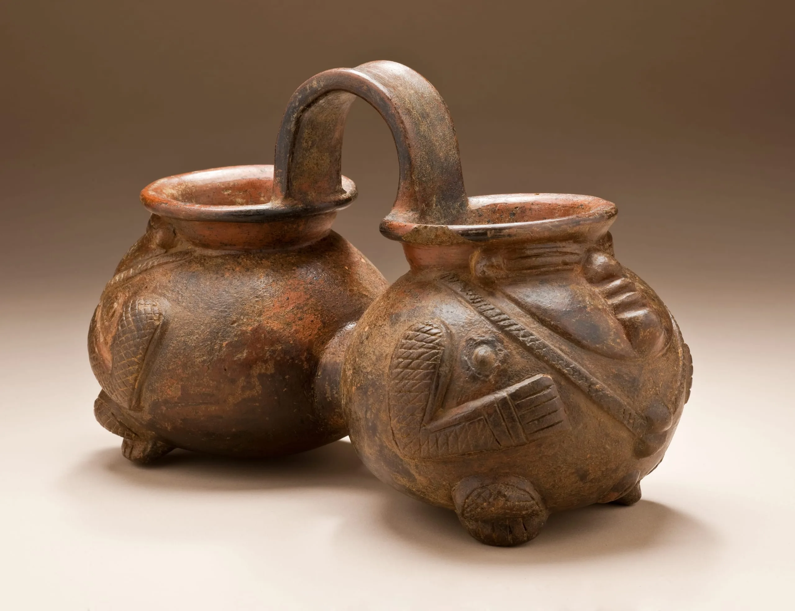 - Double-chambered Figured Vessel with Bridge Handle
