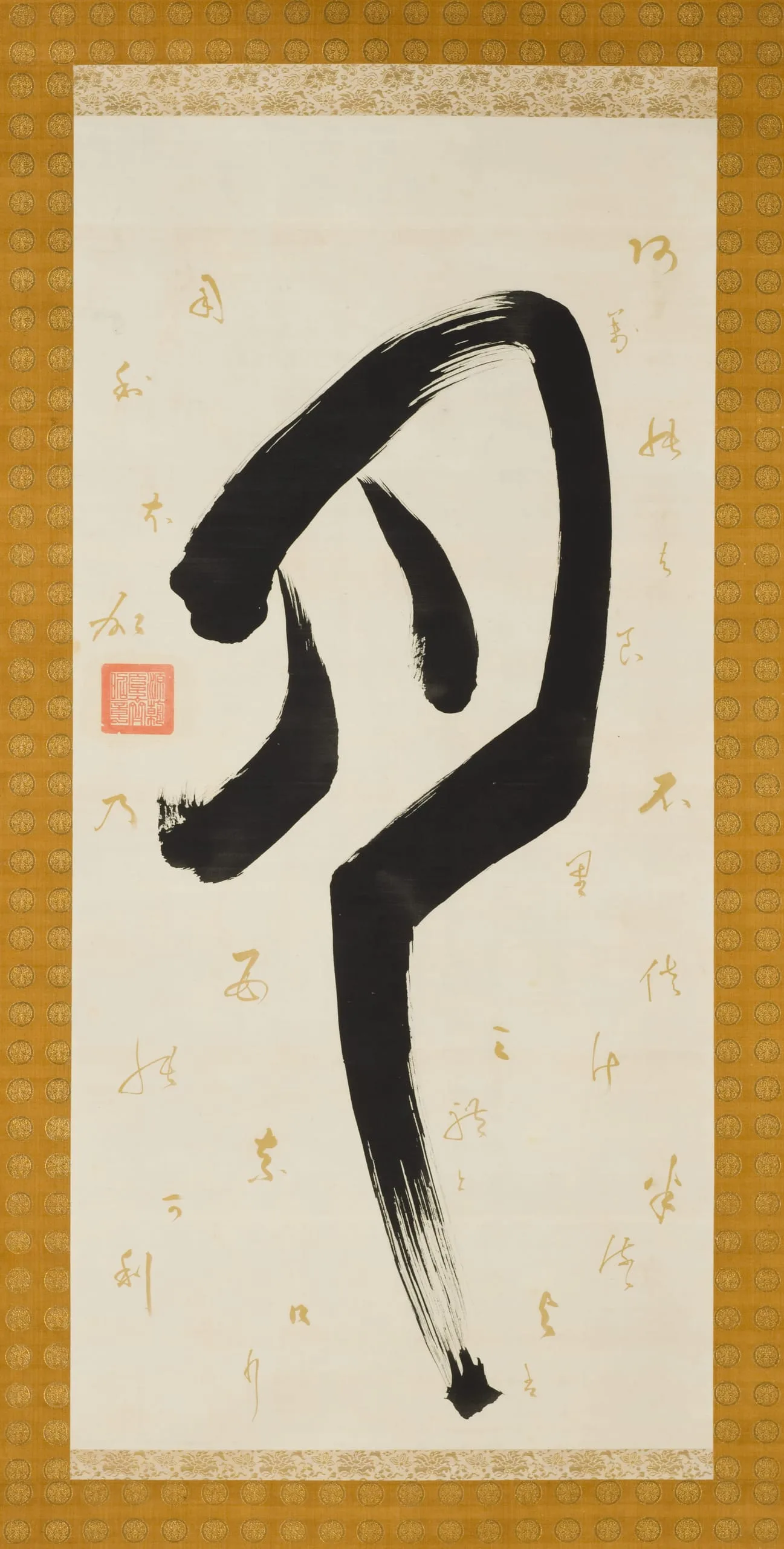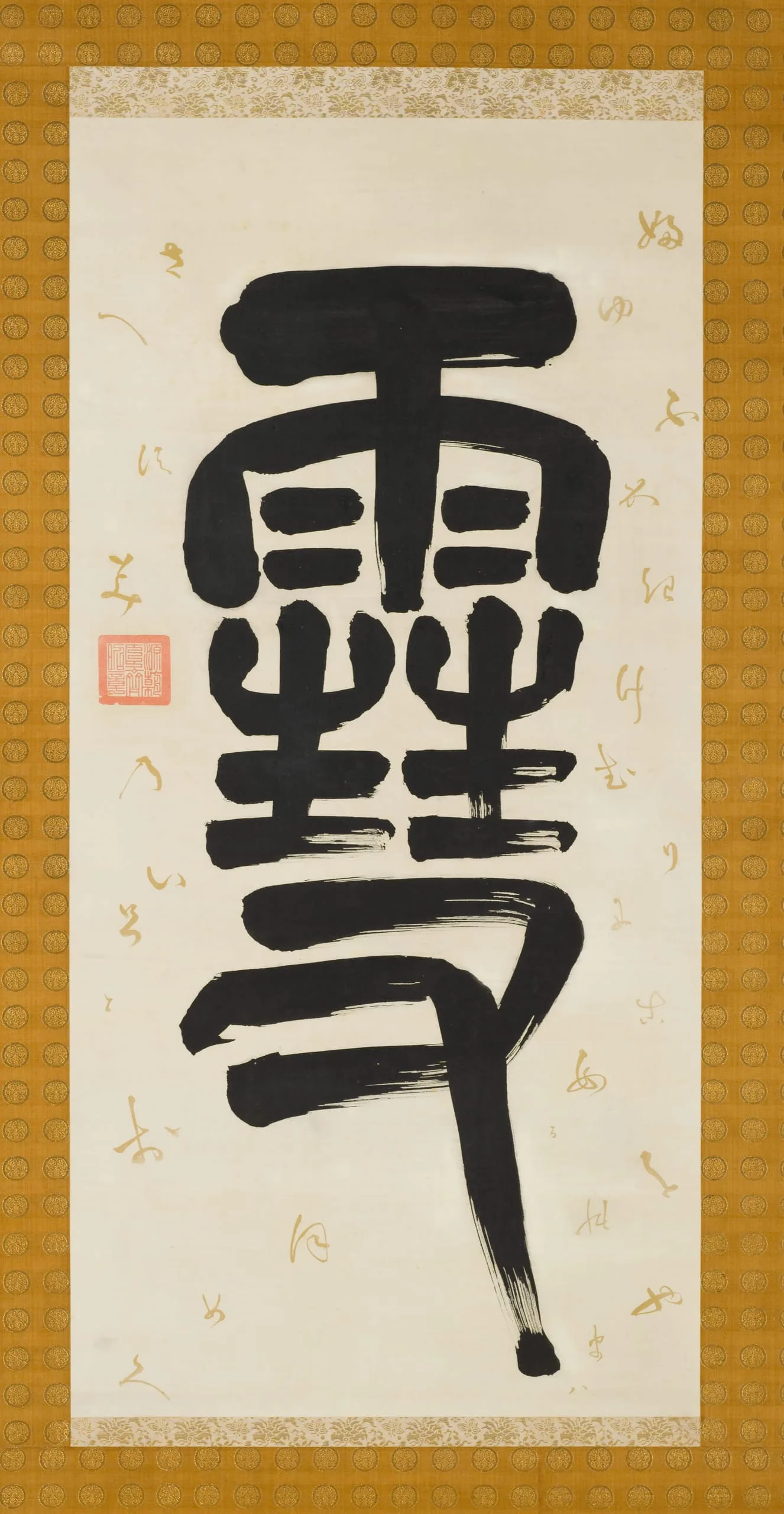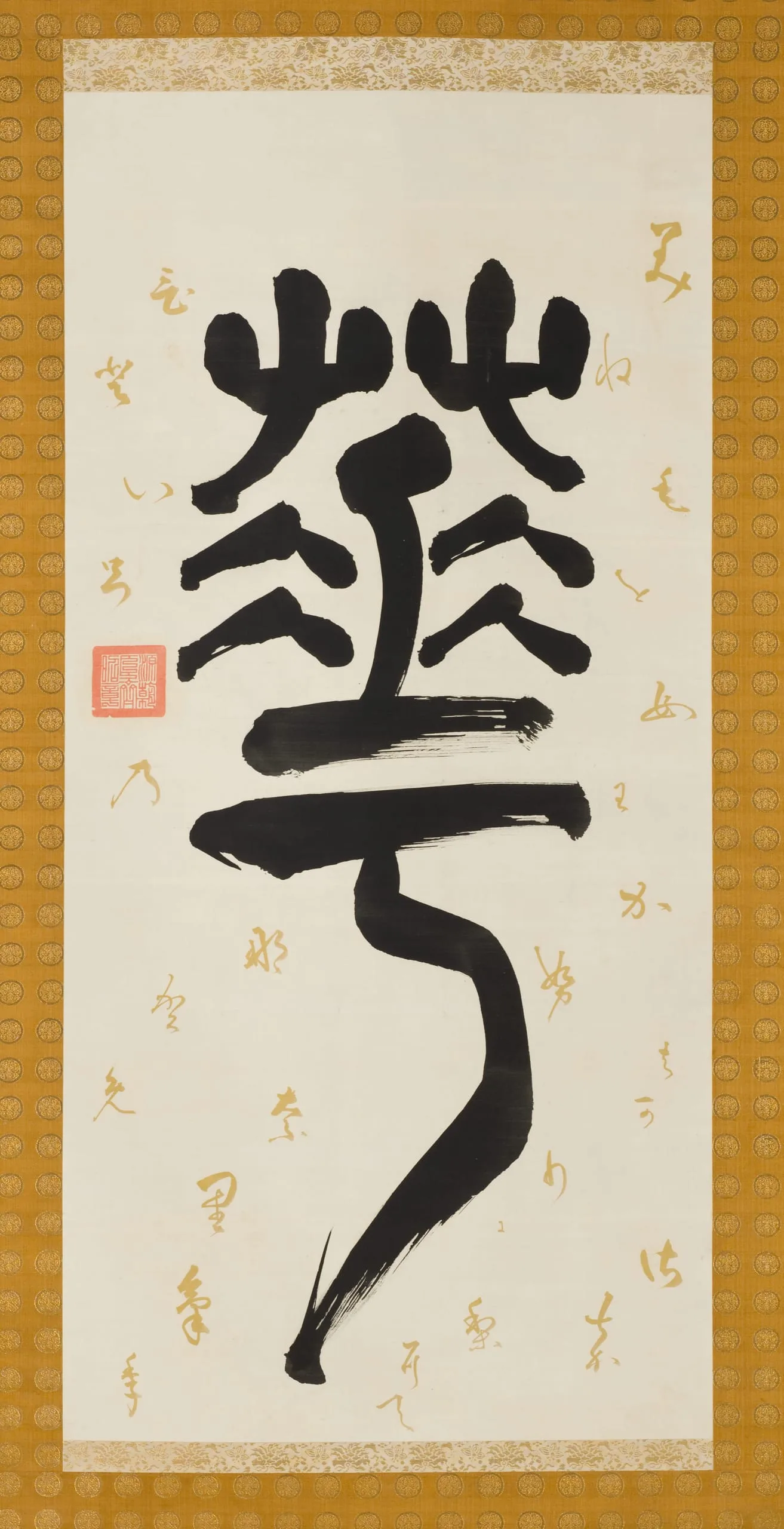 - Triptych of hanging scrolls; ink and gold pigment on paper