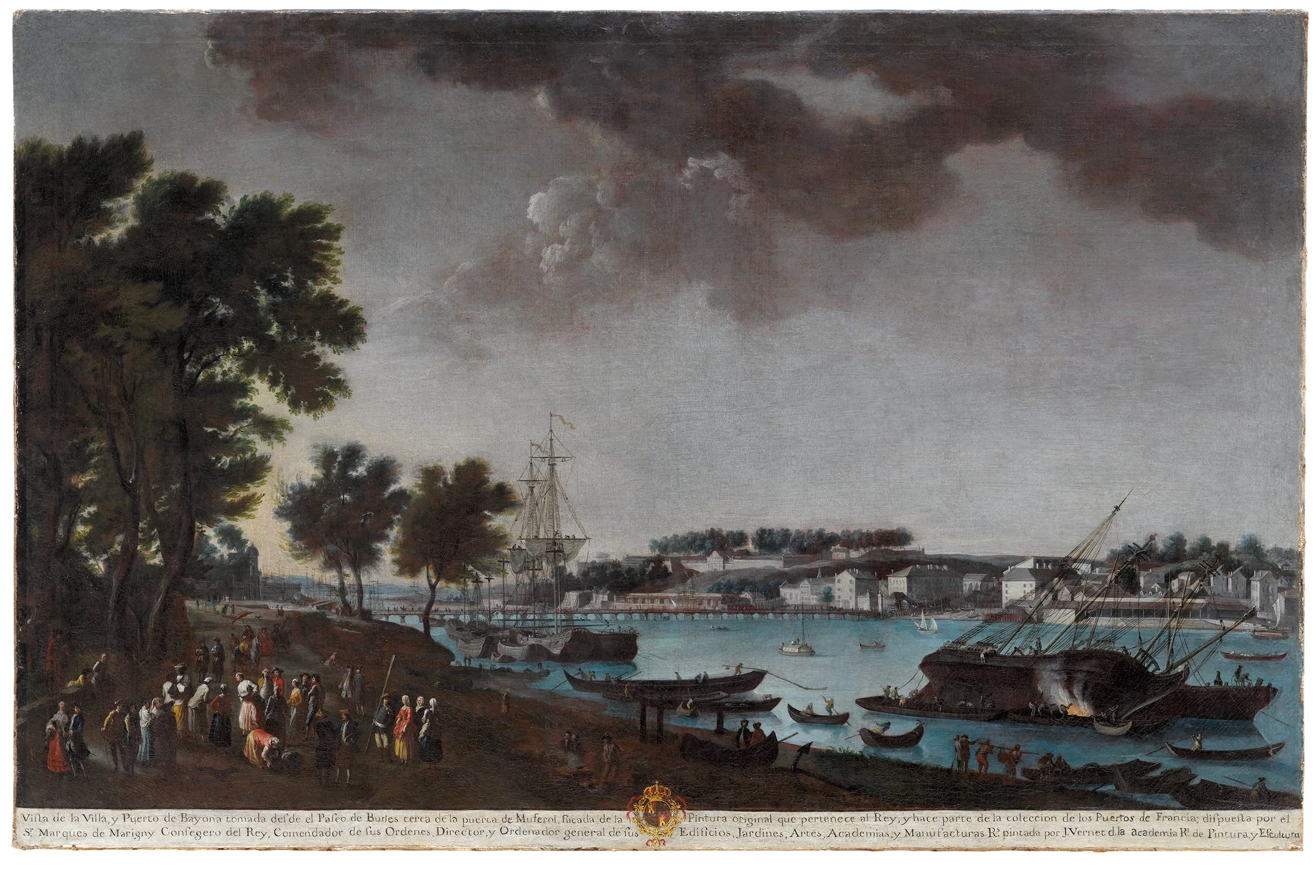 View of the Town and Port of Bayonne from the Pathways of Boufflers (From the series Ports of France) (Vista de la villa y puerto de Bayona tomada desde el paseo de Boufflers [De la serie Puertos de Francia])