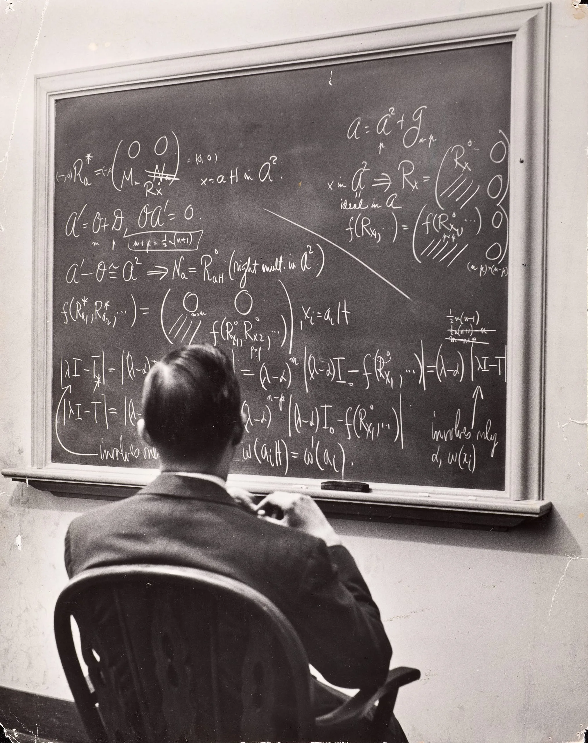 - Richard Schafer, expert in non-associative algebra, studying complicated formula at the Institute for Advanced Study, Princeton, NJ, 1947