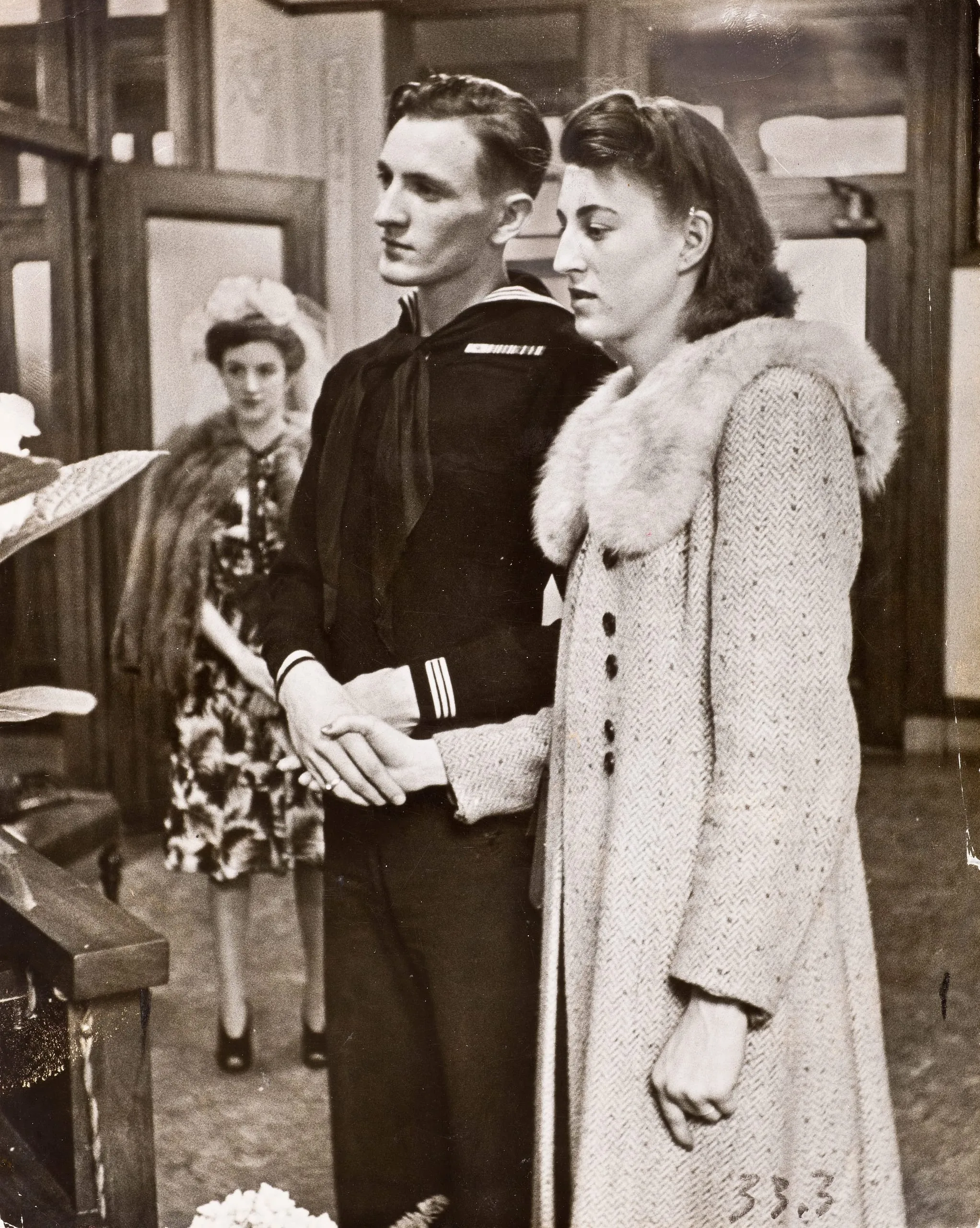 - Yeoman Frederick Whitham wedding bride Pauline Hatfield in civil ceremony, Maine, 1943