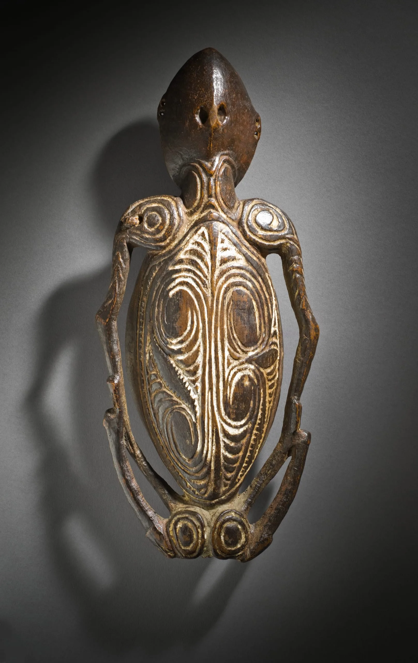 The work the artists put into the carving of this dish extends into the careful hanging storage of the dish when not in use, as well as the display of such dishes even when damaged. This reverence of a household object led scholars to believe that it represents a totemic ancestor carving. The important ceremonies requiring the mixing of paint concentrates power in the objects that facilitate these ceremonies. It was believed that the power of the spirit presence could transfer to the participants as the spirits entered first the dish, then the pigments, and ultimately the wearer of the paint.