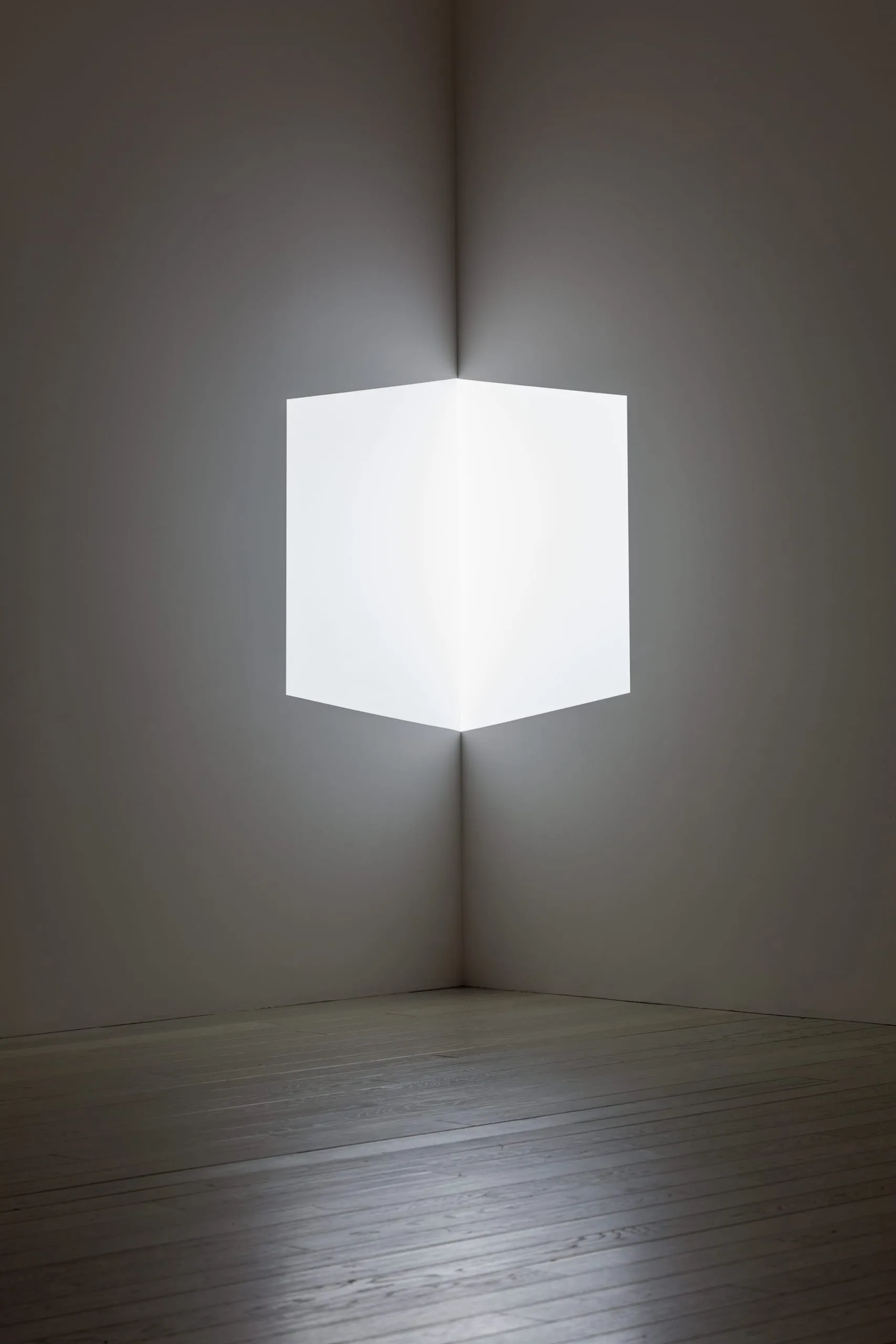 In the fall of 1966, just out of graduate school, Turrell developed a series of so-called cross-corner projections, consisting of a rectangle projected into a corner that from a distance appears to be a floating cube. When the viewer moves from side to side, the cube seems to reveal itself in perspective; it is only as the viewer advances toward the corner that the image dissolves to the point of being understood literally as light on the wall. Afrum (White) is the second of Turrell's cross-corner pieces and the first for which he drew on technological advances in light projection developed for the film industry. Afrum (White) was previously owned by Ed Wortz, a scientist at the Torrance-based aerospace company Garrett Corporation, with whom Turrell and Robert Irwin worked from 1968-71 on LACMA's pioneering Art and Technology exhibition.