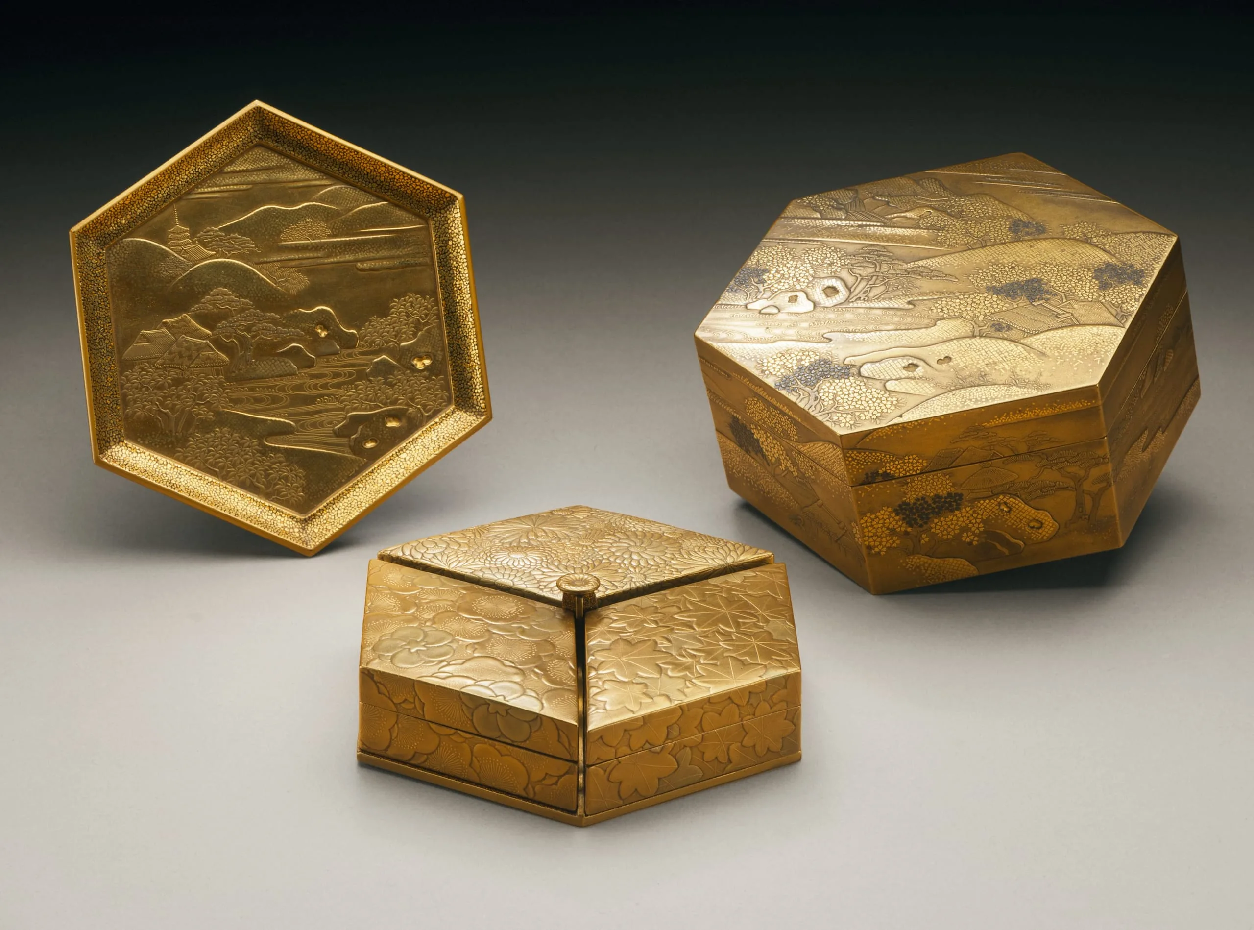 Hexagonal Incense Storage Box with Landscape and River Design