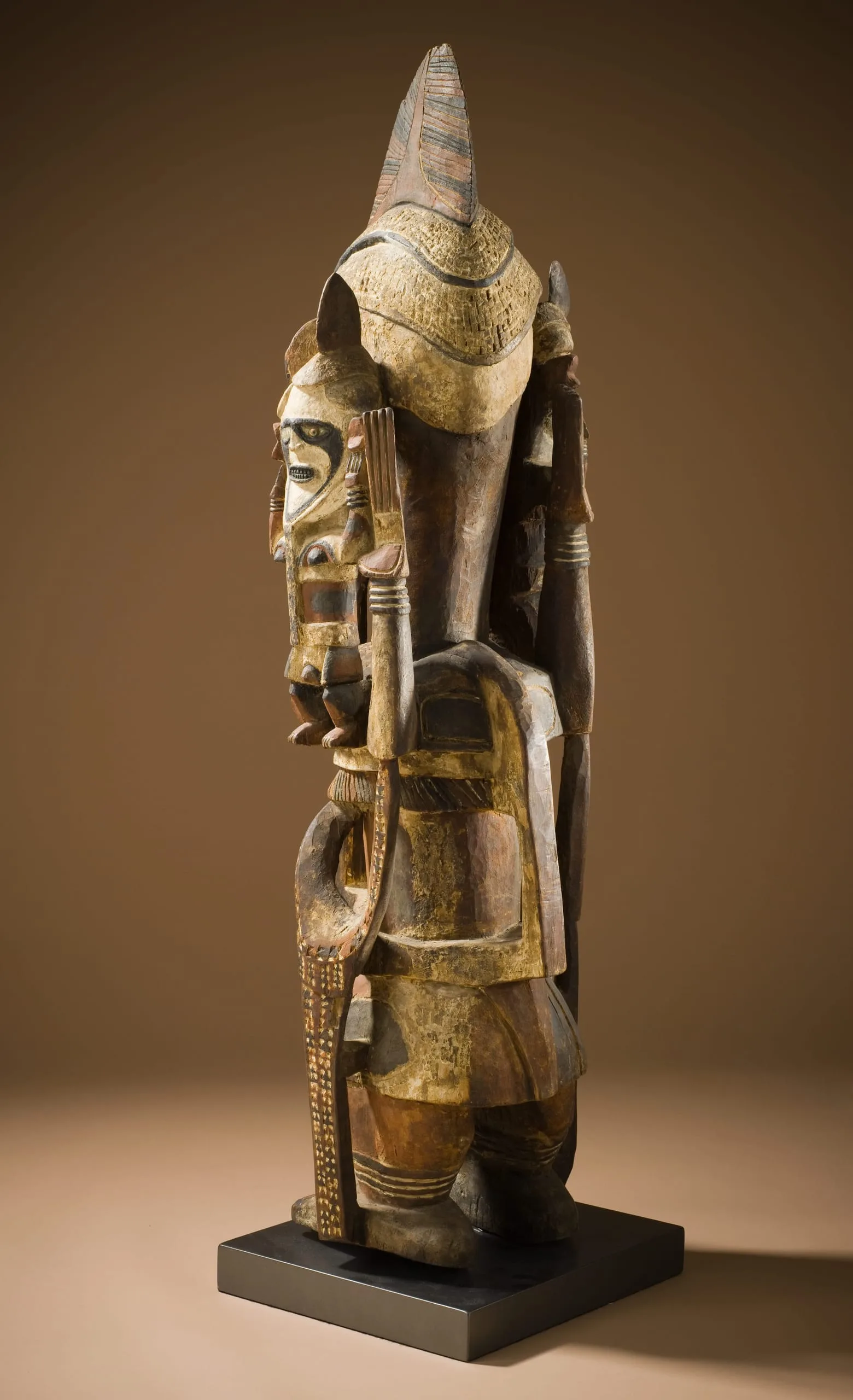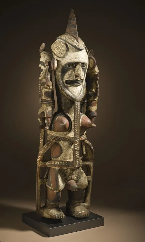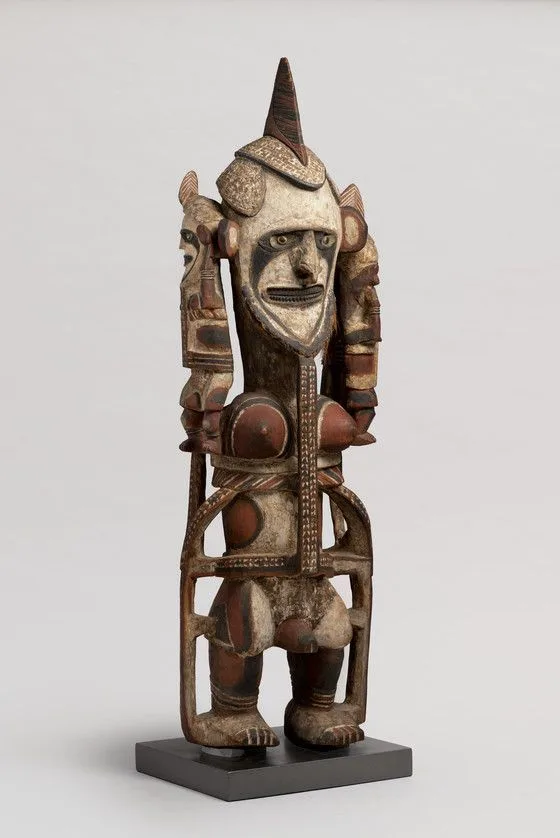 This figure was used during complex funeral ceremonies that included dances and feasts of pigs that had been brought for the occasion. Huts were constructed specifically for the display of the newly carved uli, along with older uli that were repainted for reuse. Painted skulls of the deceased were ritually presented to the uli sculptures, which represented ancestral power.
