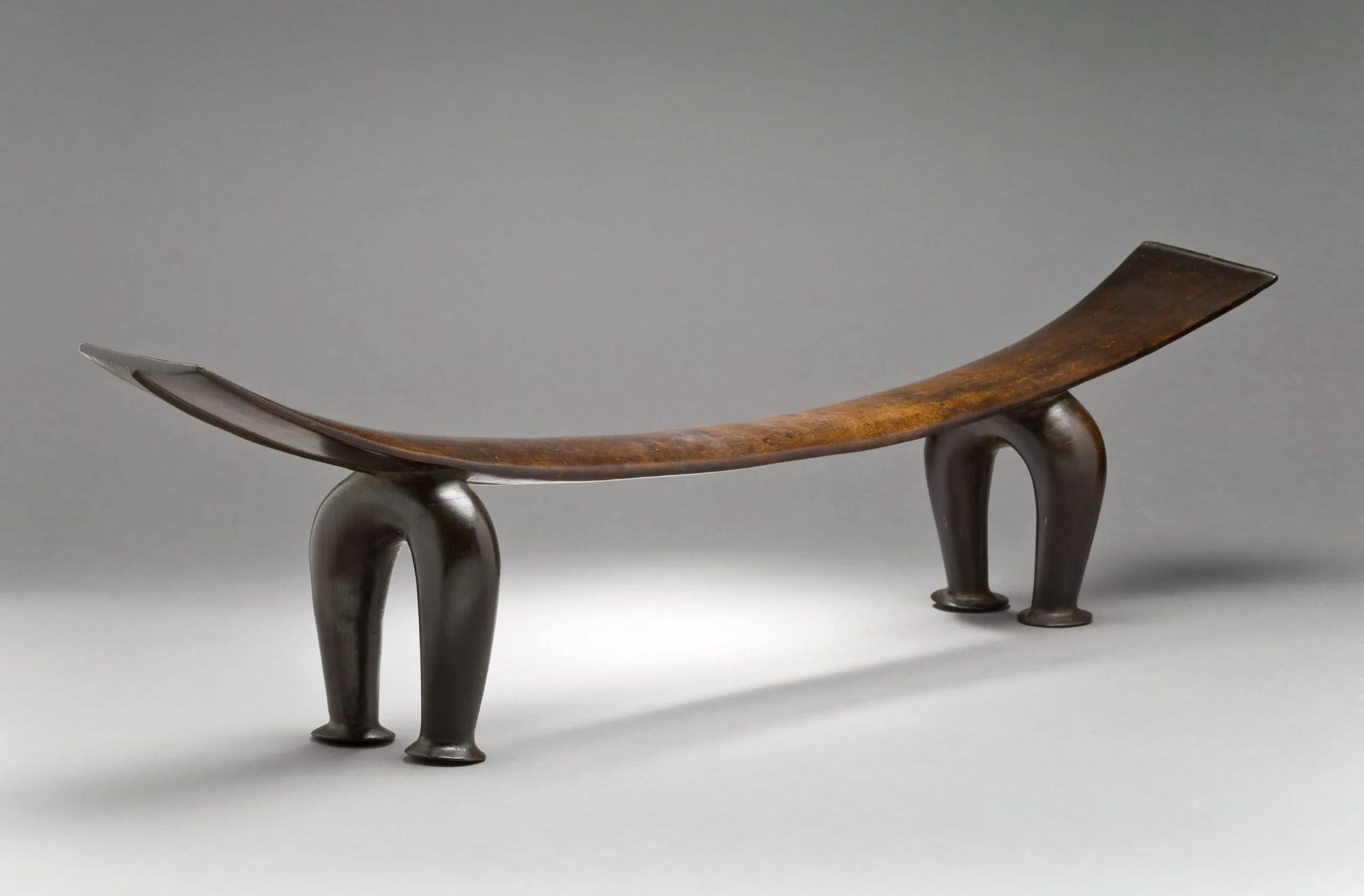 Neckrests, which were used to keep complex hairstyles intact, were kept private and sacred to the owner because of their contact with the head, considered by Tongans to be a sacred region. Simply and elegantly carved from a single piece of wood, neckrests of this type were gently curved central pieces upon which to rest. A ridge is carved on the underside, and arching pairs of legs taper down to flat and circular feet.