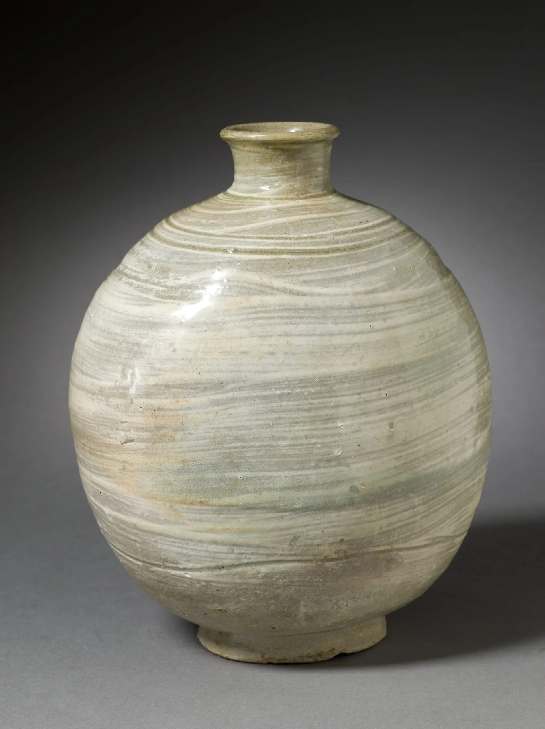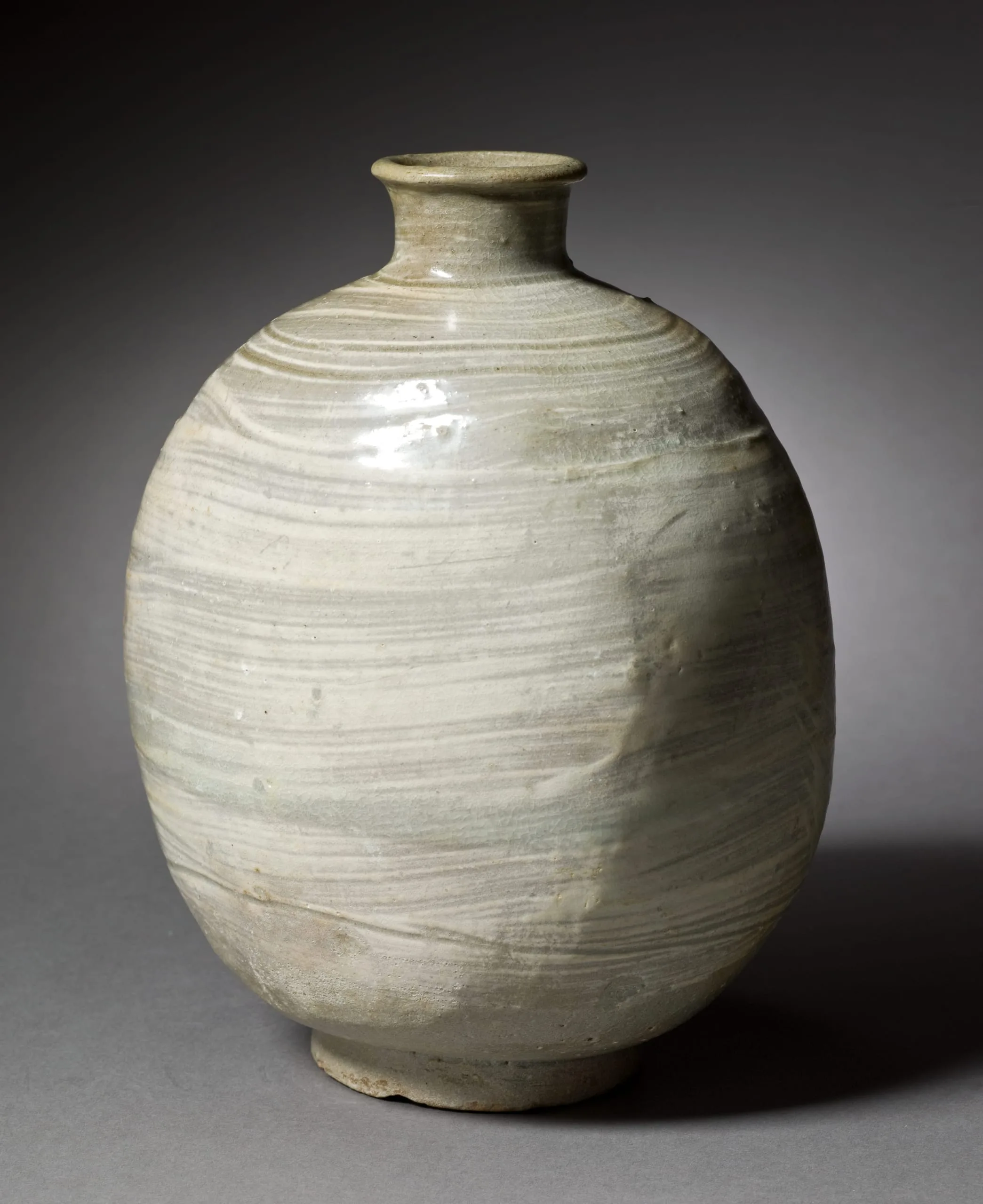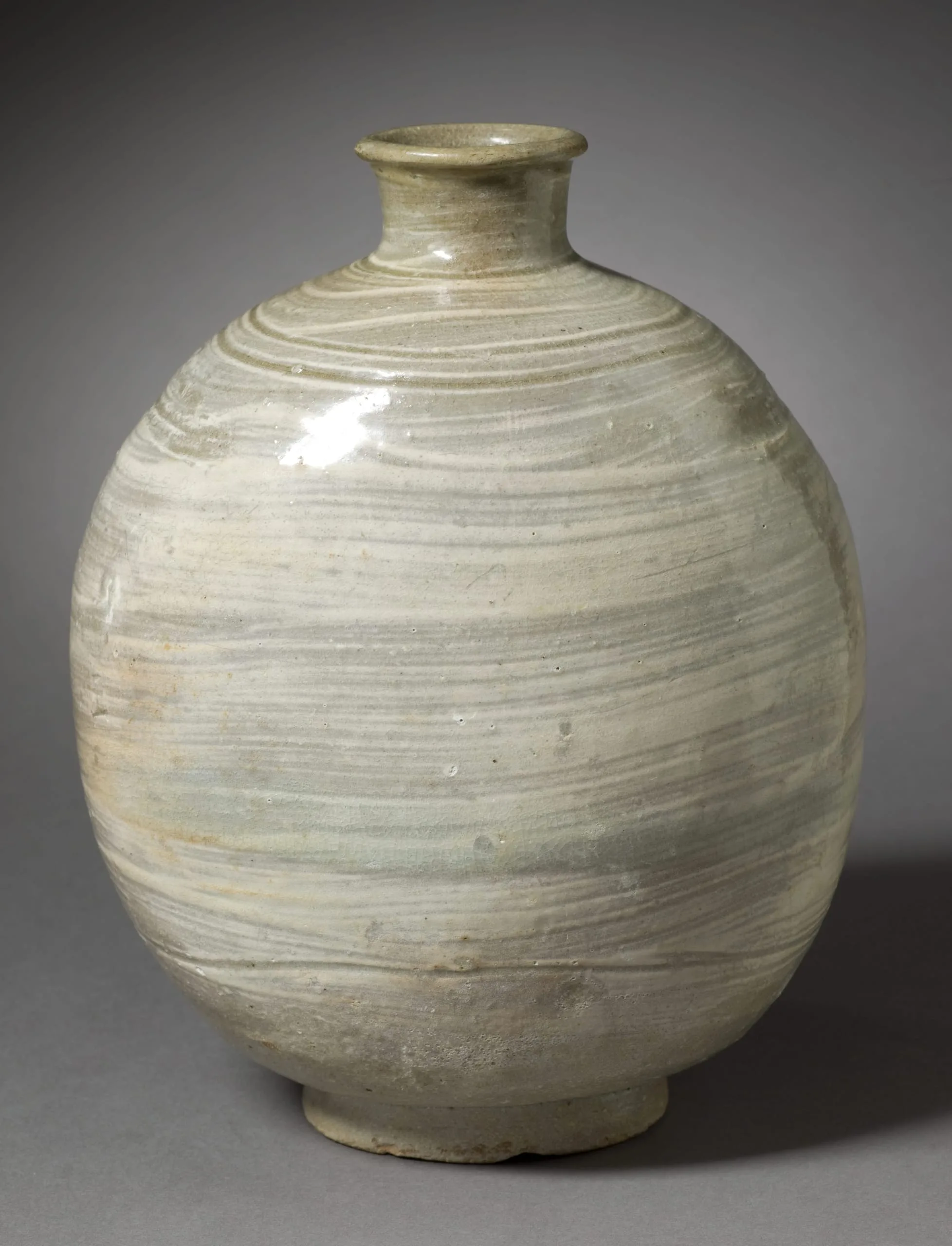 Buncheong (literally meaning "powdered blue and green") is a type of ceramic ware originally produced in Korea and became the motivation of ceramic development in Japan in the 16th century. The clay and glaze of buncheong ware related to the celadon wares of the Goryeo dynasty (918-1392). However, the decorative motifs and forms were notably different and reflect the styles and tastes of the later Joseon period (1392-1910). Buncheong ware represents an important bridge between the artistic styles, technologies, and aesthetic tastes of the two dynasties. Used and appreciated more widely, buncheong wares have diverse shapes and decoration. Among the seven different decorative techniques used in buncheong ware, the brushed design represented in this jar was popular in the middle fifteenth century, around the time stamped designs began to disappear.