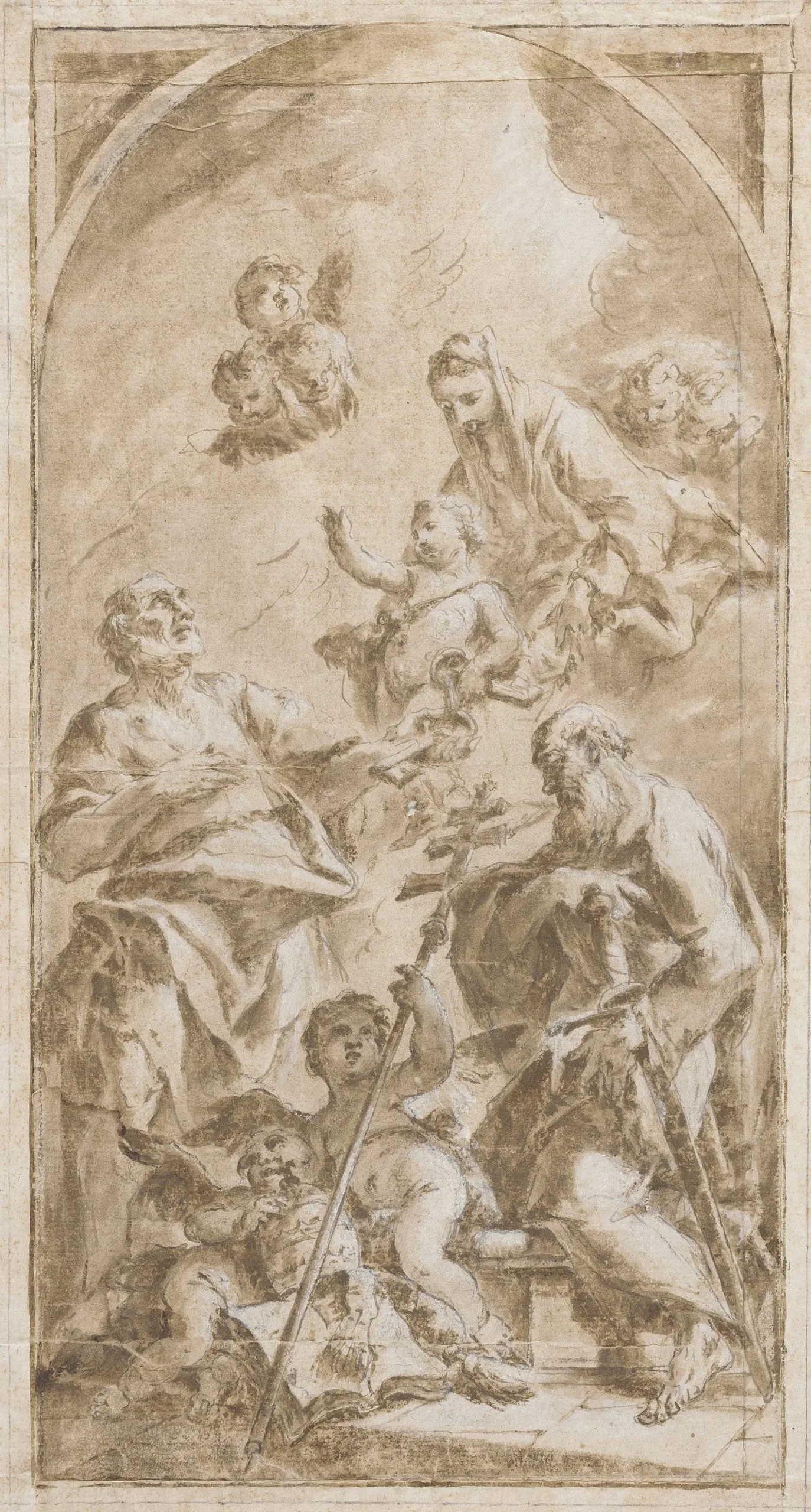 - Pen and brown ink heightened with white , with traces of black chalk