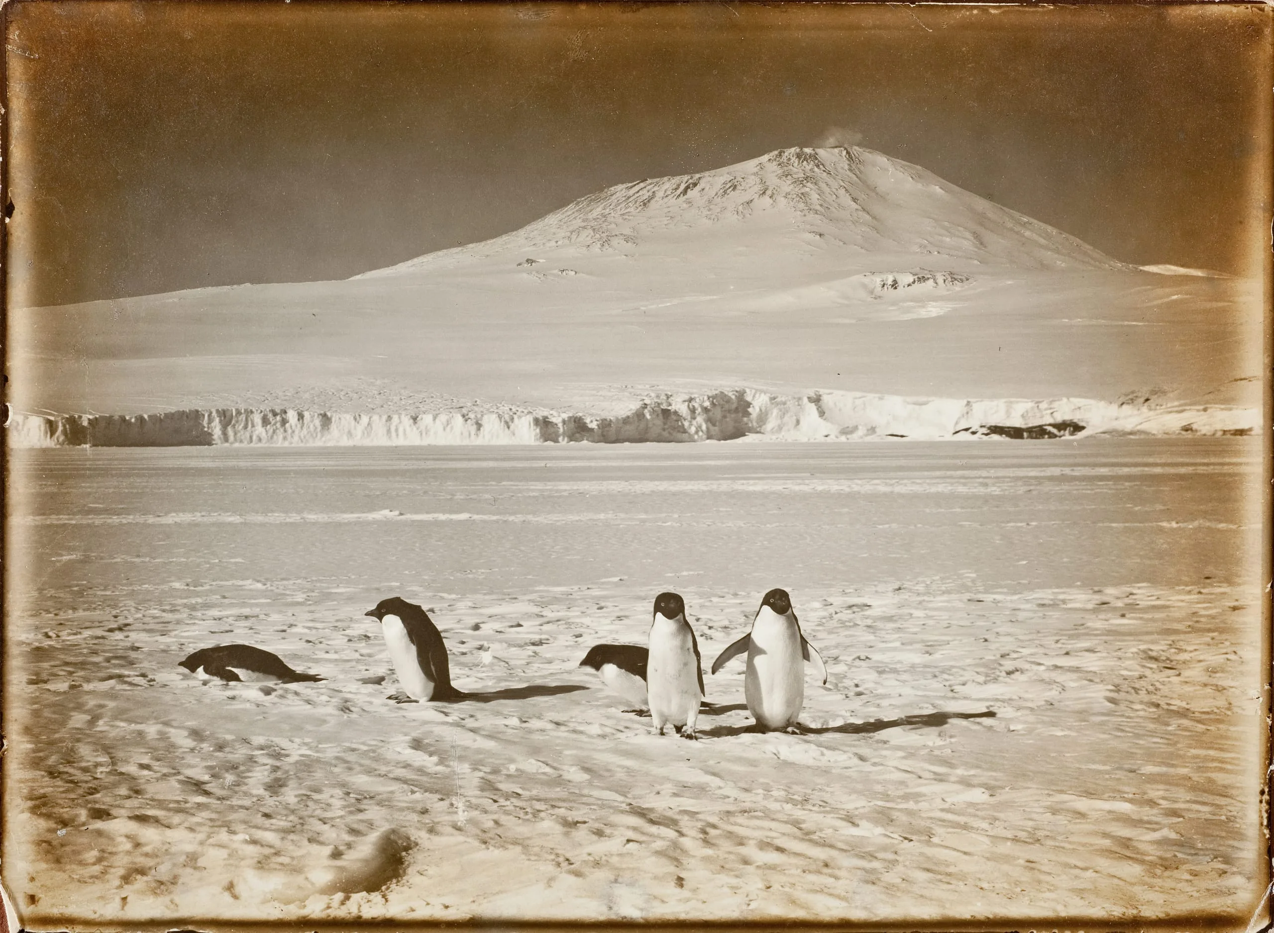 - Mount Erebus, 13,300 Ft. High, & The Barne Glacier With Adelie Penguins