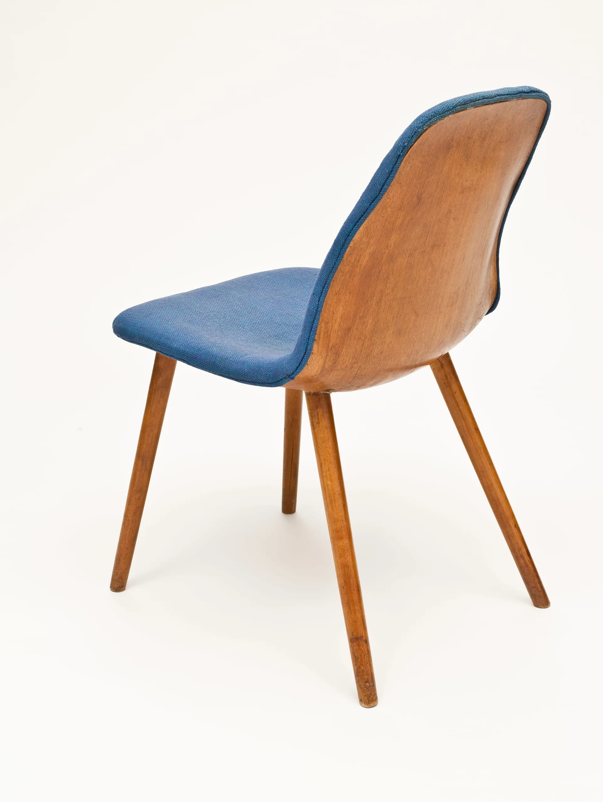 This chair was an effort by architects Charles Eames and Eero Saarinen to create affordable modern furniture. It was designed for and exhibited at the Museum of Modern Art’s 1941 Organic Design in Home Furnishings competition, which, as a press release declared, was intended “to discover good designers and engage them in the task of creating a better environment for today’s living.” The chair is a prototype that was never put into production. The technical innovation of molding plywood into a three-dimensional shape was fully realized and made affordable only after World War II.