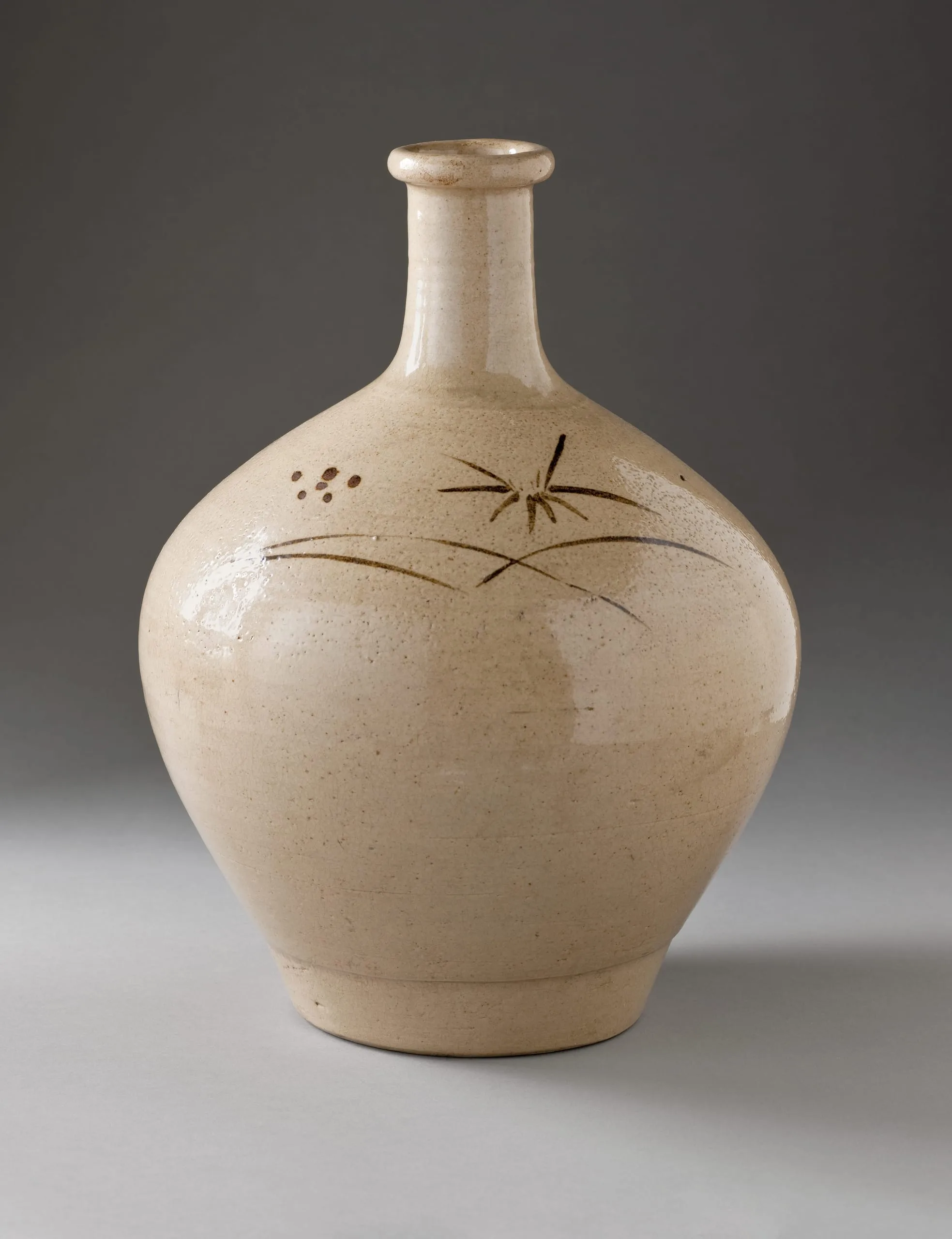 - Kaminome ware; stoneware with white glaze and iron glaze design